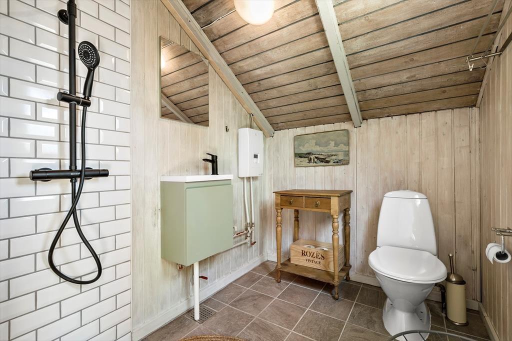 Das Badezimmer wurde kürzlich renoviert, mit viel Respekt für den Stil des Hauses. Hier trifft moderner Komfort auf nostalgische Atmosphäre, und die neue Dusche fühlt sich wie ein kleiner Luxus mitten in den einfachen und authentischen Rahmenbedingungen des Ferienhauses an.