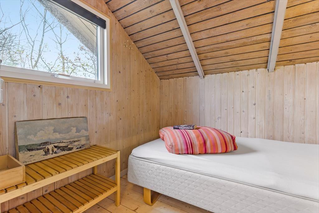 Das Ferienhaus verfügt über zwei gemütliche und eher kleine Schlafzimmer, die perfekt zum Alter und zum intimen Charakter des Hauses passen. Eines ist mit einem kleinen Doppelbett ausgestattet und lädt zu ruhigen Ferienmorgen ein, das andere mit zwei Einzelbetten – ganz so, wie man es aus klassischen Ferienhäusern kennt, in denen der Platz gut genutzt wird und Nähe ganz selbstverständlich zur Ferienzeit gehört. Als zusätzliches Extra gibt es außerdem ein gemütliches Annex, ideal für die Sommernutzung und mit einem Doppelbett eingerichtet – perfekt, wenn sich jemand im Urlaub ein wenig mehr Privatsphäre wünscht.