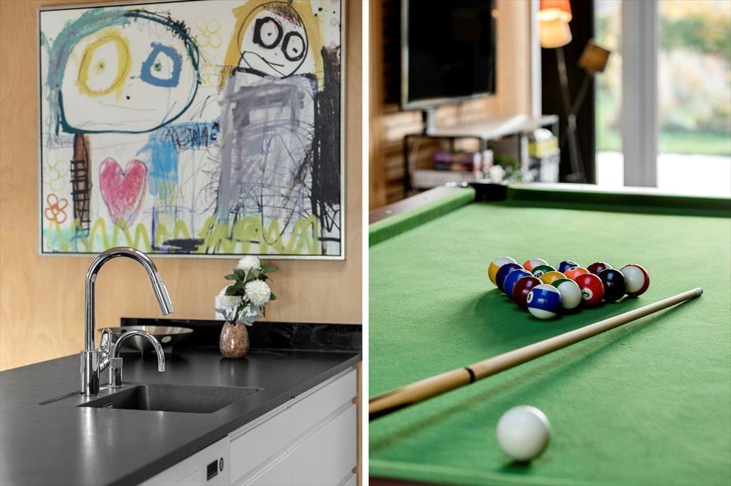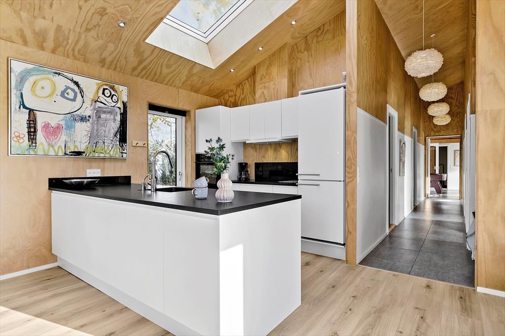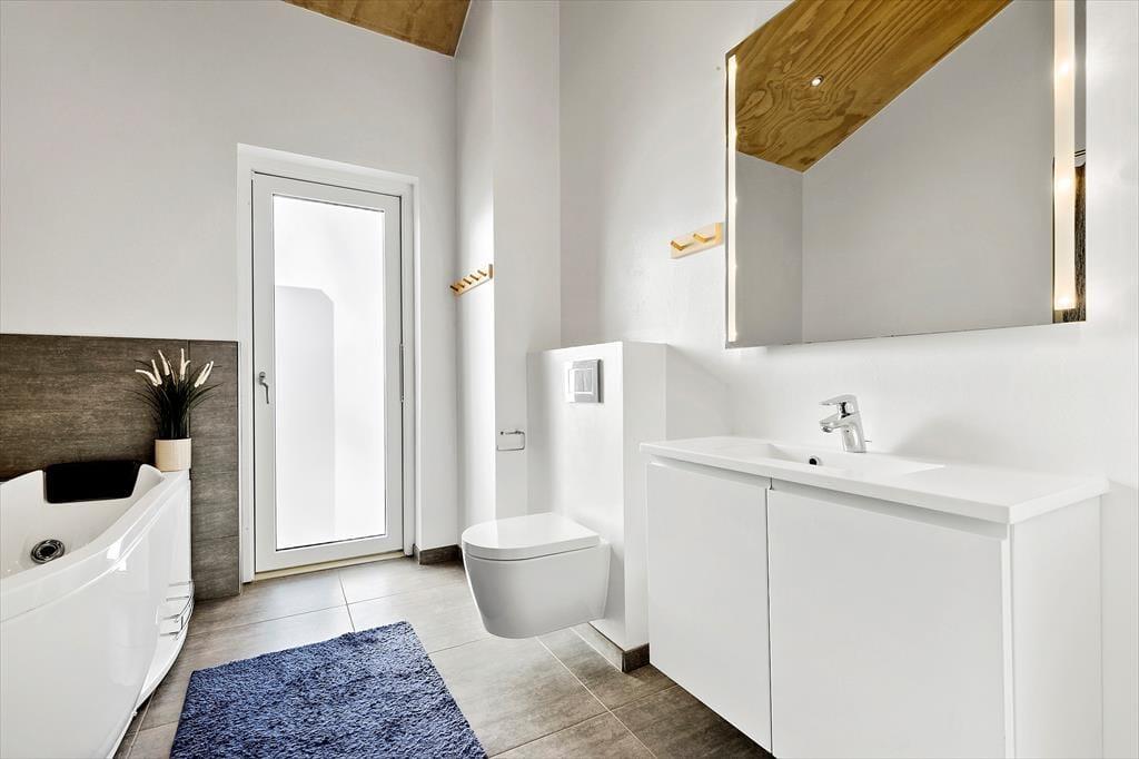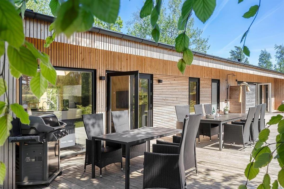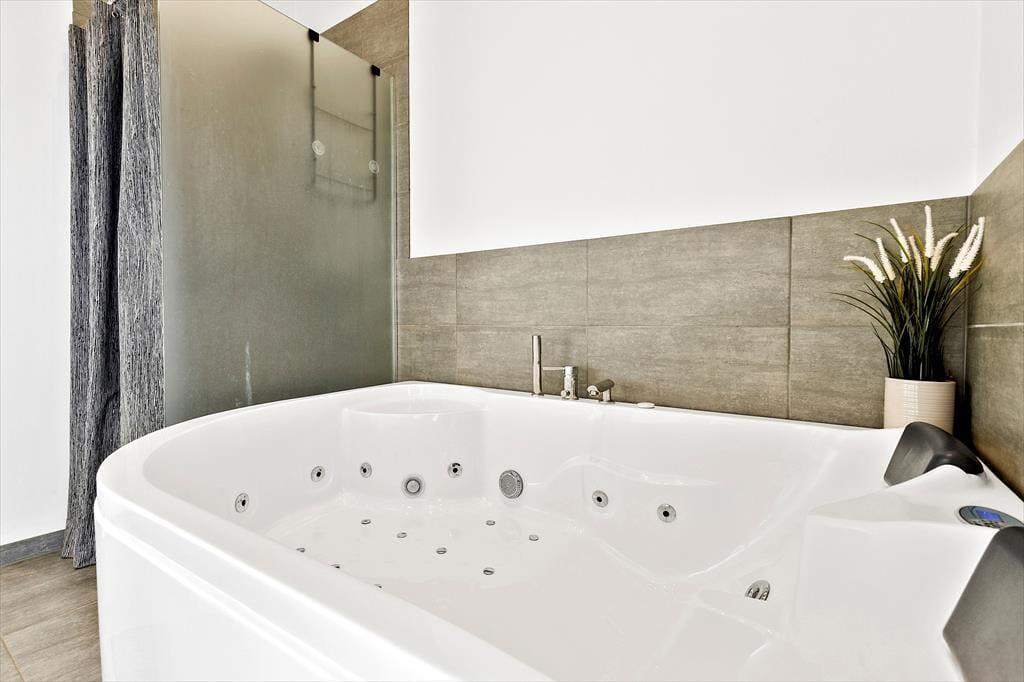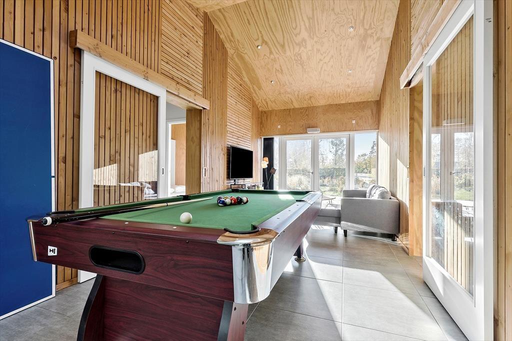Herzlich willkommen in diesem luxuriösen Ferienhaus, das alles bietet, was Sie für einen unvergesslichen Urlaub benötigen. Das moderne Urlaubsdomizil aus dem Jahr 2021 überzeugt mit einer gemütlichen Wohnatmosphäre und einer ansprechenden Einrichtung. Bis zu zehn Personen dürfen sich in diesem Haus auf eine fantastische Ausstattung freuen. Eines der beiden komfortablen Badezimmer verfügt über einen Whirlpool, der zu erholsamen Momenten einlädt. Die fünf Schlafzimmer sind mit je einem Doppelbett versehen. Zwei der Schlafräume und eines der Bäder befinden sich an einem Ende des Hauses und grenzen an den Aktivitätsraum, in dem Sie Billard, Tischtennis und Airhockey spielen können. Der schöne Küchen-, Wohn- und Essbereich ist am anderen Ende des Hauses platziert. Im Wohnraum sorgt ein Fernseher für Unterhaltung. Eine Fußbodenheizung erstreckt sich durch alle Räumlichkeiten. Im geräumigen Hauswirtschaftsbereich, in dem Sie beispielsweise einen Kinderwagen abstellen können, stehen eine Waschmaschine und ein Wäschetrockner bereit.