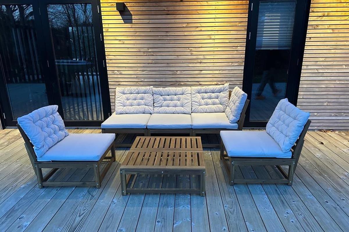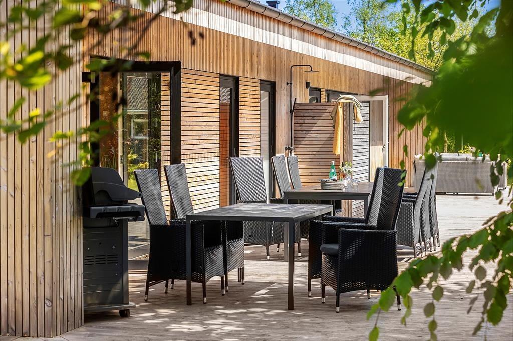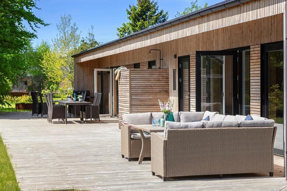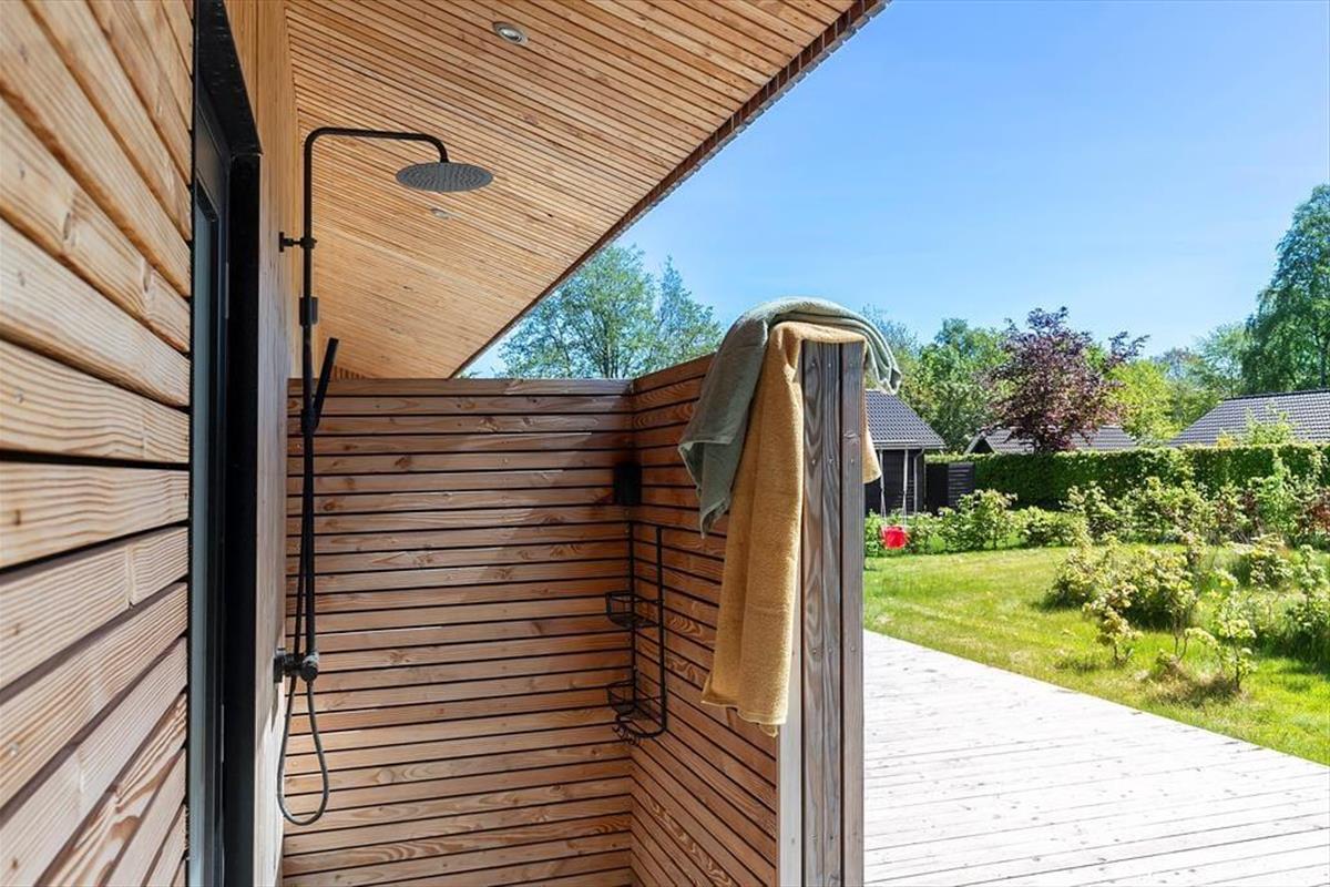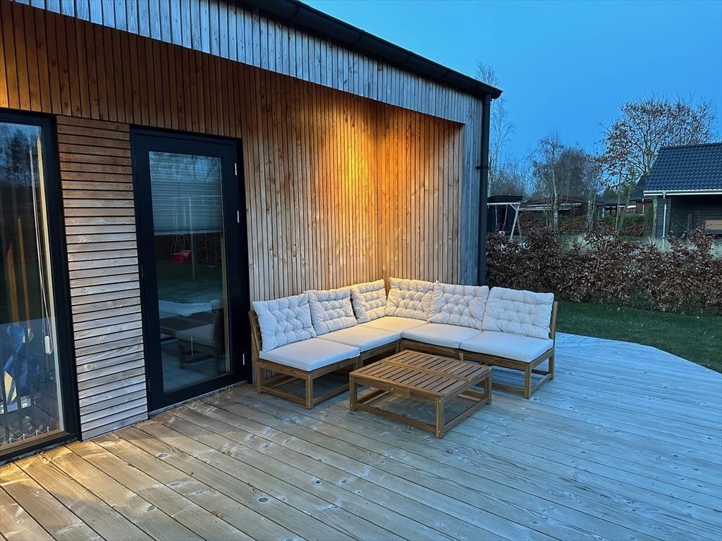 Im schönen Garten werden Ihre Kinder vergnügt in der Sandkiste spielen, schaukeln und auf dem Trampolin hüpfen. Eine Außendusche und eine Lademöglichkeit für E-Autos sind vorhanden. Lediglich 350 Meter trennen Sie von einem kinderfreundlichen Badestrand.