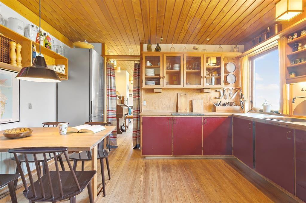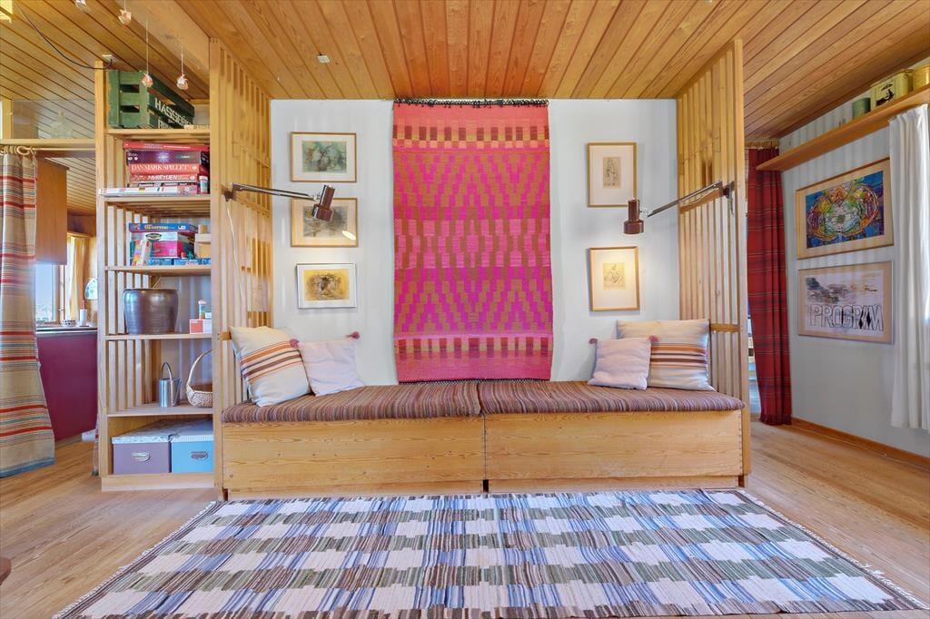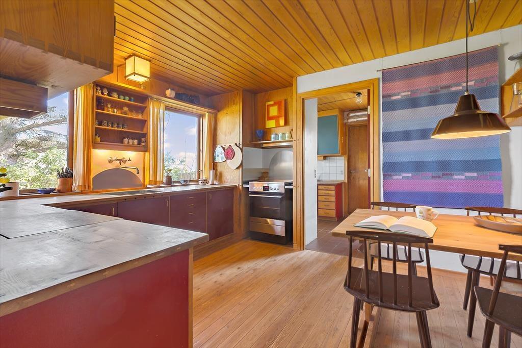 Dein Ferienhaus versetzt dich vom ersten Moment an zurück in die 1970er Jahre! Es liegt in der ersten Häuserreihe vor dem Fjellerup Strand. Mehrere Räume glänzen mit Meerblick. Der ursprüngliche Stil mit einem Hauch von Kunst und Nostalgie wurde im Laufe der Jahre liebevoll bewahrt. Außer den Betten stammt alles im Haus aus den 70ern. Dich erwartet ein großer, heller Wohnraum, beziehungsweise zwei Wohnräume, die durch eine Wand mit einem schönen Kaminofen voneinander getrennt sind. Der Kaminofen sorgt an kühlen Abenden für heimelige Wärme und echte Ferienhausstimmung. Du kannst dich in aller Ruhe in eines der vielen Bücher aus den Bücherregalen vertiefen, die vorhandenen Gesellschaftsspiele nutzen und es dir mit deinen Lieben so richtig gemütlich machen. Die geräumige rote Küche beinhaltet einen kleinen Esstisch, an dem deine Kinder malen, während du die Mahlzeiten aus frischen, bei kleinen Hofläden gekauften Zutaten zubereitest. Der Hauswirtschaftsbereich bietet Platz für einen Kinderwagen oder ähnlich sperrige Dinge. Mit drei Schlafräumen eignet sich das Ferienhaus gut für kleine und größere Familien. Neben dem funktionellen Badezimmer mit einer Duschnische steht ein Gäste-WC zu Verfügung. In diesem Ferienhaus am Fjellerup Strand verbringst du nicht nur deine Urlaubstage, sondern begibst dich auf eine Zeitreise voller Ruhe, Kunst und Nostalgie. Charme und eine geschichtsträchtige Atmosphäre sind dir bei diesem Mietobjekt garantiert.