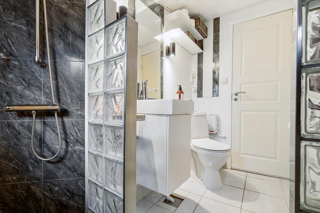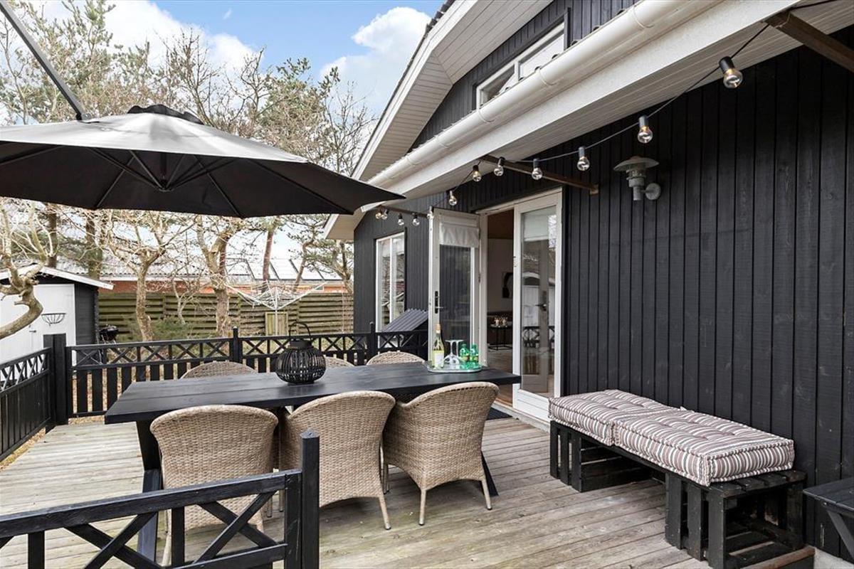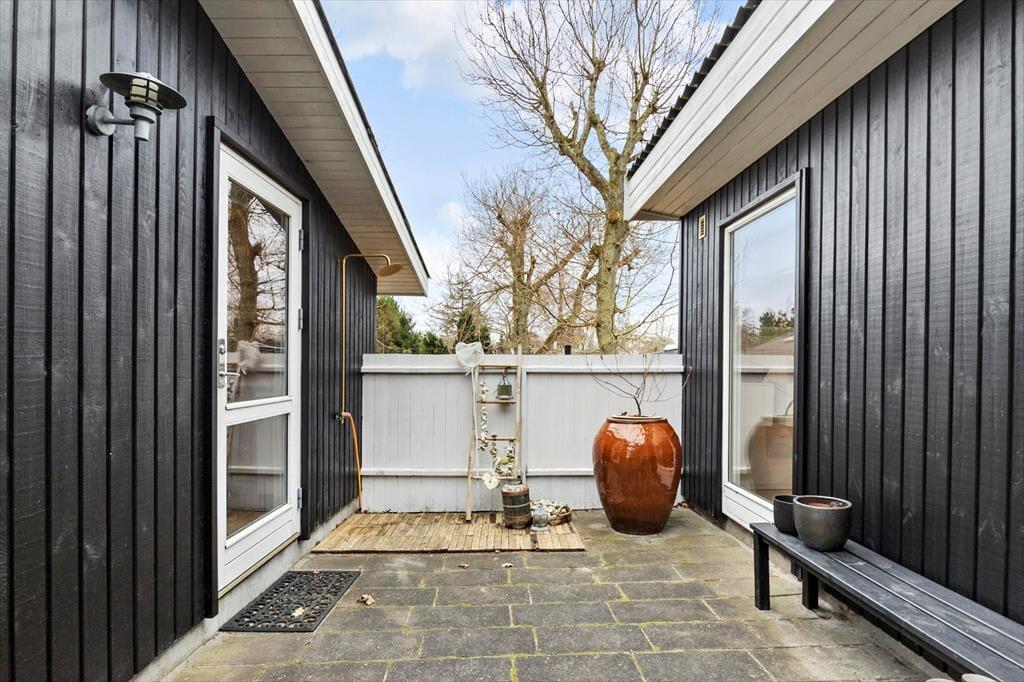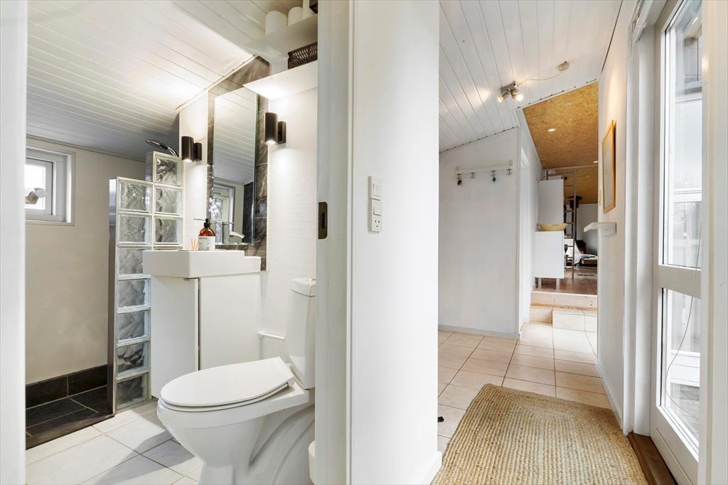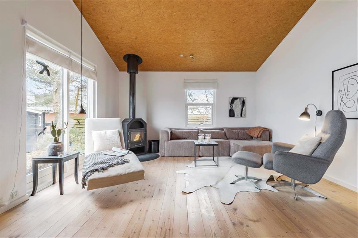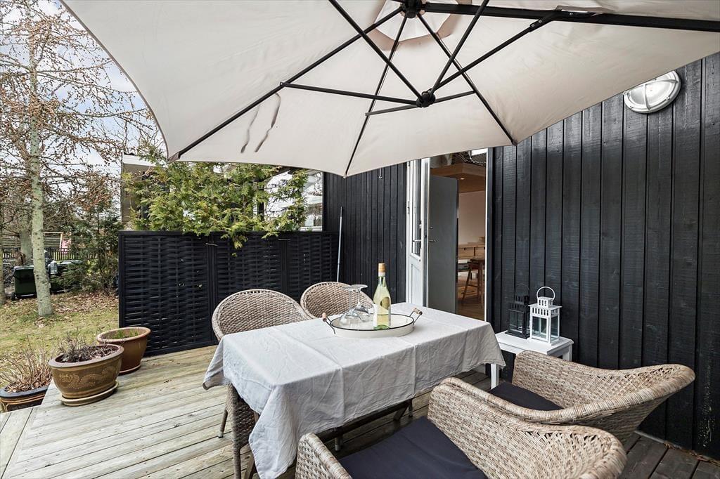 Dieses helle Ferienhaus überzeugt mit großen, hellen Räumen. Schnell wirst du feststellen, dass die Küche das Herzstück des Hauses ist. Sie ist offen mit dem Wohnraum verbunden und ermöglicht es dir, zusammen mit deinen Lieben die Mahlzeiten zuzubereiten. Falls du lieber alleine am Herd stehst, genießt du dennoch die Nähe deiner Familie, die sich beispielsweise in gemütlicher Runde mit einem Brettspiel am Esstisch vergnügt. Von beiden Seiten gelangt viel Tageslicht in die Küche. Dank der Fenster, durch die du auf die Terrasse und in die freie Natur blickst, wird es dir in der Küche nie langweilig. Der Gasherd lässt das Herz eines jeden Hobbykochs höher schlagen. Der Backofen ist allerdings elektrisch. Die beiden großen Schlafräume bieten viel Platz für deine Familie und euer Reisegepäck. Im Nebengebäude steht ein weiteres Doppelbett zur Verfügung. Das Nebengebäude verwöhnt mit einer Fußbodenheizung und beinhaltet darüber hinaus eine Waschmaschine und einen kleinen Gefrierschrank.