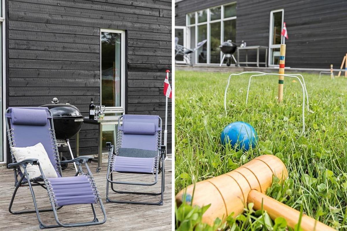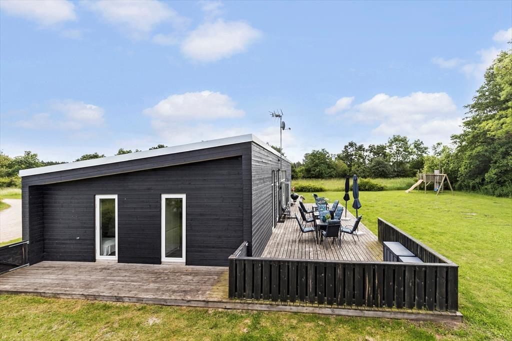 Das Ferienhaus liegt abgeschieden am Ende einer ruhigen Schotterstraße in einem neueren Ferienhausgebiet. Es gibt genügend Parkplätze und einen einfachen Zugang zu einer Ladestation für ein Elektroauto. Hinter dem Haus breitet sich eine große ebene Rasenfläche aus. Es gibt viel Platz für Spiele - probiere das hauseigene Wikingerschach und Krocket aus. Die Kinder können sich im Spielturm austoben, wo es auch eine Schaukel und eine Rutsche gibt, während ihr Erwachsene auf der Terrasse plaudert. Wenn das gegrillte Abendessen beendet ist, nehmt eure Gläser mit zum Feuer und versammelt euch zu langen Geschichten und gerösteten Marshmallows. Die Terrasse ist eine schöne Oase mit Platz für alle. Ob ihr nun Entspannung oder Aktivität sucht; dieses Ferienhaus hat alles, was ihr benötigt, um unvergessliche Erinnerungen zu schaffen.