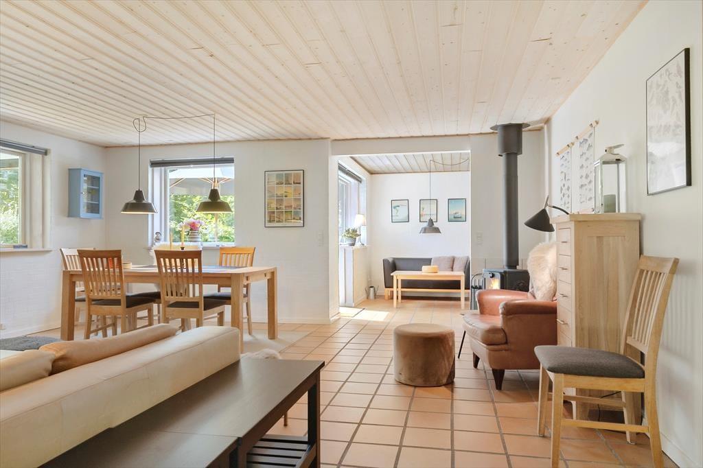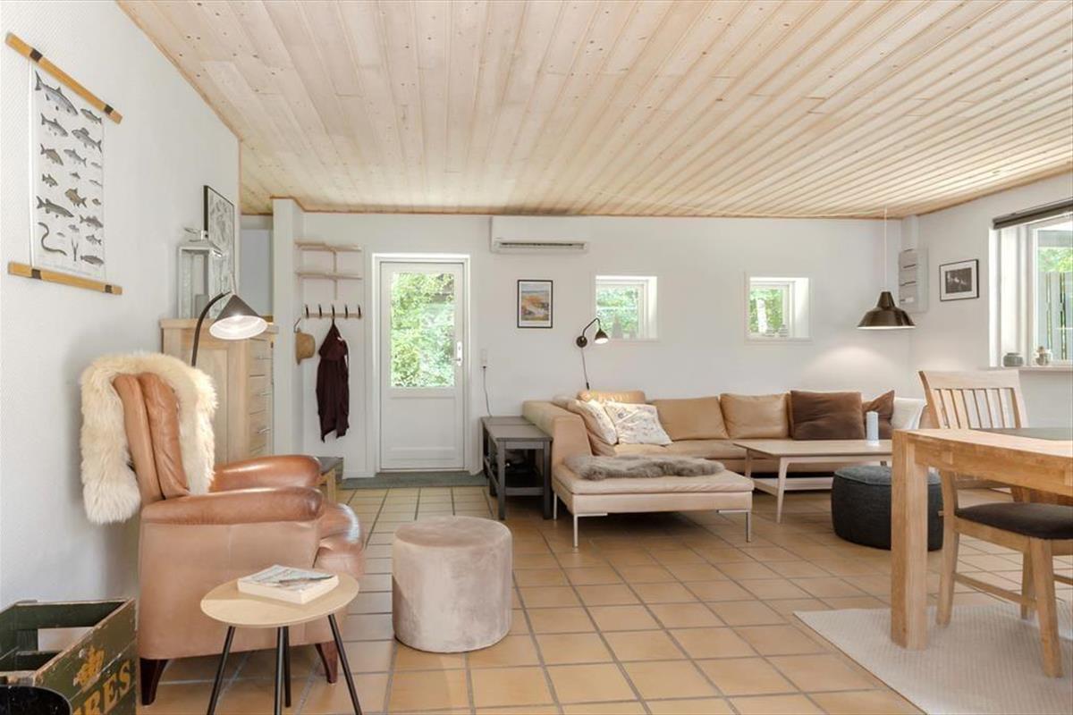 Ein gepflegtes und charmantes Ferienhaus, das Geschmack in der Wahl der Möbel und der Einrichtung verströmt, gehalten in angenehmen und ruhigen Farben. Gleichzeitig durchdacht und praktisch mit einem schönen Fliesenboden im ganzen Haus. Ein eleganter Eindruck, mit dem du während deines Urlaubs leicht zurechtkommst. Das Wohn- und das Esszimmer sind zu einem geräumigen und gemütlichen Raum zusammengefasst, in dem ein Kaminofen für Wärme und Komfort sorgt. Die separate Küche hat ein Fenster, sodass du den Blick auf den Garten und die Feuerstelle genießen kannst, während du frische Produkte wie Kartoffeln, Erdbeeren und frischen Fisch zubereitest. Drei gemütliche Schlafzimmer sorgen für einen erholsamen Schlaf und ein geräumiges Badezimmer mit Whirlpool lädt zum Entspannen und Verwöhnen ein. Dieses Ferienhaus aus Holz ist ideal für alle, die einen ruhigen und komfortablen Urlaub in landschaftlich reizvoller Umgebung mit Familie, Freunden und Hunden verbringen möchten.