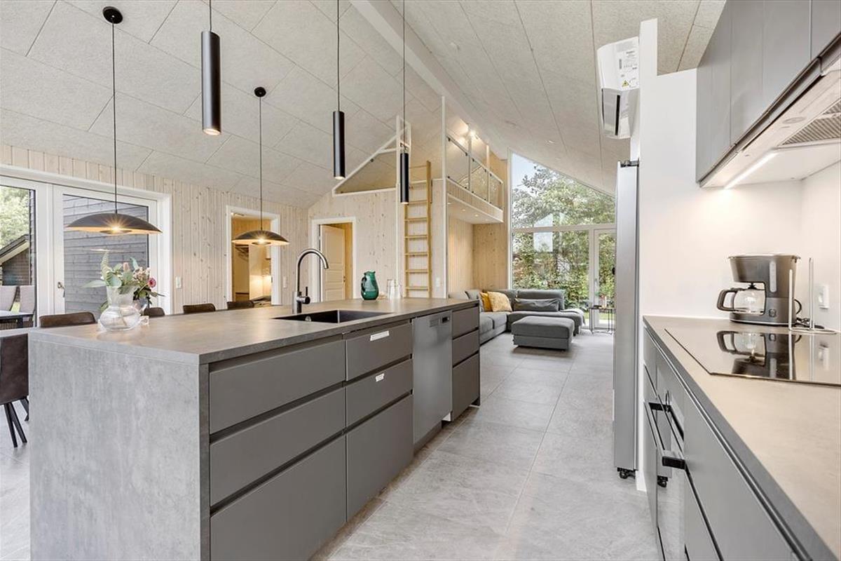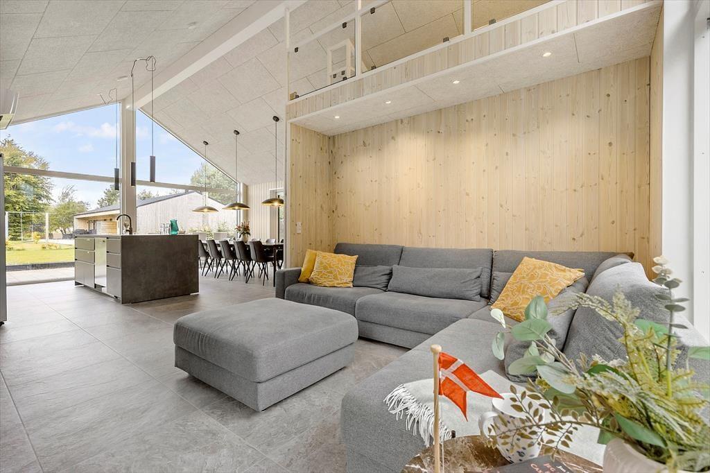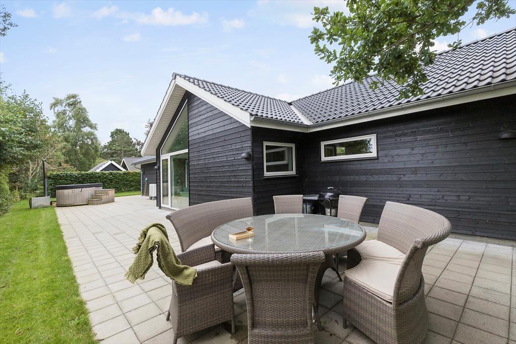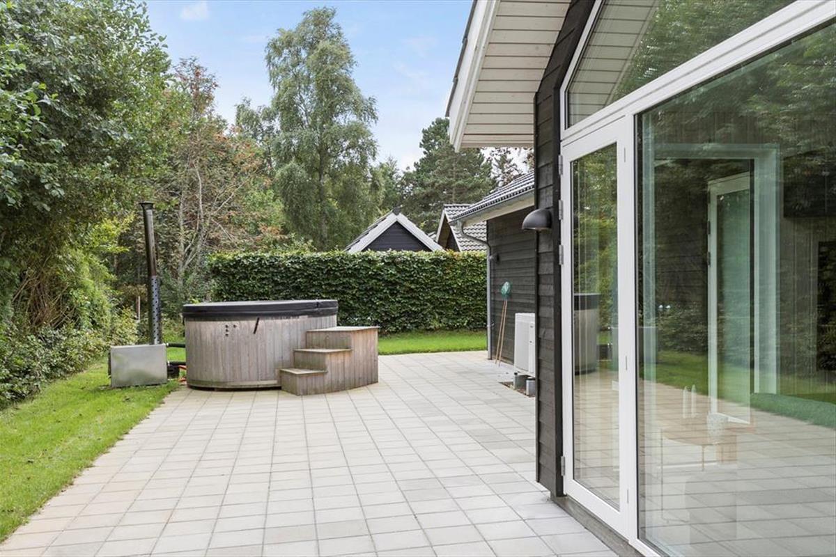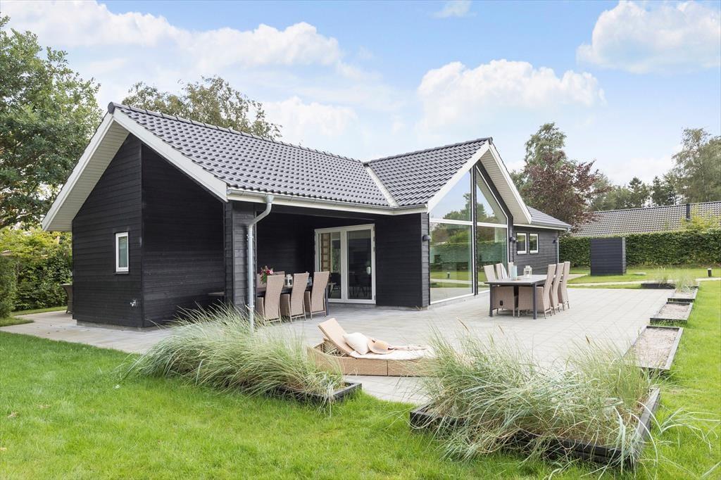 Modern vakantiehuis in Fjellerup Strand met hot tub, vlak bij strand en supermarkt, ideaal voor gezinnen.