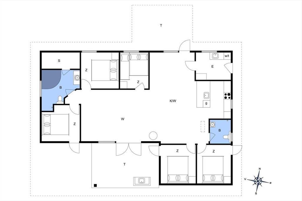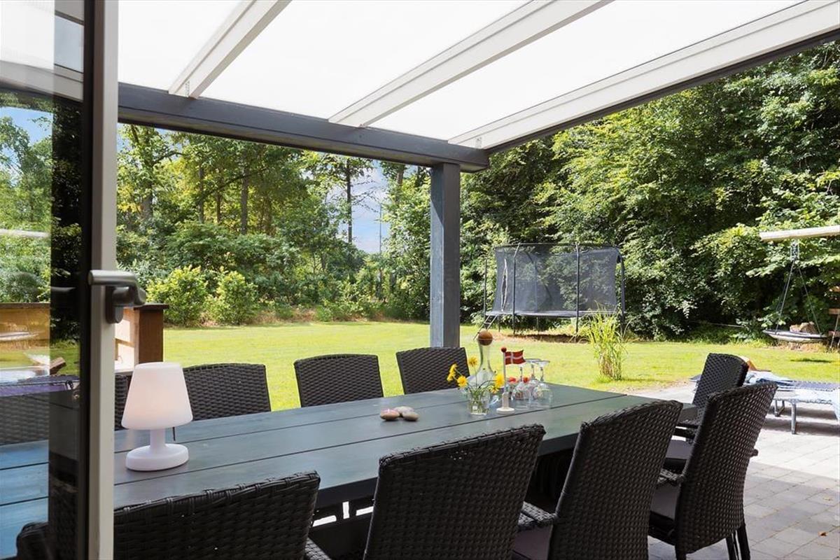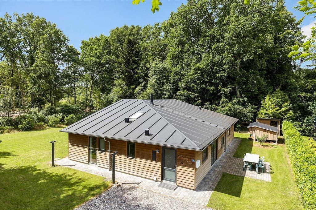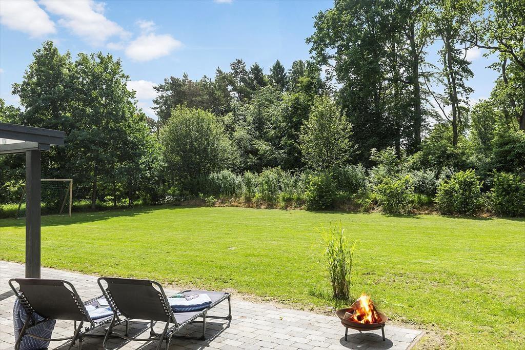 Ein modernes Ferienhaus aus dem Jahr 2022 - die Inneneinrichtung und die Raumaufteilung sind gut durchdacht und strahlen skandinavische Gemütlichkeit und Funktionalität aus. Die schönen Epoxidböden und die hohen Decken schaffen eine helle und geräumige Atmosphäre. Du wirst von einem praktischen Hauswirtschaftsraum empfangen, in dem ihr euren Kinderwagen für die Nacht unterstellen könnt. Das Herzstück des Hauses ist der große Gemeinschaftsraum, in dem sich Wohnzimmer, Küche, Familienzimmer und Kinderspielbereich vereinen. Hier können alle zusammen und für sich alleine sein. Der Kaminofen in der Ecke verbreitet Wärme und Gemütlichkeit, und durch die Terrassentür im Wohnzimmer gelangt ihr auf die Terrasse und in den Garten. Vier der fünf gemütlichen Schlafzimmer sind mit Doppelbetten und das vierte mit einem Etagenbett ausgestattet. Es gibt außerdem zwei schöne Bäder - eines davon mit Whirlpool und Sauna. Genießt ein entspannendes Bad im Whirlpool und lasst die Seele baumeln, oder wärmt euch an einem kalten Herbsttag in der Sauna auf.