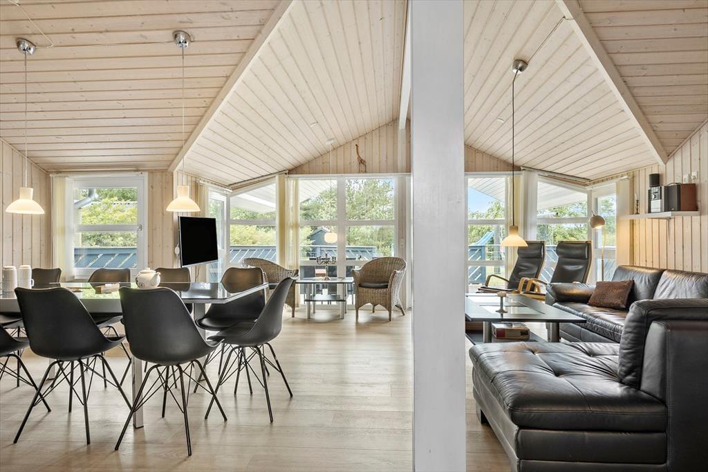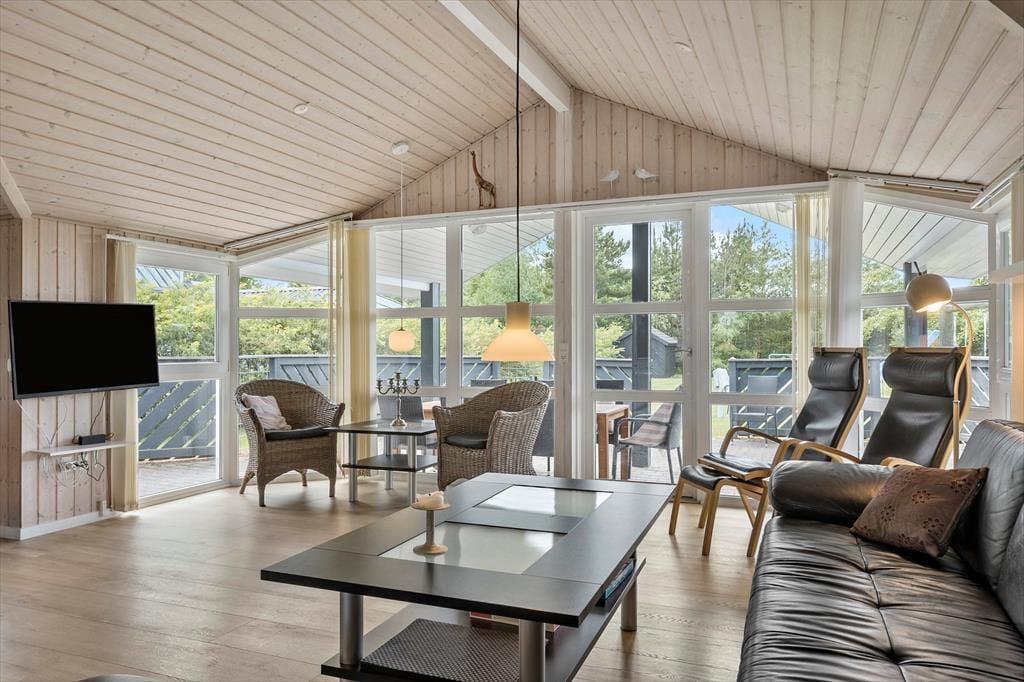 Stell dir vor, du wachst in einem gepflegten Ferienhaus aus dem Jahr 2011 auf, mit hohen Decken und großen Fenstern, die die Morgensonne hereinlassen. Das Haus ist eine Oase des Komforts und der Gemütlichkeit, wie geschaffen für unvergessliche Momente. Tritt durch die Terrassentür hinaus auf die herrliche Südwest-Terrasse, wo du deinen Morgenkaffee mit Blick auf den schönen Garten genießen kannst. Hier können Kinder und Erwachsene gleichermaßen spielen und sich in ruhiger Umgebung entspannen. Im Wohnbereich gibt es eine offene Küche, die mit dem Familienzimmer und dem Wohnzimmer verschmilzt - ein Zentrum, in dem die Familie zusammenkommen kann, um zu kochen, Brettspiele zu spielen oder um einfach vor dem Fernseher zu entspannen. Nach einem Tag voller Abenteuer kann sich deine Familie in die vier Schlafzimmer zurückziehen, von denen drei mit Doppelbetten und eines mit vier Etagenbetten eingerichtet sind.