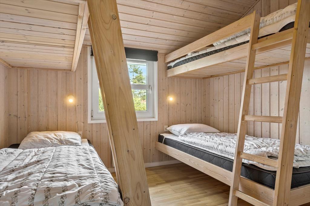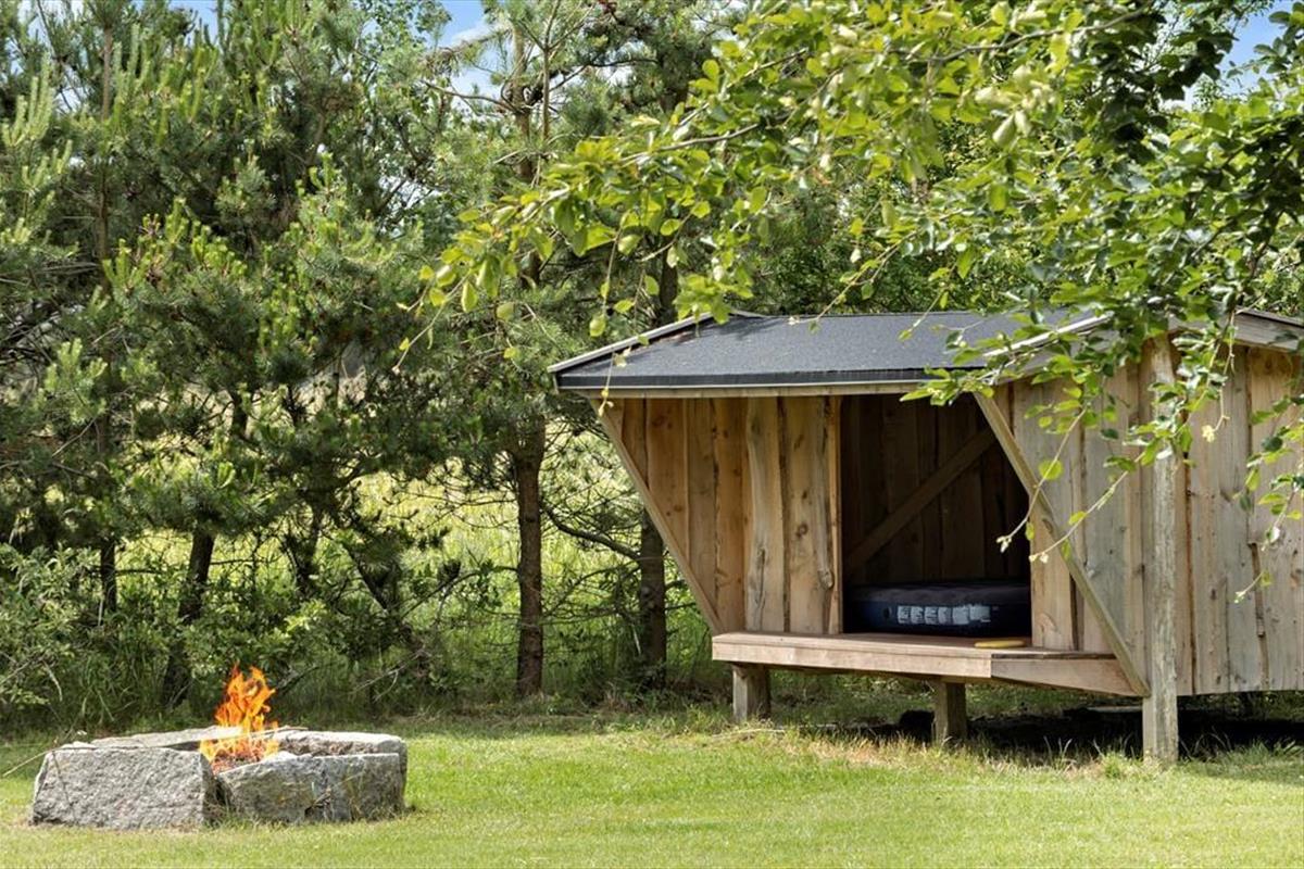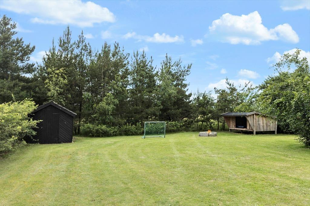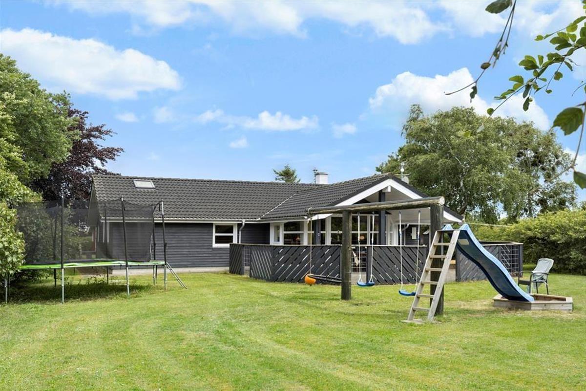 Die nach Südwesten ausgerichtete Terrasse bietet den perfekten Blick auf die Wiese, wo Trampolin und Schaukel zum Spielen einladen und der Unterstand zu abenteuerlichen Nächten im Freien einlädt. Wenn es Abend wird, könnt ihr Feuer an der Feuerstelle anzünden, Marshmallows rösten und euch unter dem Sternenhimmel Geschichten erzählen. Zum kinderfreundlichen Fjellerup Strand sind es nur 300 Meter. Hier könnt ihr die Sonne genießen, Sandburgen bauen und euch in den Wellen vergnügen, während die Kinder lachen und das Gefühl von Freiheit genießen. Gönnt euch auf dem Heimweg vielleicht noch ein leckeres Eis in der Waffel. Hier werdet ihr das Leben im Freien in vollen Zügen genießen.