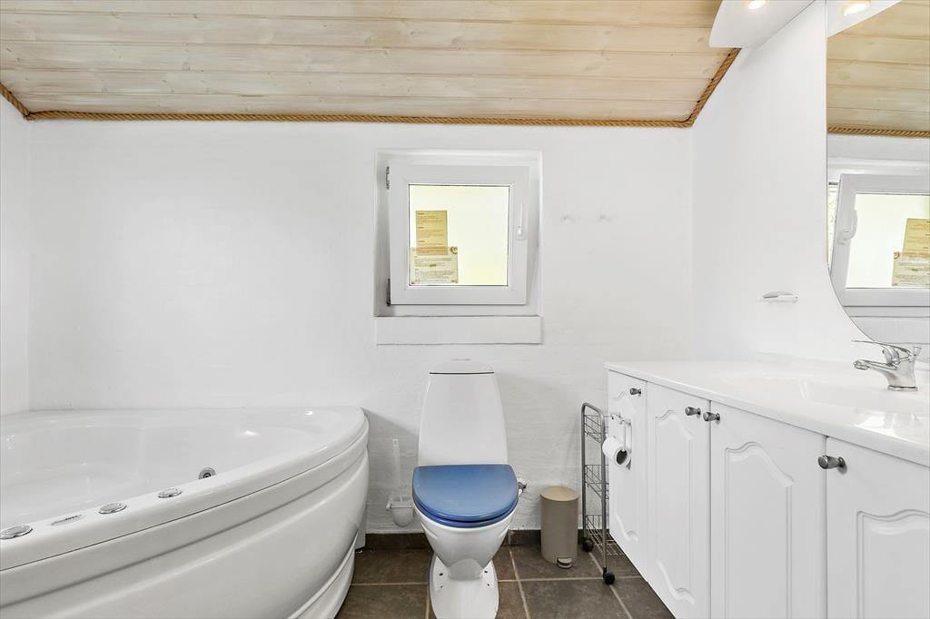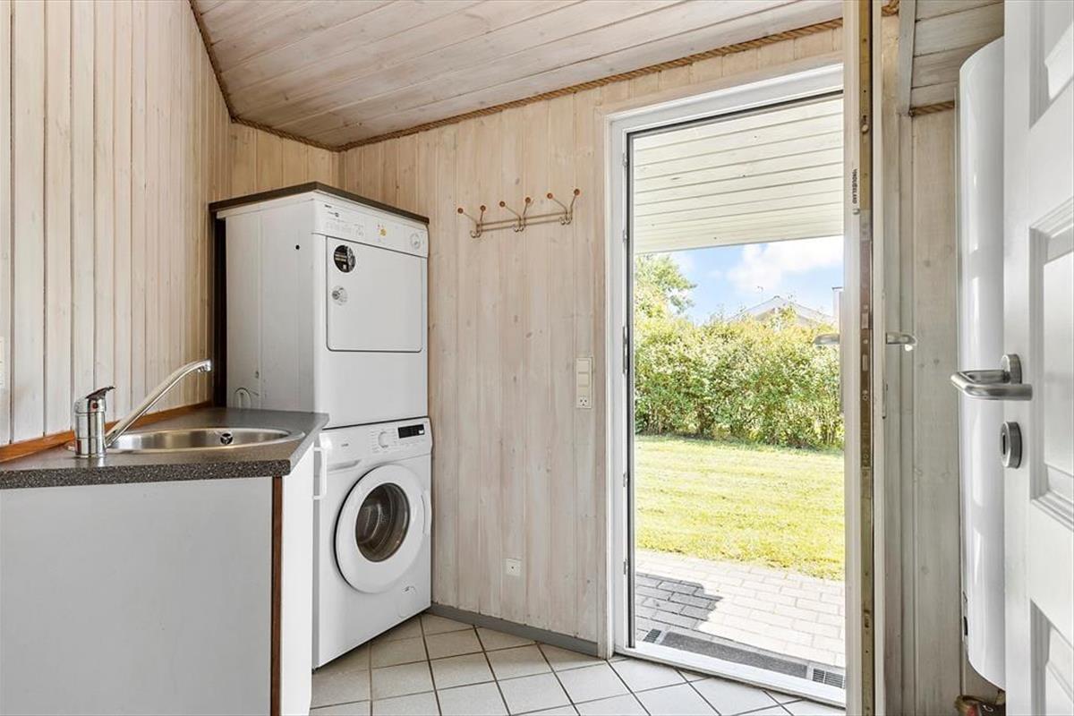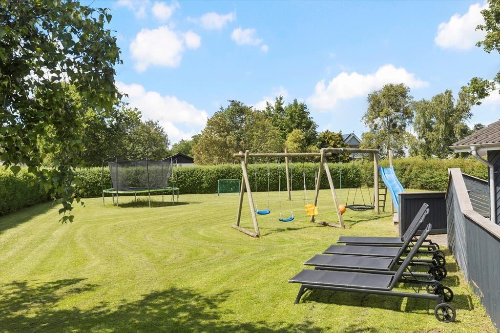 Die nach Südwesten ausgerichtete Terrasse ist von der Straße uneinsehbar, geschützt und teilweise überdacht. Der perfekte Ort, um tagsüber die Sonne und die freie Natur zu genießen und abends köstliche Speisen vom duftenden Grill zu essen. Kinder werden den Garten lieben, wo die große Rasenfläche mit Trampolin und Schaukeln zum Spielen und der Unterstand zu abenteuerlichen Nächten im Freien einlädt. Wenn es dunkel wird, kann man die Feuerstelle anzünden, Marshmallows rösten und über die schönen Erlebnisse des Tages sprechen. Nur 300 Meter entfernt liegt der kinderfreundliche Fjellerup Strand, wo man die Sonne genießen, Sandburgen bauen und in den Wellen spielen kann. Hole dir auf jeden Fall auf dem Heimweg ein leckeres Eis.