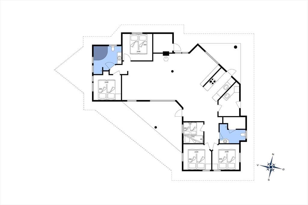 Stelle dir vor, du wachst in diesem herrlichen Ferienhaus aus dem Jahr 2003 auf, mit hohen Decken und großen Fenstern, die das Morgenlicht hereinlassen. Viele schöne Winkel und Gemütlichkeit schaffen den Rahmen für unvergessliche Urlaubsmomente. Durch die Terrassentür gelangst du auf eine herrliche Südwest-Terrasse, auf der du deinen Morgenkaffee genießen kannst, während die Kinder fröhlich auf dem Rasen spielen. Im Inneren lädt der Wohnbereich zum geselligen Beisammensein ein. Die offene Küche geht in das Familienzimmer und das Wohnzimmer über – ein natürlicher Familienmittelpunkt. Hier könnt ihr gemeinsam kochen, Brettspiele spielen oder euch einfach bei anderen Aufgaben oder beim Fernsehen entspannen. Wenn der Tag vorbei ist und die Terrassentür geschlossen wird, ist es Zeit, die Nacht in einem der fünf Schlafzimmer zu genießen – alle mit Doppelbetten und eines mit einem Etagenbett über einem Doppelbett. Ein Badezimmer bietet einen Whirlpool, das andere eine heiße Sauna zur Entspannung. Der Hauswirtschaftsraum ist praktisch und bietet genügend Platz für Jacken und Kinderwagen und sowohl Waschmaschine als auch Trockner sind vorhanden.