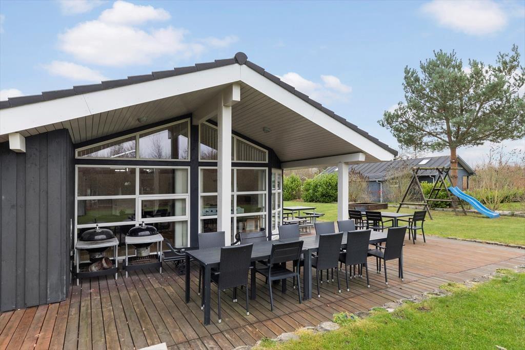 Dein Ferienhaus ist von einem ansprechenden Garten umgeben, der durch eine große Rasenfläche und eine Randbepflanzung geprägt wird. Die teilweise überdachte Terrasse ist ein wunderbarer Aufenthaltsort, an dem du dich nach Herzenslust von der Sonne verwöhnen lassen kannst, während die Kinder vergnügt auf dem Rasen spielen oder schaukeln. Lange Sommerabende lasst ihr sicherlich gerne mit einem köstlichen Essen vom Grill ausklingen. Dank einer Entfernung von nur 750 Metern bis zum Meer spricht nichts dagegen, dass ihr jeden neuen Urlaubstag mit einem erfrischenden Bad in den wogenden Wellen begrüßt. Im Anschluss macht ihr es euch bei einem ausgedehnten Frühstück auf der Terrasse gemütlich oder bummelt zusammen zum Eisladen, der für seine großen Eiswaffeln berühmt ist.