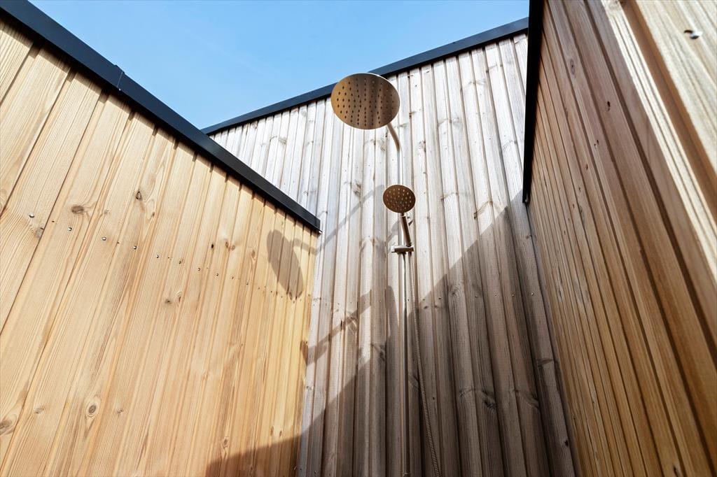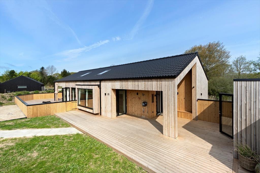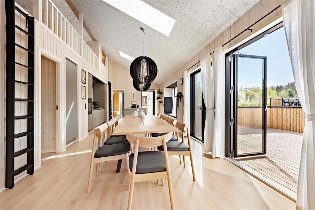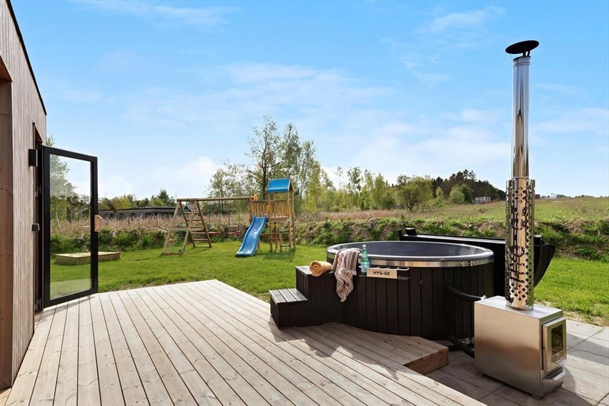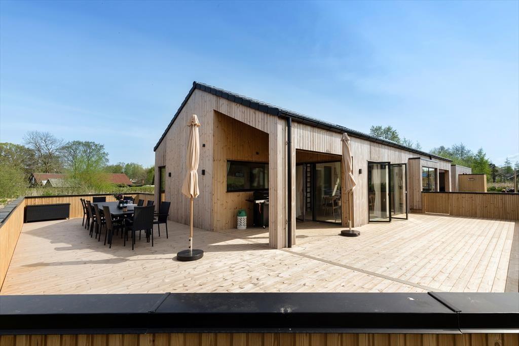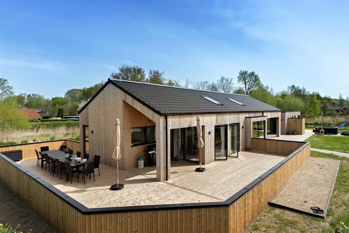 Die Außenbereiche deines Ferienhauses sind einfach fantastisch. Die große, geschlossene Holzterrasse erweist sich als sichere und sonnenverwöhnte Oase, in der kleine Kinder und Hunde frei und unbekümmert spielen können. Es bietet sich ausreichend Platz für stimmungsvolle Grillabende, ausgedehnte Sonnenbäder auf dem Liegestuhl und gemütliche Frühstücke in der Morgensonne. Die Terrasse setzt sich in eleganter Weise zwischen dem Haupthaus und dem Nebengebäude fort und umrahmt auch die Sauna und die Schwedische Badetonne - perfekt, um in die Badesachen zu schlüpfen und Wellness unter freiem Himmel zu genießen.
