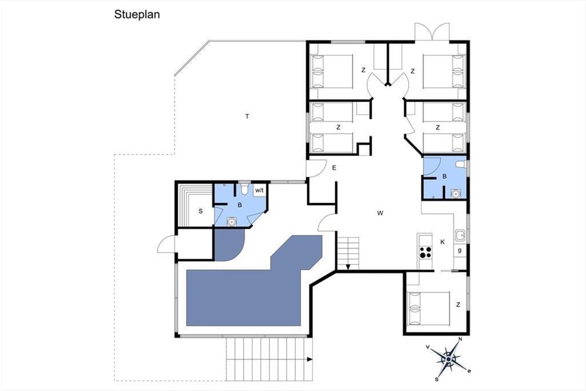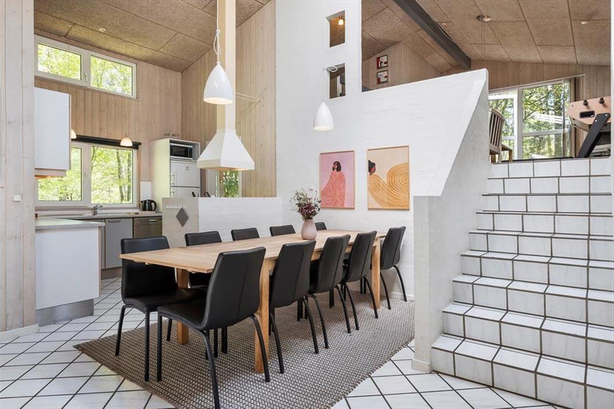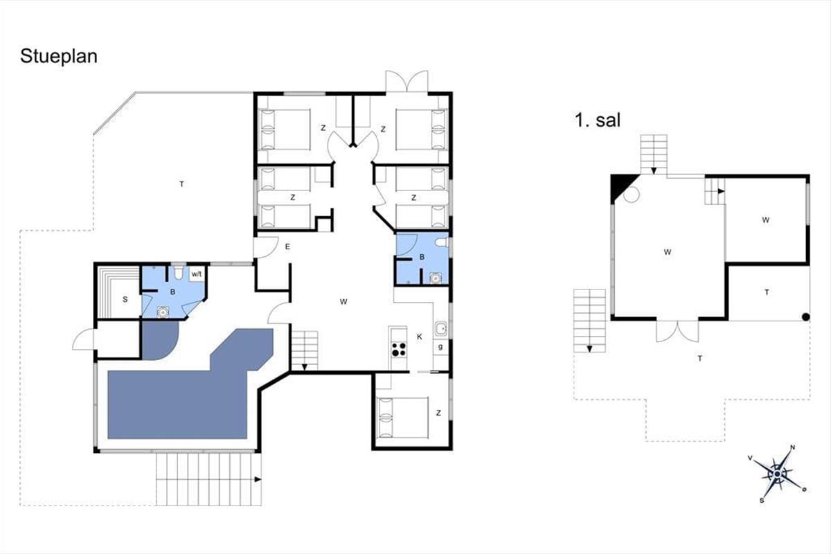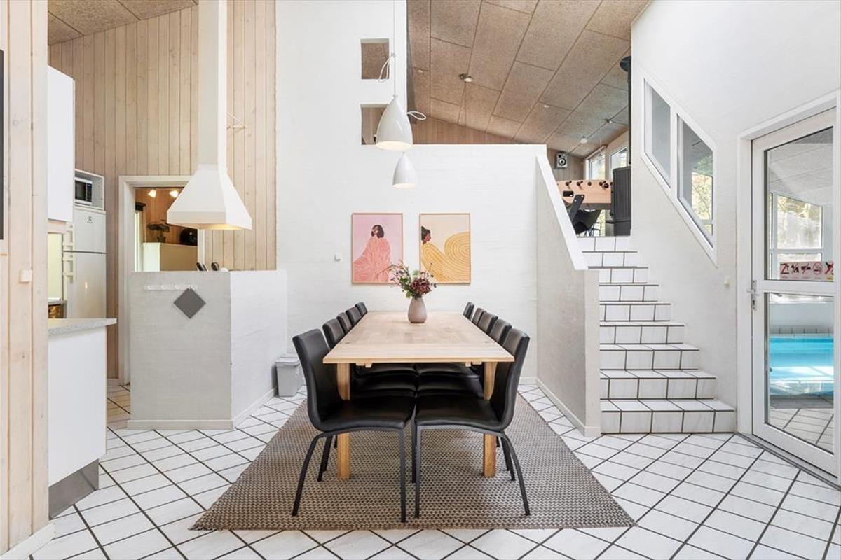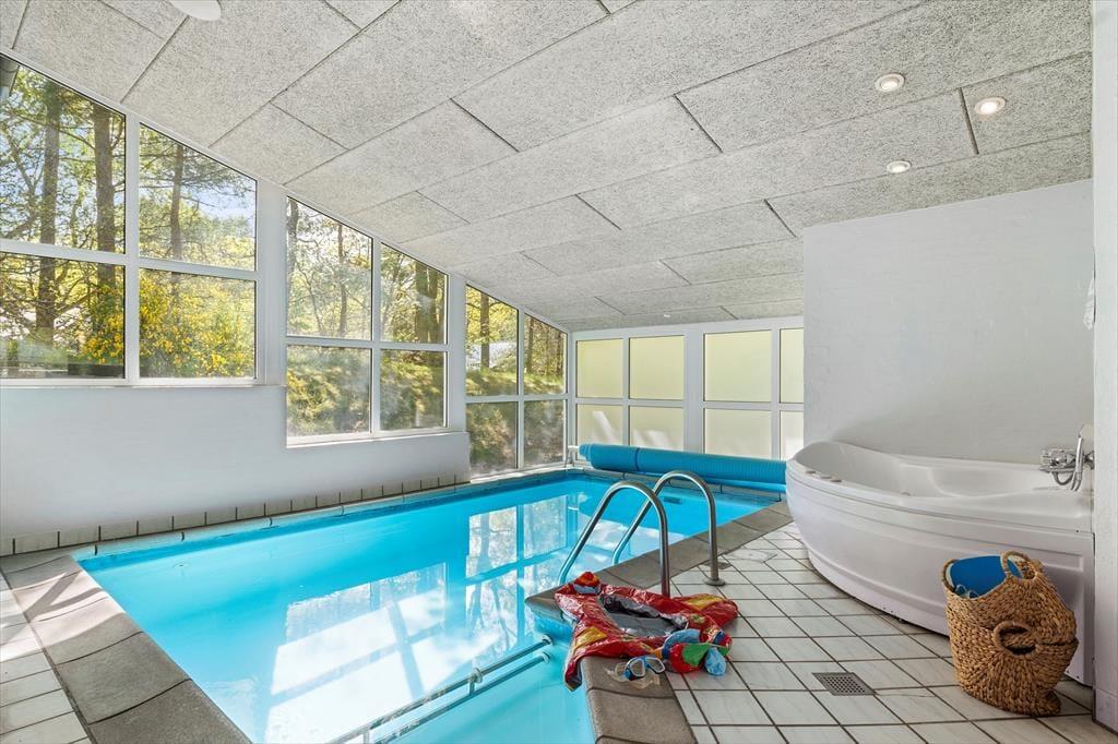 Dein Ferienhaus ist der Inbegriff von Entspannung, Wohlempfinden und gemeinsamen Urlaubsfreuden! Begeistern wird dich und deine Familie euer ganz eigener Wellnessraum, in dem ein Swimmingpool, ein Whirlpool und eine Sauna bereitstehen - eine kleine Wellnessoase, in der du förmlich spürst, wie die Last des Alltags von deinen Schultern abfällt. Zwischen den Bädern und Saunagängen kannst du es dir wunderbar auf den Relaxstühlen gemütlich machen und deinen Kindern beim Baden zuschauen. Der Wellnessraum verfügt über einen direkten Zugang zum Badezimmer, in dem praktischerweise eine Waschmaschine und ein Wäschetrockner platziert sind. Herzstück deines Urlaubsdomizils ist der große, helle Küchen- und Essbereich, in dem die Zubereitung der täglichen Mahlzeiten zum vergnügten Familienprojekt wird. In der Küche lässt du beim Gemüseschneiden den Tag Revue passieren und genießt dabei dein Lieblingsgetränk, während deine Kinder den Tisch decken oder Pläne für den gemeinsamen Abend schmieden. Das Urlaubstempo bestimmst du in diesem Ferienhaus ganz alleine. Und keine Sorge: es sind zwei gute Badezimmer vorhanden, die unangenehme Warteschlangen am Morgen verhindern und so einen entspannten Start in den Tag gewährleisten. Die fünf Schlafräume erweisen sich als schöne Rückzugsorte für ruhige Stunden und versprechen darüber hinaus selbstverständlich erholsame Nächte. Im Obergeschoss erwartet dich ein gemütlicher Wohnraum, in dem du dich mit deinen Lieben entspannen kannst - sei es beim Lesen interessanter Bücher oder beim gemeinsamen Anschauen eines spannenden Films. Vom Wohnraum aus kannst du direkt hinaus auf eine ansprechende Grillterrasse treten, auf der du sicherlich gern die langen, lauen Sommerabende ausklingen lässt. Der Hängeboden bietet zusätzlichen Platz, Erholungs- und Spielmöglichkeiten. Wie wäre es beispielsweise mit einem familieninternen Turnier am Tischkicker?
