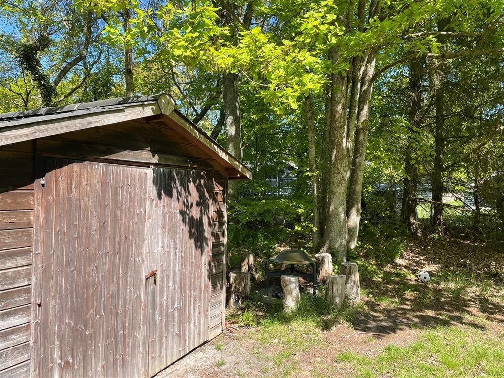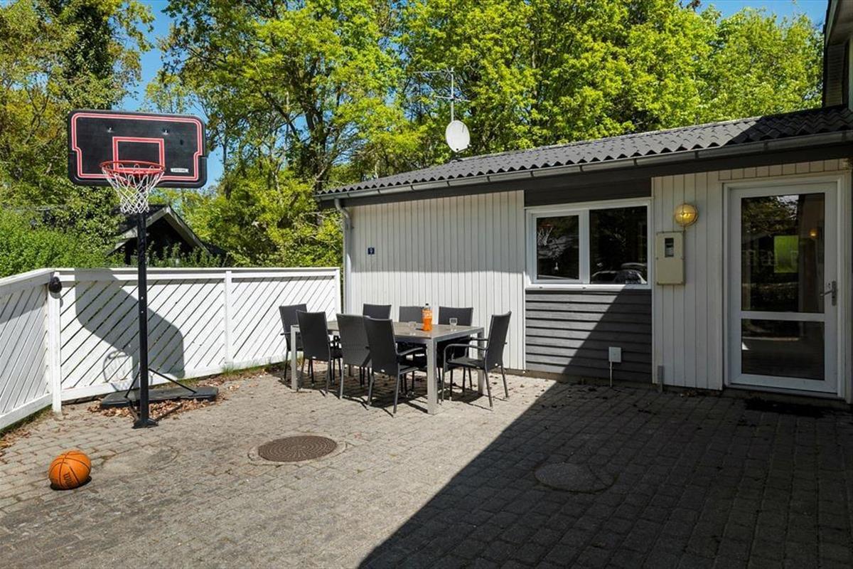 Unter freiem Himmel setzen sich die Urlaubsfreuden unvermindert fort. Dein Urlaubsdomizil liegt auf einem schönen Grundstück, das von Bäumen umgeben ist. Die Bäume sorgen für Windschutz und eine gemütliche Atmosphäre und schirmen das Grundstück angenehm ab. Deine ganze Familie darf sich auf viel Platz freuen - ganz gleich, ob ihr es euch mit einem spannenden Buch in der Sonne gemütlich machen oder auf der Rasenfläche Ball spielen wollt. Die Grillterrasse lädt zu stimmungsvollen Sommerabenden mit gutem Essen und angeregten Gesprächen ein. Auf dem Sonnenhof sorgt ein Basketballkorb für sportliche Aktivität und Spaß. Deine kleineren Kinder dürfen sich auf eine Sandkiste und Schaukeln freuen. Zum Ausklang eines langen, erlebnisreichen Urlaubstages versammelt ihr euch garantiert gern zusammen an der Lagerfeuerstelle, an der ihr Marshmallows und Stockbrote unter dem funkelnden Sternenhimmel rösten könnt.