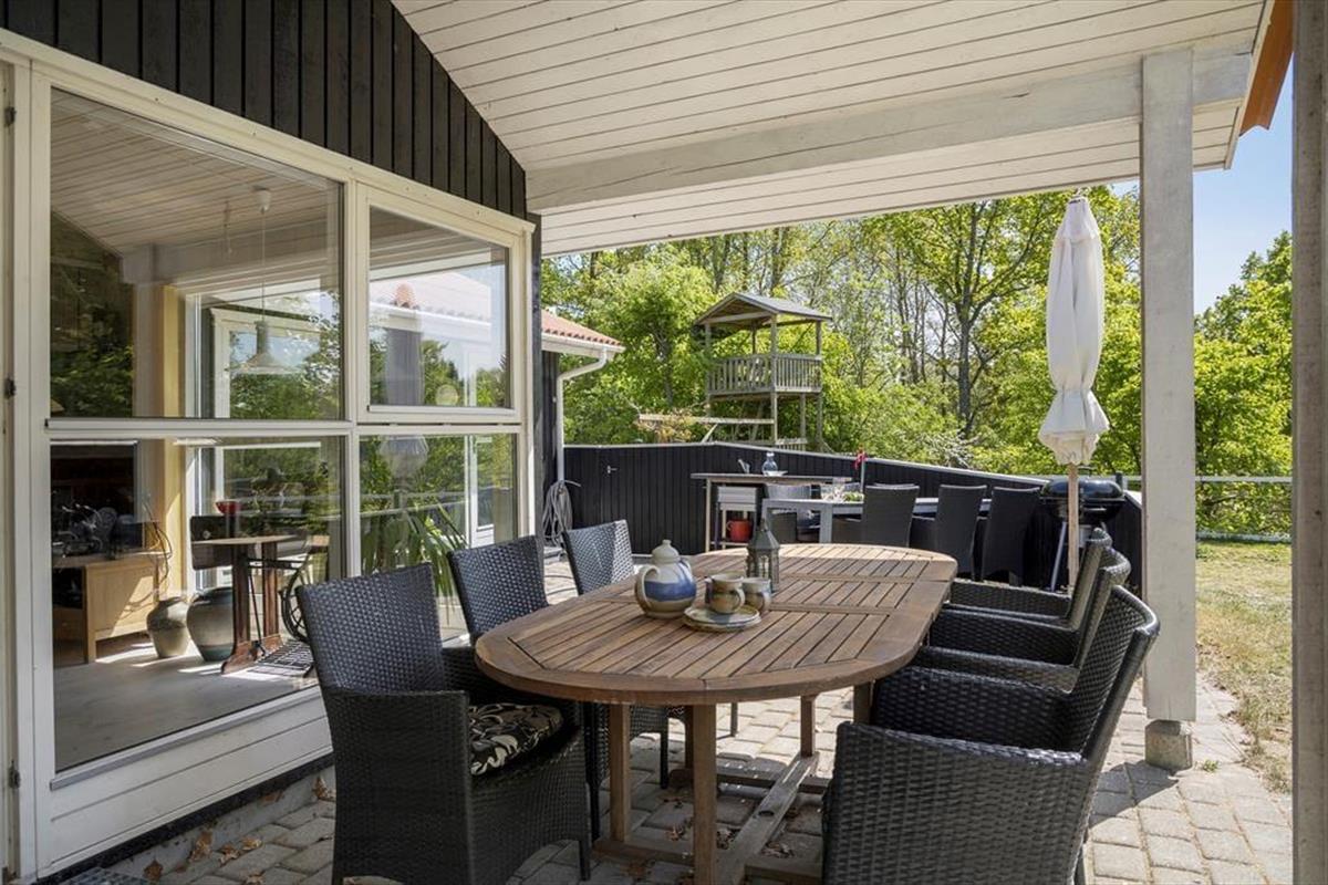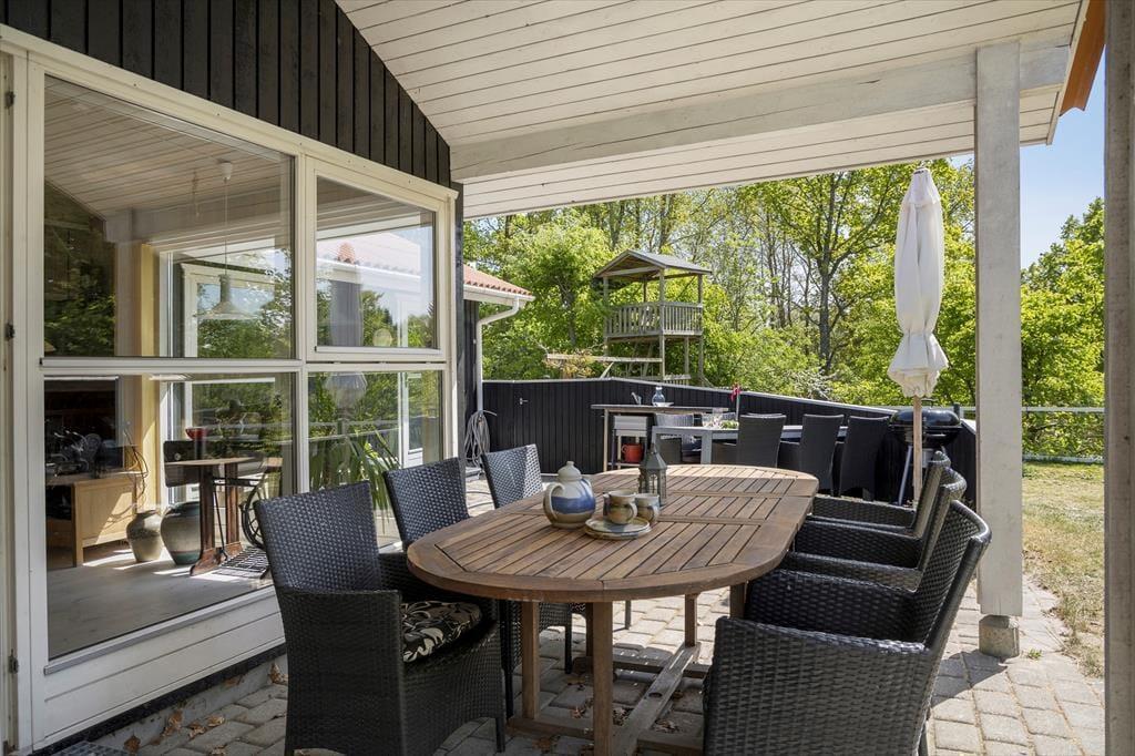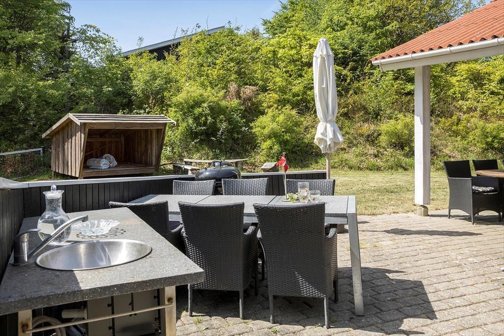 Die Terrasse bildet einen tollen Rahmen für lange Sommertage und gemütliche Abende. Sie unterteilt sich in kleine reizende Bereiche: eine gemütliche Kaffeeecke für einen frischen Kaffee in der Morgensonne, eine Sonnennecke für erholsame Stunden mit einem Buch, eine Essecke für die gemeinsamen Mahlzeiten und selbstverständlich eine Grillecke für die Zubereitung des täglichen Abendessens. Praktischerweise steht darüber hinaus ein Außenwaschbecken bereit, an dem du beispielsweise Gemüse waschen und putzen kannst.