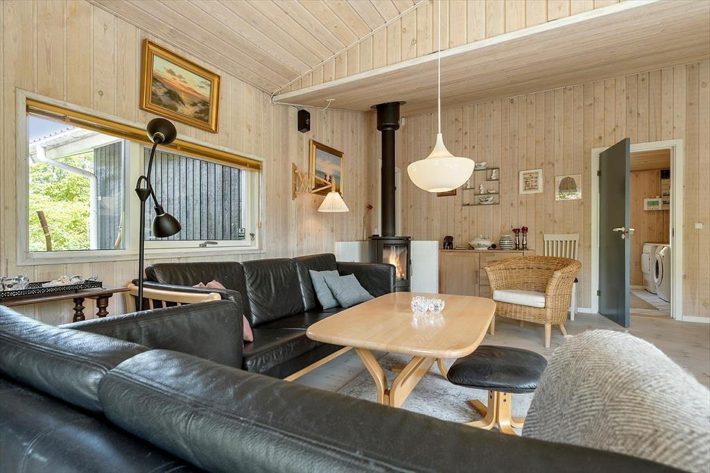 Stelle dir vor, wie du den neuen Urlaubstag in diesem schönen, persönlich gestalteten Ferienhaus begrüßt, in dem die Morgensonne durch die Terrassentüren in Küche und Wohnraum fällt. Das Haus verzaubert mit einer ganz besonderen Ruhe und Wärme, die nur selten zu finden ist - perfekt für erholsame Stunden und das wertvolle Beisammensein mit denen, die dir am meisten bedeuten. Herzstück des Hauses ist der gemütliche Wohnraum, der beste Voraussetzungen für vergnügte gemeinsame Stunden und ruhige Momente bietet. Für behagliche Wärme und ein Maximum an Ferienhausatmosphäre sorgt der Kaminofen. Du kannst mit deiner Familie dank des Parabol-TVs entspannte Filmabende verleben oder einfach hinaus in die schönen Garten blicken und deinen Gedanken freien Lauf lassen. Aufgrund der offenen Kombination aus Küche und Wohnraum genießt du selbst während der Zubereitung der täglichen Mahlzeiten die Nähe und Gesellschaft deiner Mitreisenden.