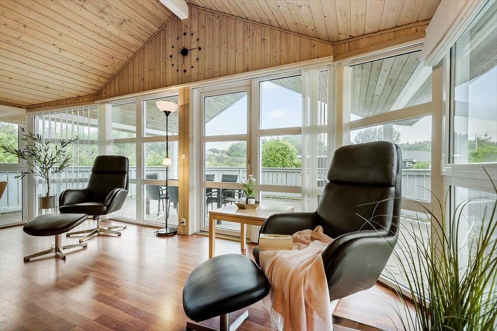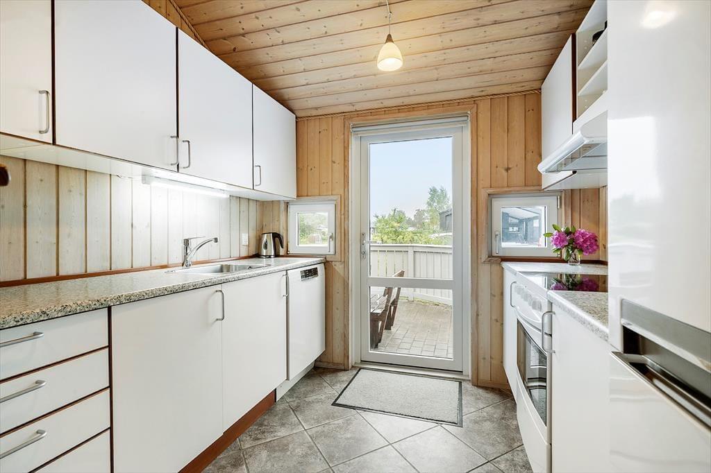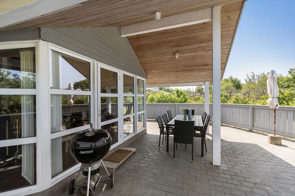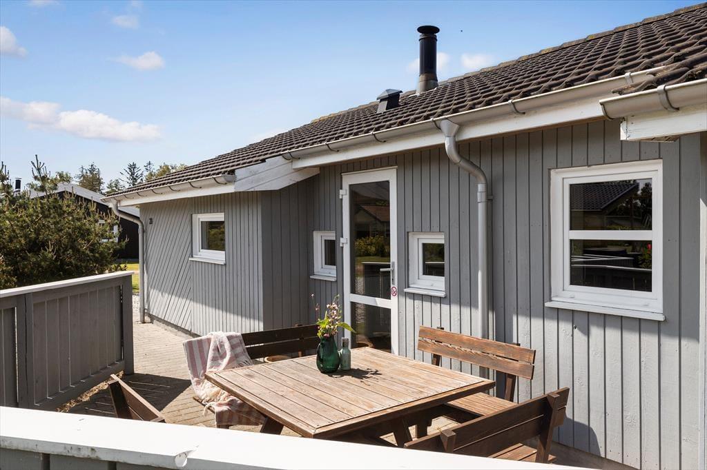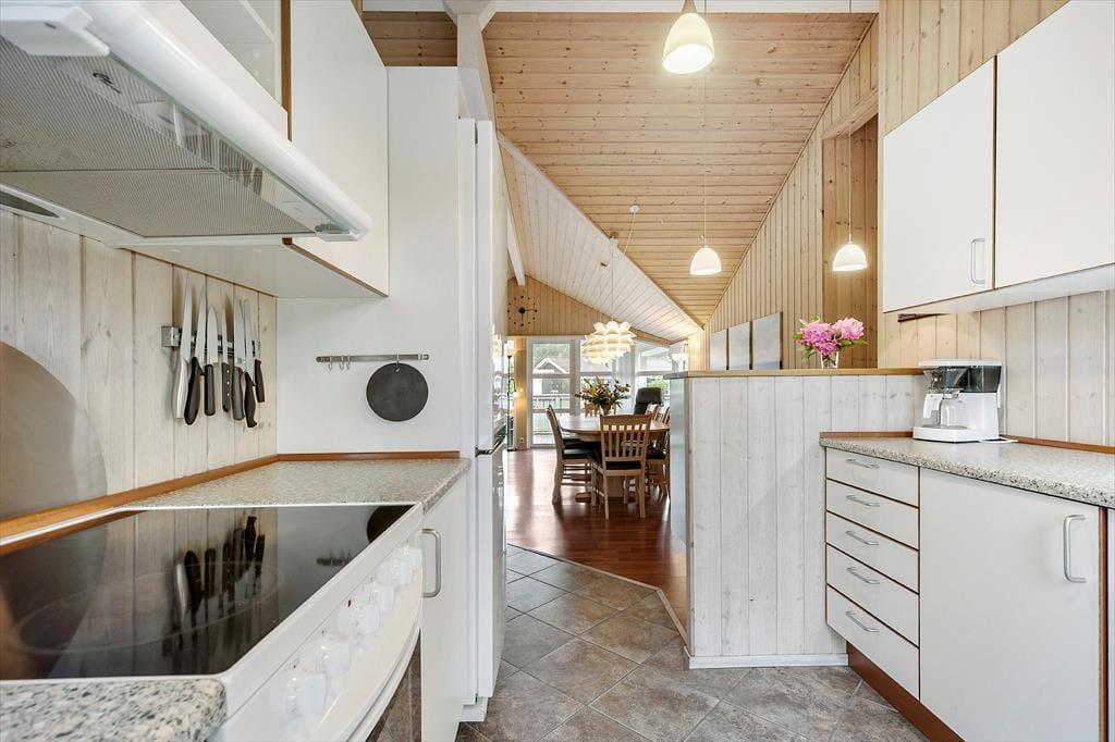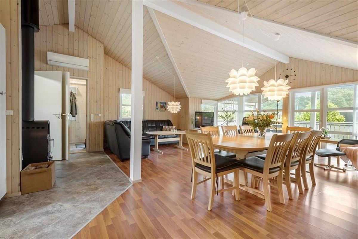 Das Mietobjekt vereint Atmosphäre und Funktionalität in schönster Weise. Die hellen Holzwände, Holzdecken und Holzböden verleihen deinem Haus pure Gemütlichkeit und Charme. Der helle Küchen- und Essbereich und der Wohnraum bestechen mit hohen Decken, einem attraktiven Tageslichteinfall und einem Kaminofen, der das ganze Jahr über für klassisch dänisches Ferienhausflair sorgt. Küche und Wohnraum bieten dir einen direkten Ausgang auf die Terrasse. Ein Teil der Terrasse ist überdacht - perfekt, wenn sich das Wetter einmal von seiner wechselhaften Seite zeigt.
