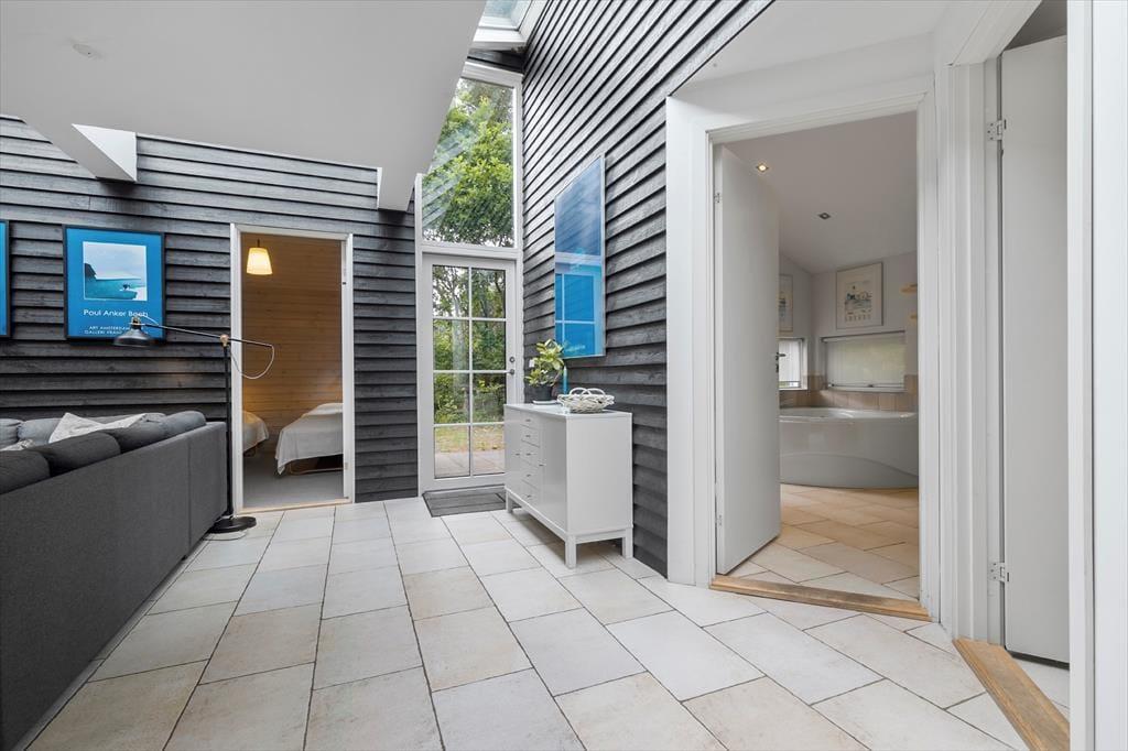 Auf dem Ferienhausgrundstück kann sich deine Urlaubstimmung frei entfalten. Es bietet sich dir und deine Lieben viel Platz zum Erholen und für verschiedenste Aktivitäten. Freue dich auf eine große, grüne Grasfläche zum Ballspielen und Umhertollen, auf einladende Loungemöbel unter großen Sonnenschirmen, auf köstliche Mahlzeiten vom Grill und auf lange, laue Sommerabende in geselliger Runde. Zum Ausklang eines langen Urlaubstages könnt ihr an der Lagerfeuerstelle Stockbrote und Marshmallows rösten, den in schönste Rottöne gefärbten Himmel bewundern und dabei den Klängen der Natur lauschen. Die überdachte Terrasse verlängert die Außensaison merklich. Hier könnt ihr wunderbar frühstücken, während der Regen auf das Dach trommelt, oder an kühlen Abenden mit warmen Decken in gemütlicher Runde beisammensitzen. Da dein Ferienhaus lediglich 300 Meter vom kinderfreundlichen Fjellerup Strand entfernt ist, wird es euch gleich mehrmals pro Tag ans Wasser und zurück ziehen - sei es, um die Sonnencreme zu holen, mittags eine kleine Stärkung auf der Terrasse zu genießen oder sich einfach eine kleine Pause vom Strandleben in diesem stimmungsvollen Ferienhaus zu gönnen.