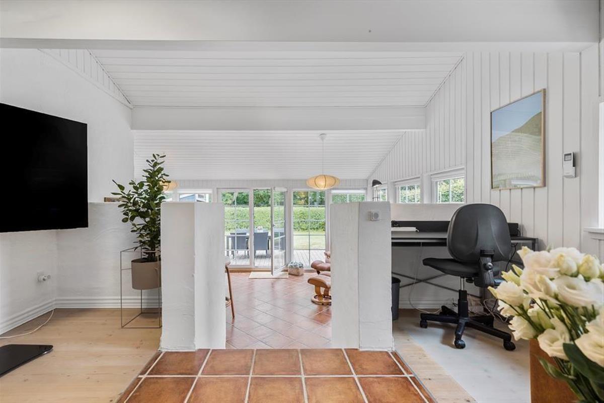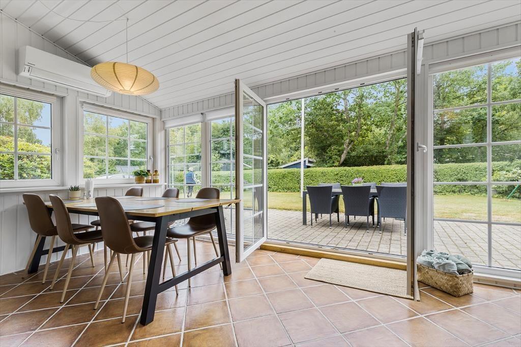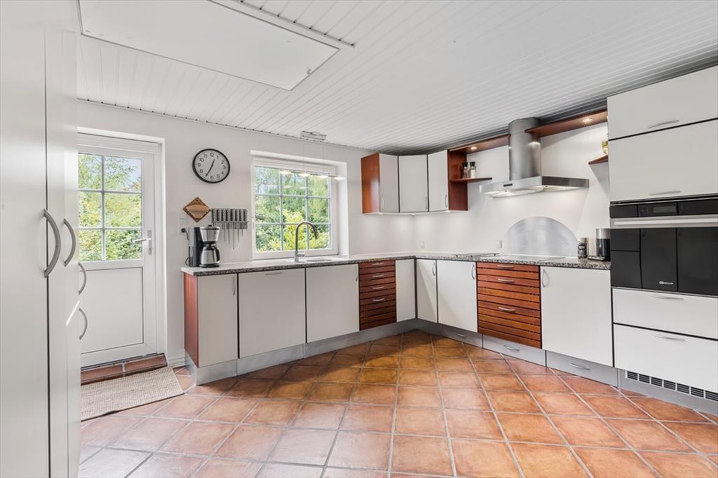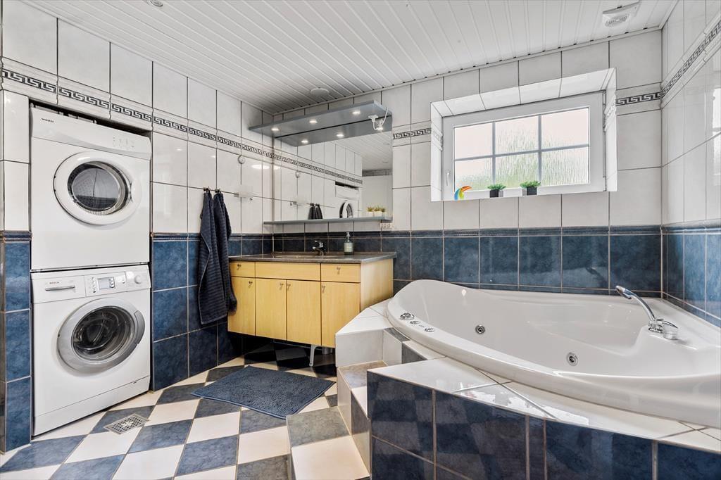 Willkommen in deinem geräumigen, stimmungsvollen Ferienhaus mit einer Wohnfläche von 138 m² - einer schönen Basis für entspannte Tage, gemeinsame Mahlzeiten und unvergessliche Urlaubsstunden. In diesem Urlaubsdomizil trifft südländischer Charme auf dänischen Komfort. Die Wohnfläche unterteilt sich in mehrere Ebenen. Sie ist interessant geschnitten und besticht mit vielen gemütlichen Eckchen. Die ansprechende Küche eignet sich bestens für die gemeinsame Zubereitung der Mahlzeiten und für gesellige Runden. Hier wird das tägliche Gemüseputzen und Kochen zum vergnügten Familienprojekt. Die beiden weitläufigen Wohnräume laden zum Erholen und Entspannen ein und verfügen jeweils über einen Essplatz. Rückzugs- und Entfaltungsmöglichkeiten sind somit reichlich vorhanden. In einem der Wohnräume erwarten dich weiche Polstersitzmöbel, ein Kaminofen und ein großer Fernseher, der dänische und internationale Sender empfängt. Im zweiten Wohnraum triffst du auf einen Bartresen, zwei herrliche Sessel und den zweiten Esstisch des Hauses. In diesem Raum kannst du mit deinen Lieben nicht nur die Mahlzeiten genießen, sondern darüber hinaus sehr gut Spieleabende und dergleichen veranstalten. Zudem genießt du von diesem Raum aus einen direkten Zugang zur schönen Westterrasse, auf der du bis in die Abendstunden mit Sonne verwöhnt wirst. Die einladenden Schlafräume sind allesamt mit je einem Doppelbett und angenehm viel Schrankfläche versehen. Von einem Schlafraum aus gelangst du direkt in das große Badezimmer, das übrigens auch vom Wohnraum aus zugänglich ist. Das Badezimmer verwöhnt mit einem Whirlpool, einer Dusche und einem Wäscheturm. Traumhaft erholsame und entspannte Momente nach langen Tagen sind dir in diesem Badezimmer garantiert.