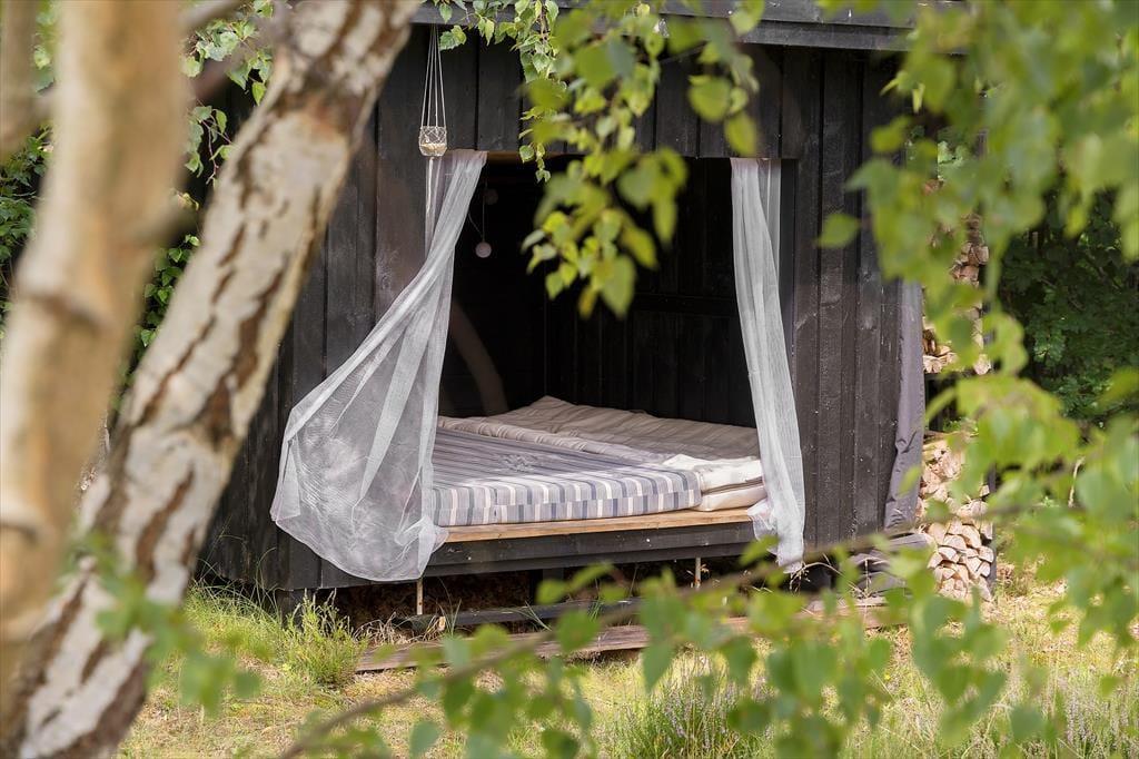 Unter freiem Himmel, lediglich 280 Meter vom Strand entfernt, liegt dieses lebendiges Naturgrundstück. Schlendere auf kleinen Pfaden entlang, die sich zwischen wilden Blumen und summenden Insektenhotels ihren Weg bahnen. Mache es dir in der Hängematte gemütlich, entfache ein Lagerfeuer in der Feuerstelle und genieße eine Nacht unter dem Sternenhimmel im Shelter. Deine Jüngsten erfreuen sich an einer Sandkiste und einer Schaukel. Zusammen werdet ihr sicherlich gern die Kugeln beim Bocciaspiel schwingen. Auf diesem Grundstück ist es dem Eigentümer gelungen, reizende kleine Oasen zu erschaffen, in denen Natur, Gemütlichkeit und das Beisammensein Hand in Hand gehen.