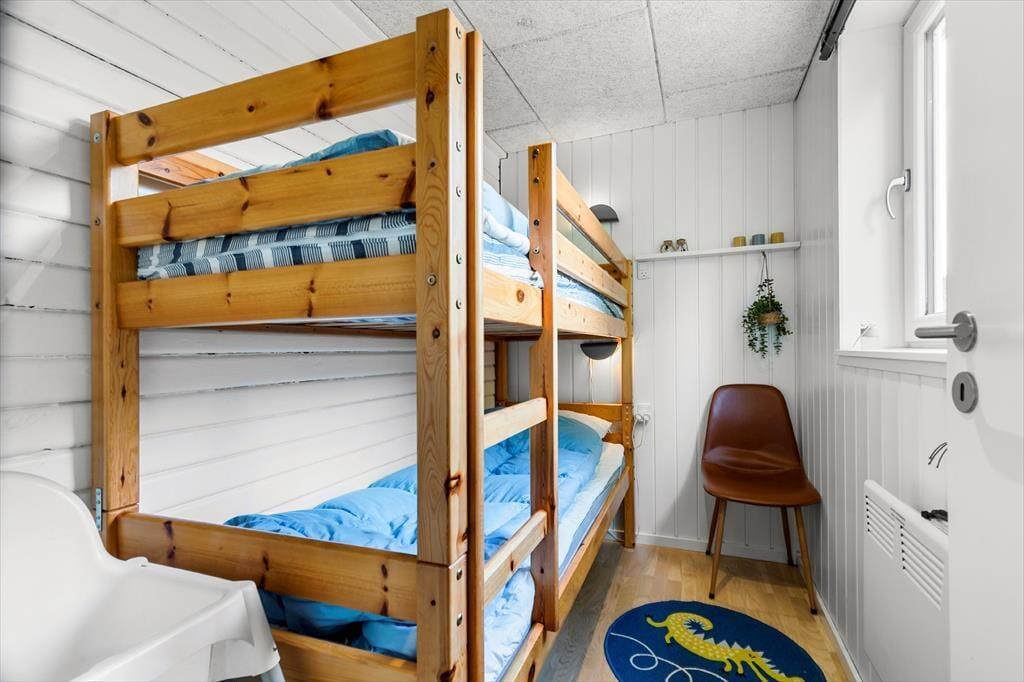 Das Haus verfügt über drei Schlafzimmer – zwei mit Doppelbett und eines mit Etagenbett, in dem die Kinder nach einem erlebnisreichen Tag friedlich einschlafen können. Zusätzlich gibt es ein Doppelschlafsofa im Wohnzimmer, das eine gute Alternative zu den Etagenbetten bietet. Neben einem Gäste-WC steht ein größeres Badezimmer mit Whirlpool zur Verfügung. In der Sauna können Sie die wohltuende Wärme genießen und nach einem aktiven Tag wunderbar entspannen.