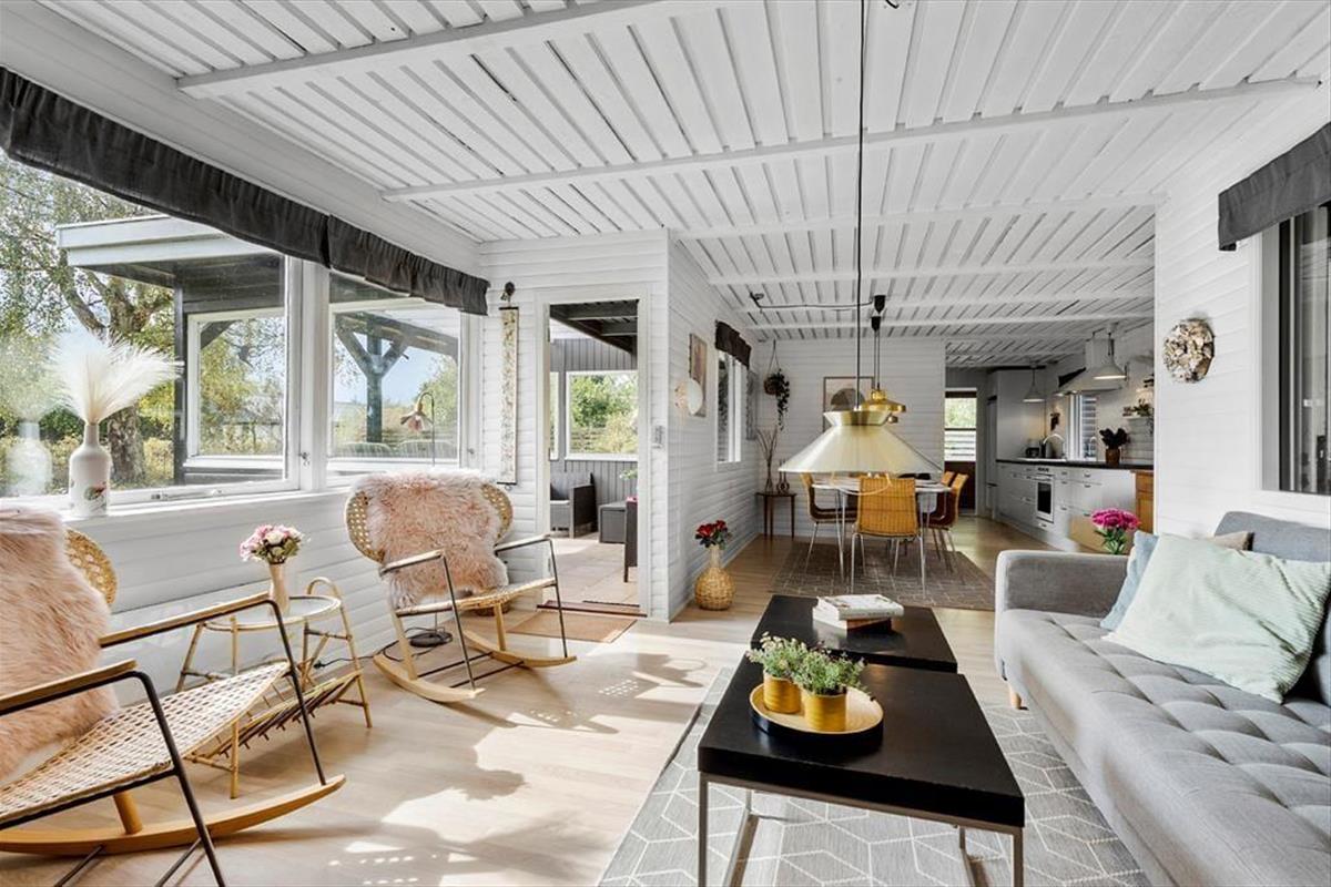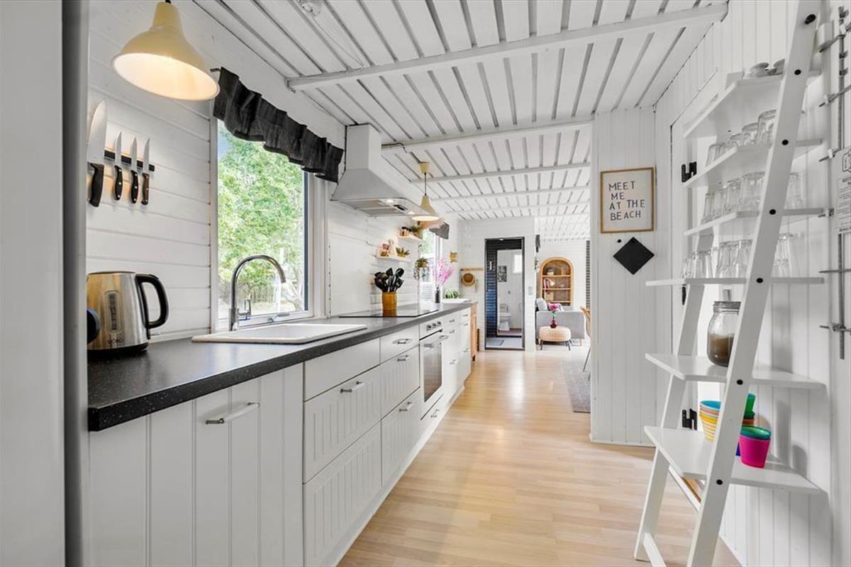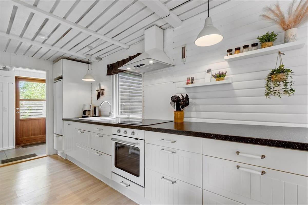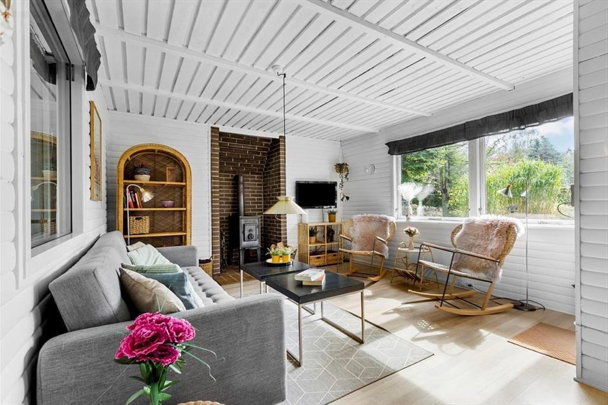 Dieses gemütliche und gepflegte Familien-Ferienhaus hat eine helle und freundliche Atmosphäre, sodass sich schnell Urlaubsstimmung einstellt. Im Mittelpunkt des Hauses befindet sich die gut ausgestattete Küche mit Induktionskochfeldern, aus der der Duft frisch zubereiteter Speisen strömt, während die Familie sich zu den Mahlzeiten am Esstisch versammelt. Die Küche ist offen mit dem Wohnzimmer verbunden, das im hellen Ferienhausstil mit Essbereich, gemütlichen Möbeln, TV und einem Kaminofen eingerichtet ist. Das knisternde Feuer sorgt für eine besondere Stimmung, wenn die Abende kühl werden.