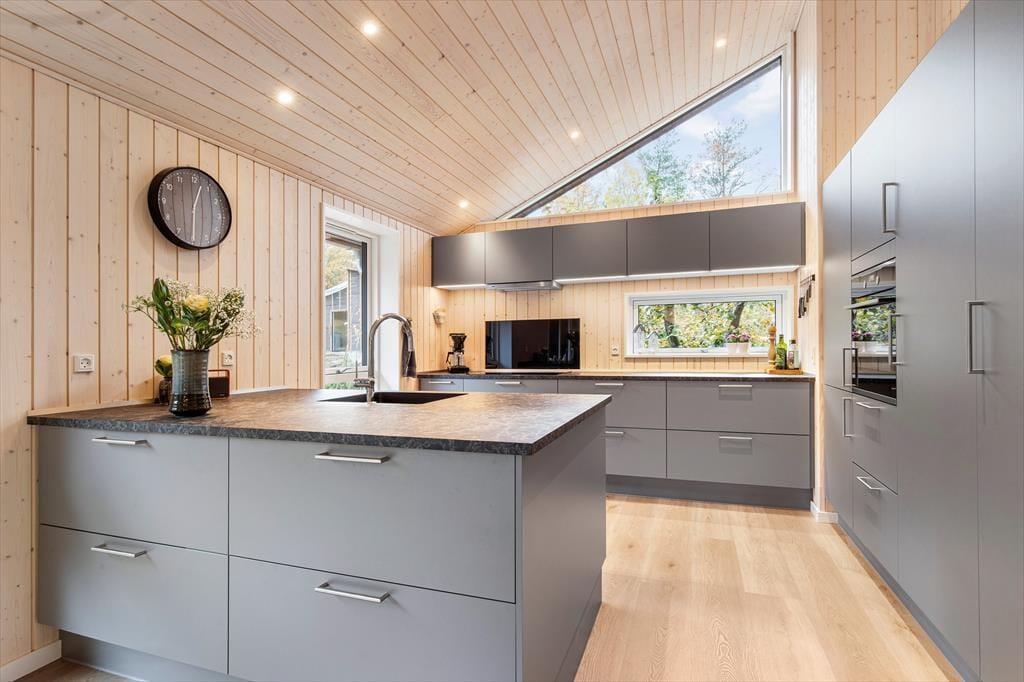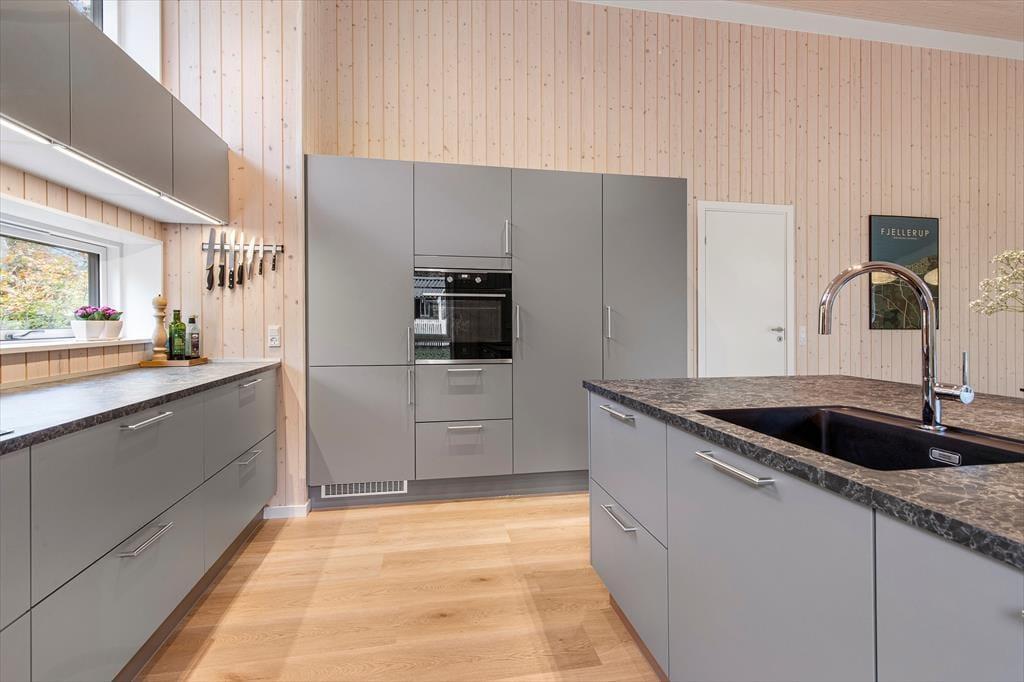 Dit moderne vakantiehuis in Fjellerup Strand biedt een perfecte uitvalsbasis voor gezinnen en groepen. Met een oppervlakte van 151 m² en een groot perceel van 1.617 m² geniet u van veel ruimte binnen en buiten. Het huis beschikt over vloerverwarming, een open keuken met moderne apparatuur, en twee badkamers.