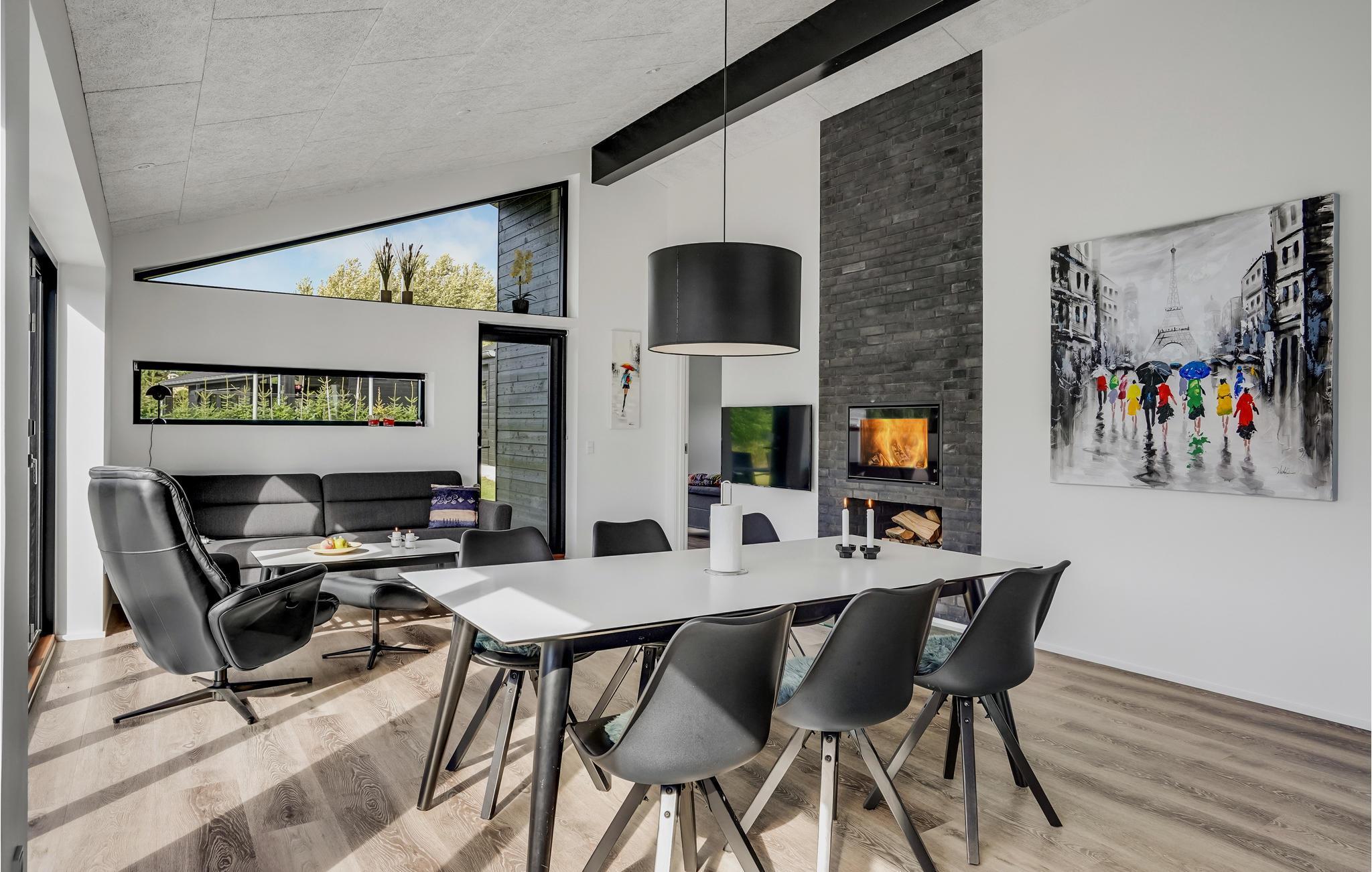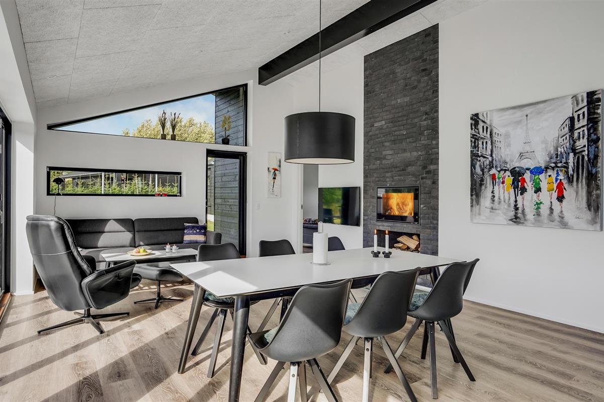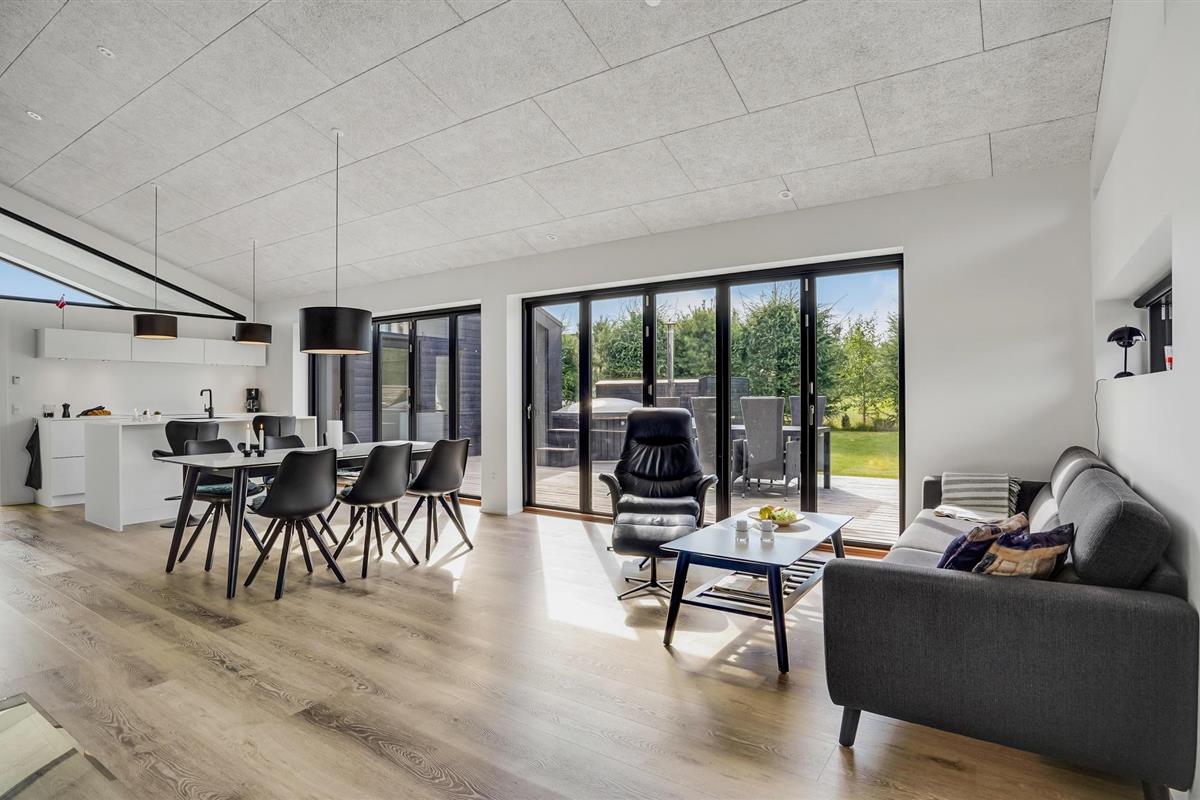 Stijlvol en comfortabel vakantiehuis vlak bij het zandstrand met open haard, activiteitenruimte en Finse hot tub.