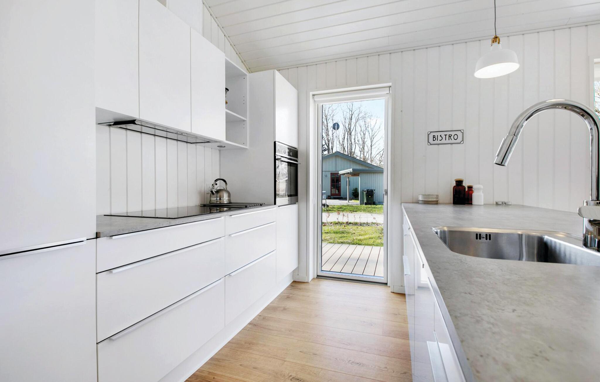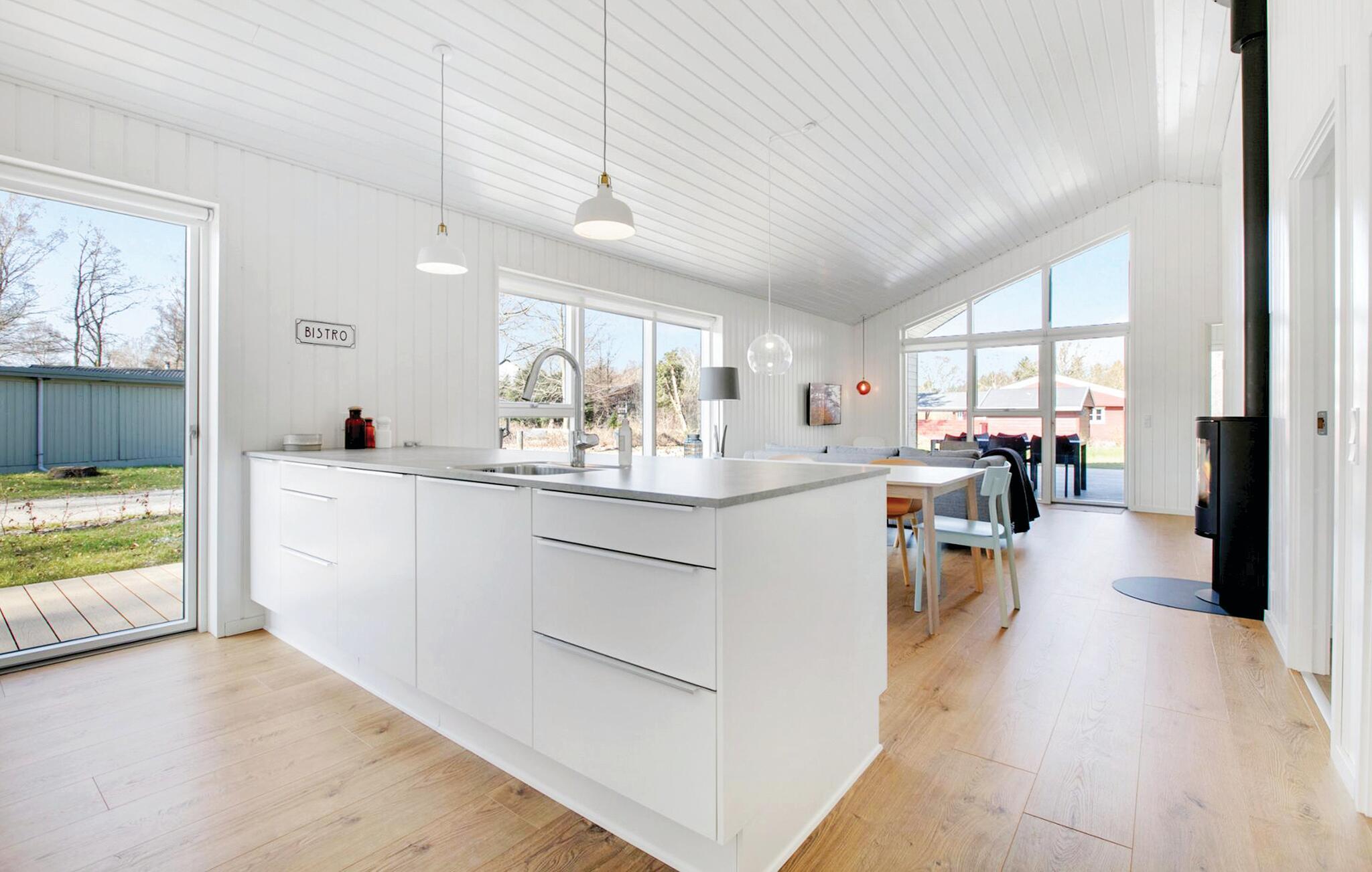 Dit mooie vakantiehuis ligt in de oude wijk van Fjellerup op een mooi perceel met een grasveld. Het huis is modern ingericht met goede slaapkamers en bedden en een mooie badkamer met bad en sauna. Er is ook een gastentoilet. De keuken is verbonden met de woonkamer, van hieruit heb je toegang tot het terras. Op loopafstand van het strand.