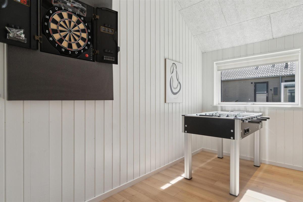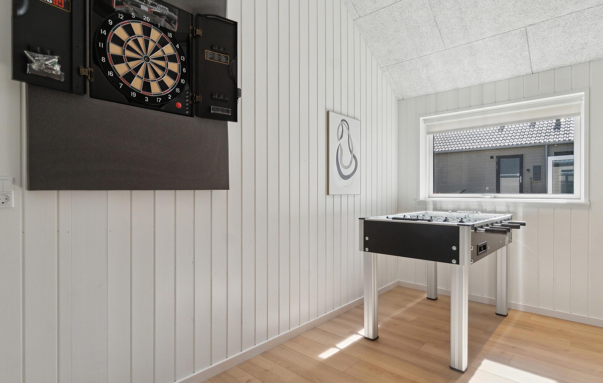 Licht en aantrekkelijk, dit uitnodigende huis verwelkomt je en biedt alles wat je nodig hebt voor een ontspannen vakantie met het hele gezin, waar grote en kleine gezinsleden aan hun trekken komen. Breng uren vol plezier door in het zwembad en ontspan in de sauna. Verheug je op gezellige avonden als je terugkomt van je avonturen, maak het jezelf gemakkelijk aan de eettafel, laat het diner naadloos overgaan in een spelletjesavond en praat nog lang na in gezellig gezelschap.