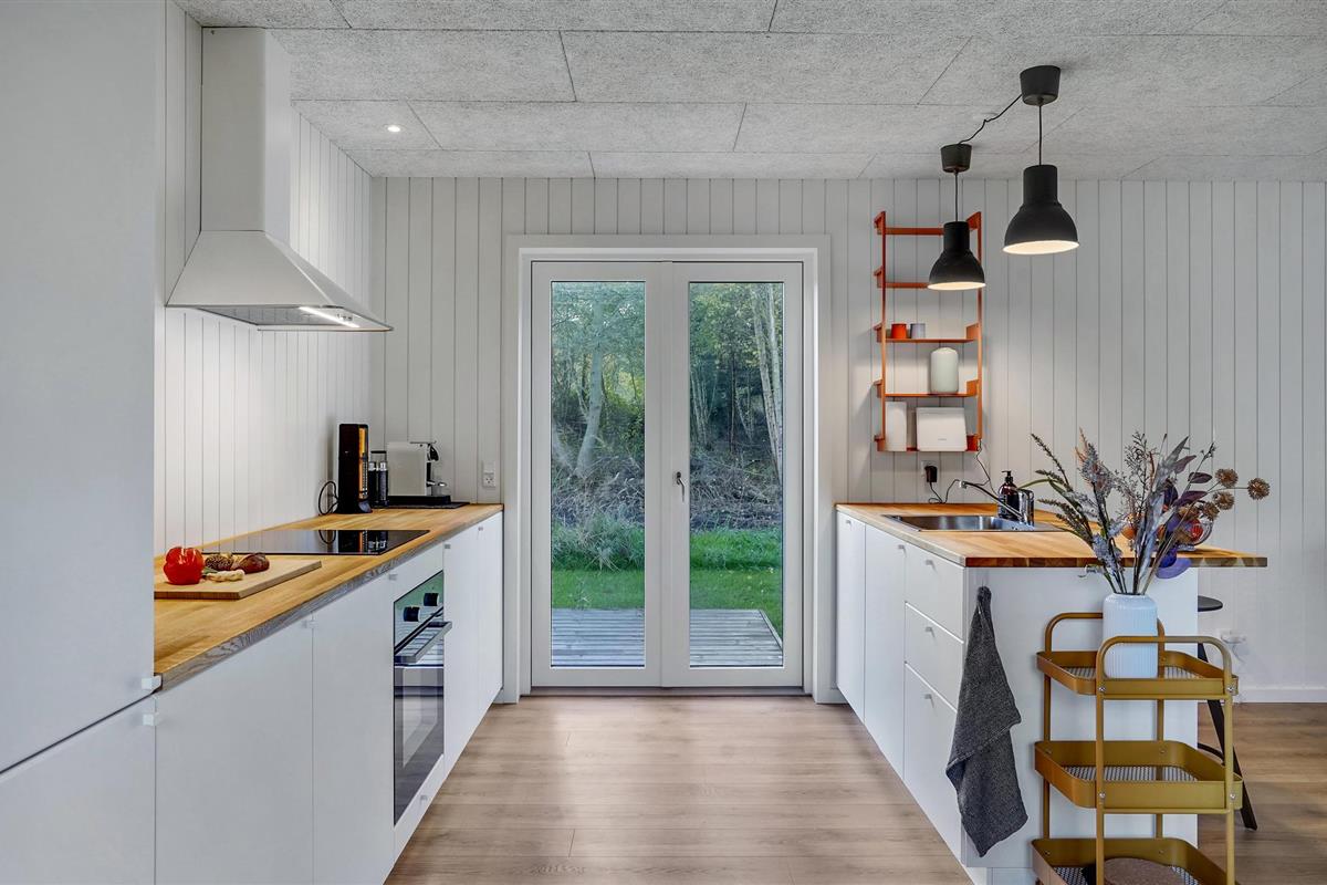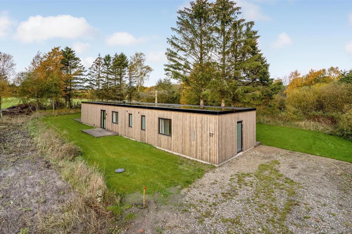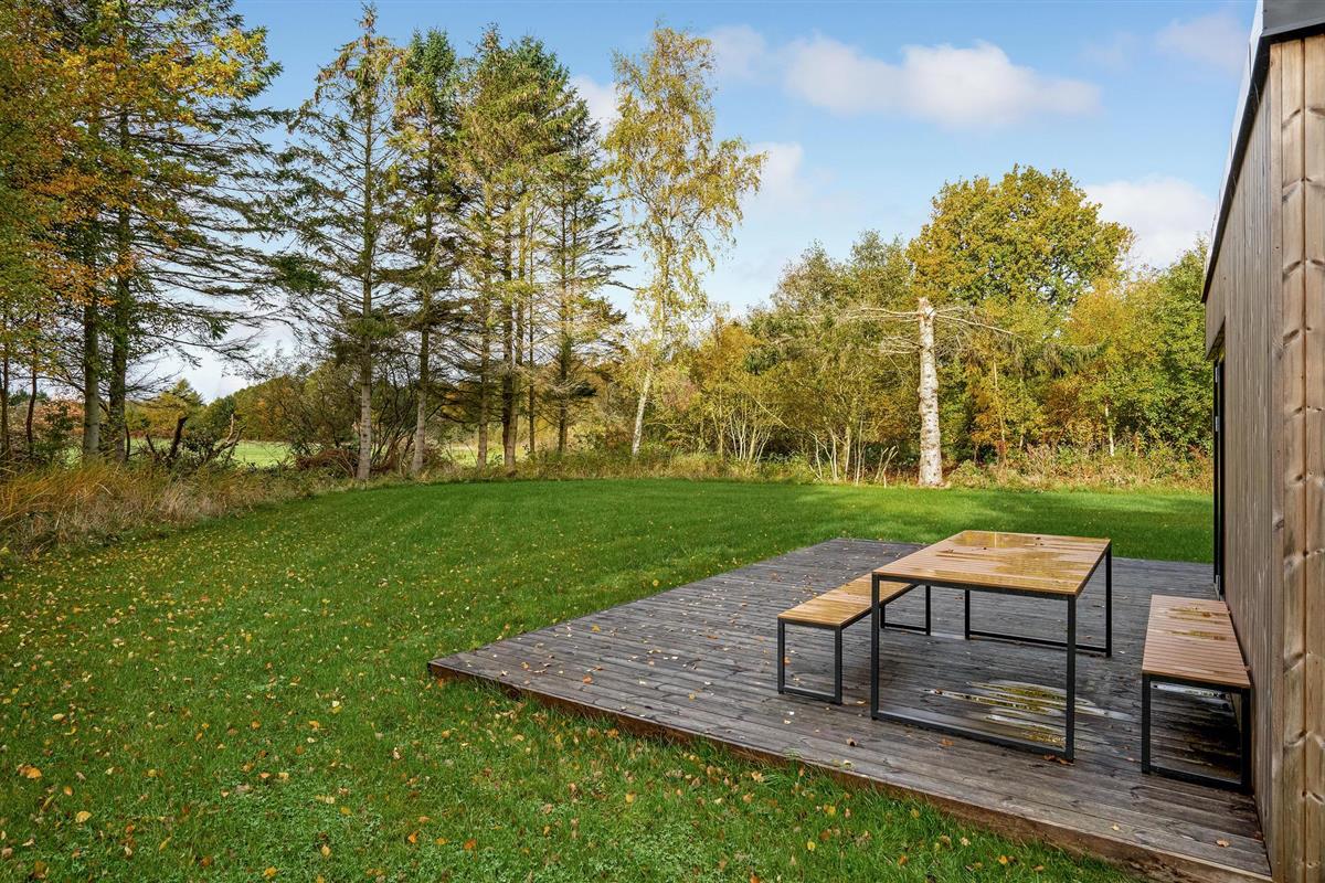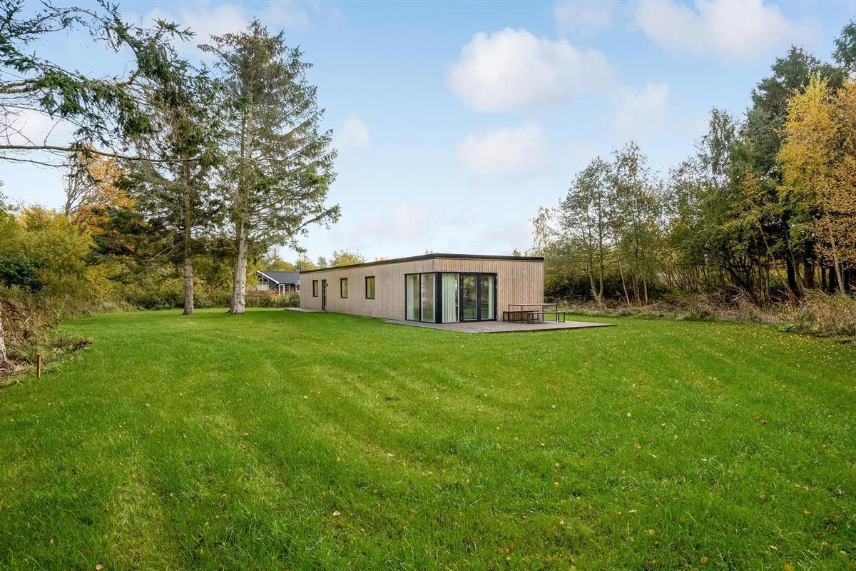 Modern houten vakantiehuis bij Fjellerup met rust, natuur en strand dichtbij, ideaal voor gezinnen met huisdieren.