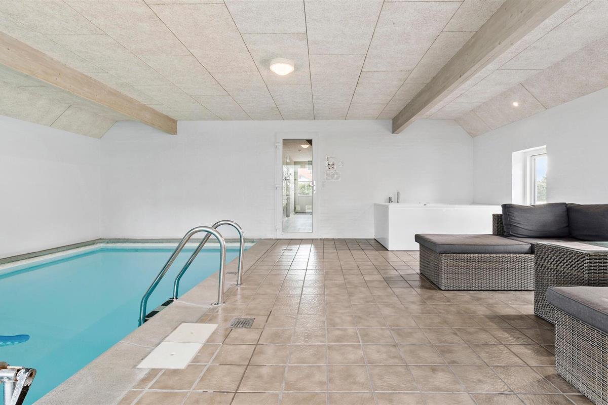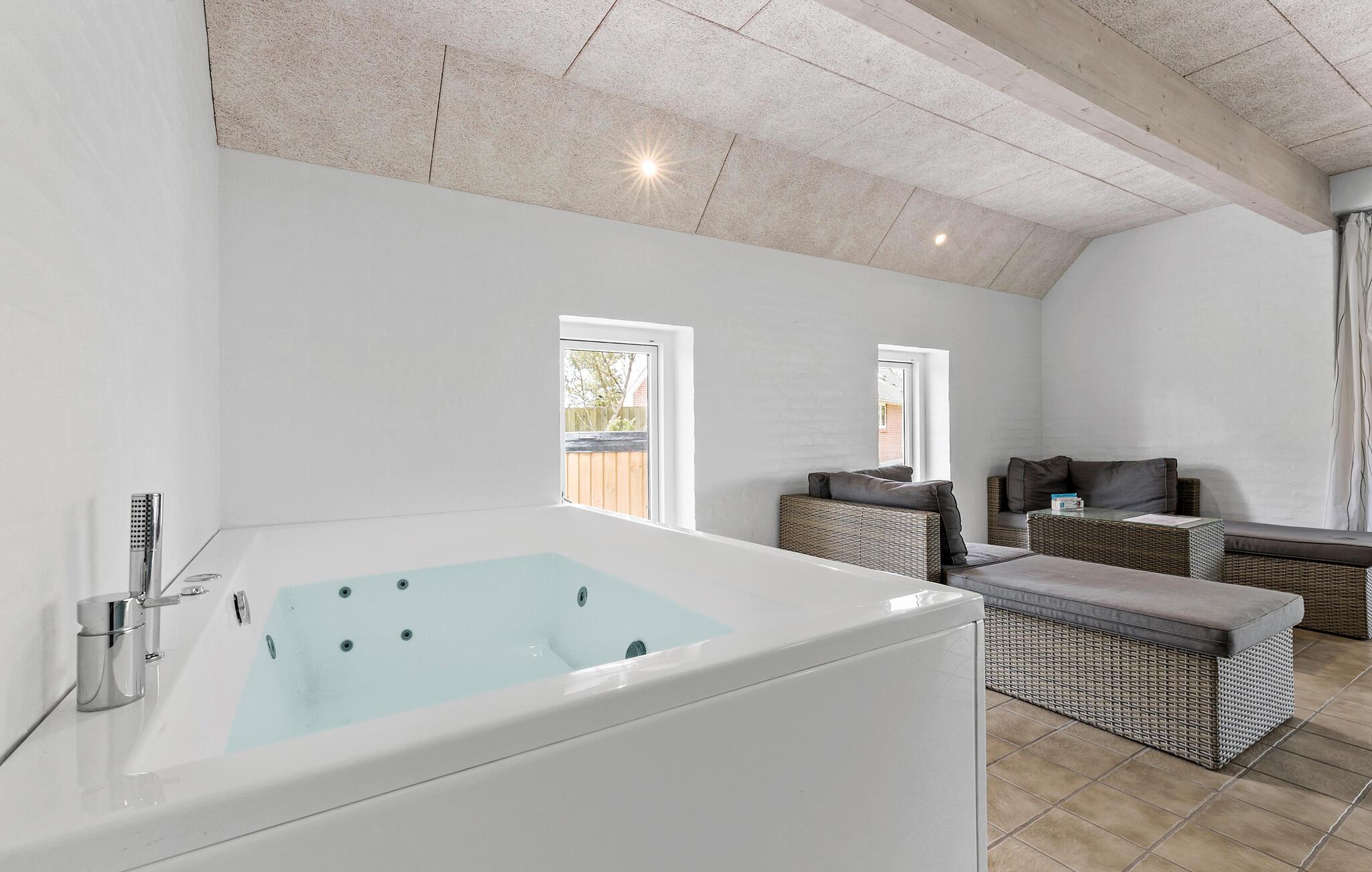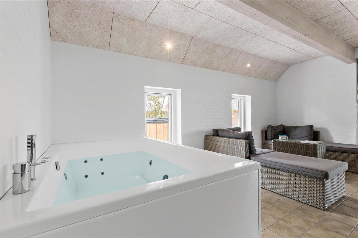 Breng een onvergetelijke vakantie door met familie of vrienden in dit prachtige vakantiehuis met binnenzwembad, whirlpool en buitensauna in Fjellerup Strand.
