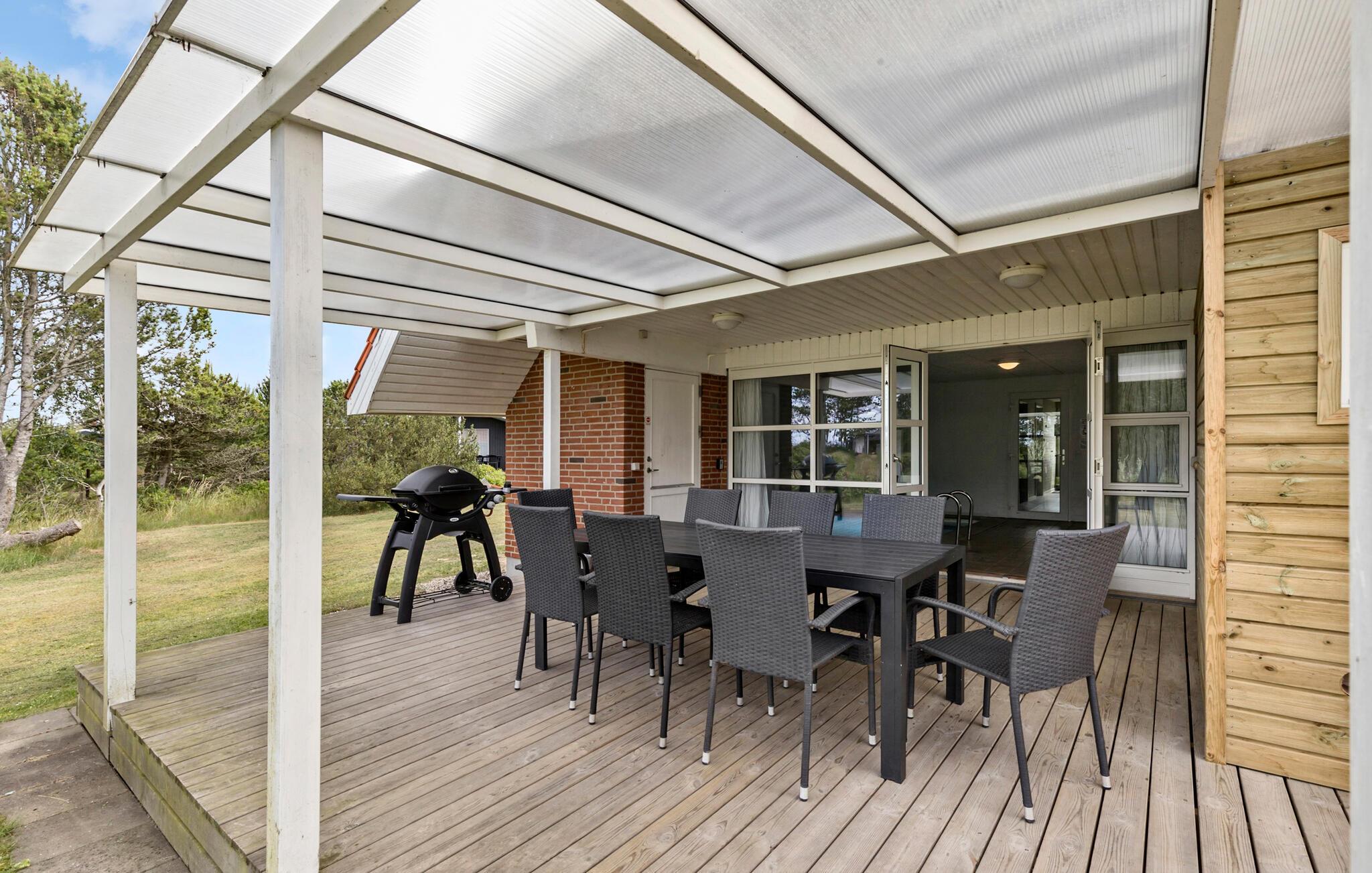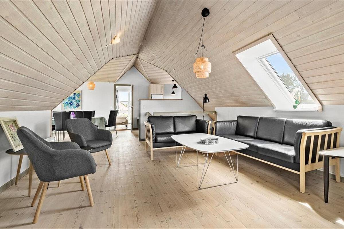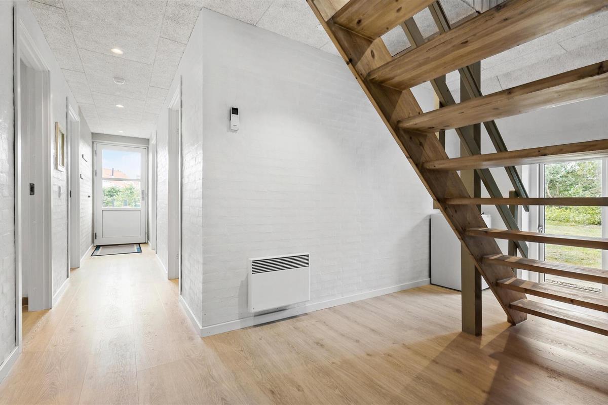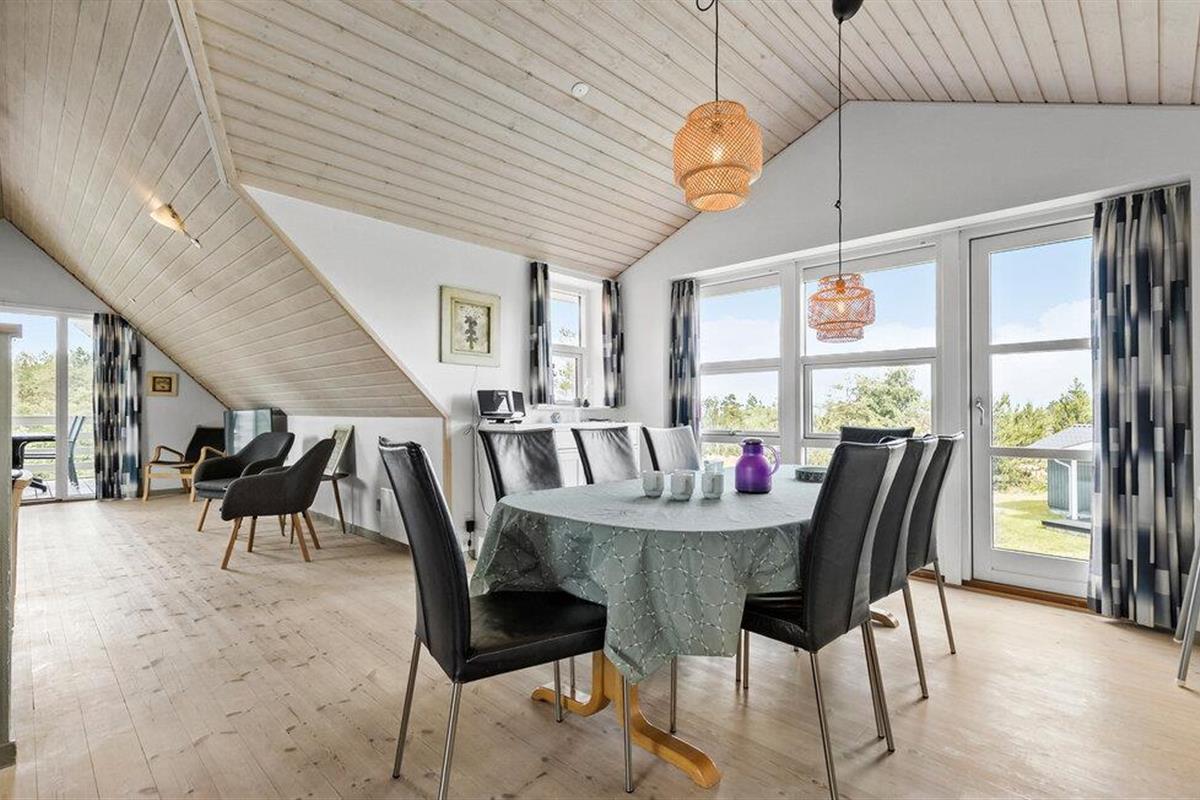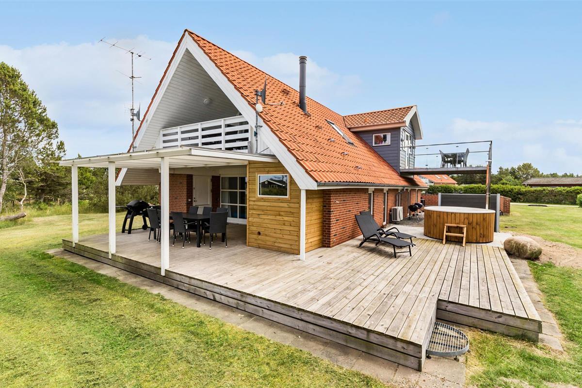 Dit uitnodigende vakantiehuis met ruimte voor 10 personen wacht op je op slechts 100 meter van het strand - ideaal als je een vakantie wilt doorbrengen met meerdere families of vrienden dicht bij de zee. Het huis heeft alles wat je nodig hebt voor een perfecte vakantie - een mooie open keuken, gezellige woonkamers, twee badkamers met toilet en douche en vier mooie slaapkamers. De mooie, ruime eetkeuken bevindt zich op de eerste verdieping en biedt voldoende ruimte voor de hele groep. Vanaf hier heb je ook toegang tot een overdekt terras met een prachtig uitzicht op het water, waar je kunt genieten van je ochtendkoffie of avondthee terwijl de zon ondergaat.