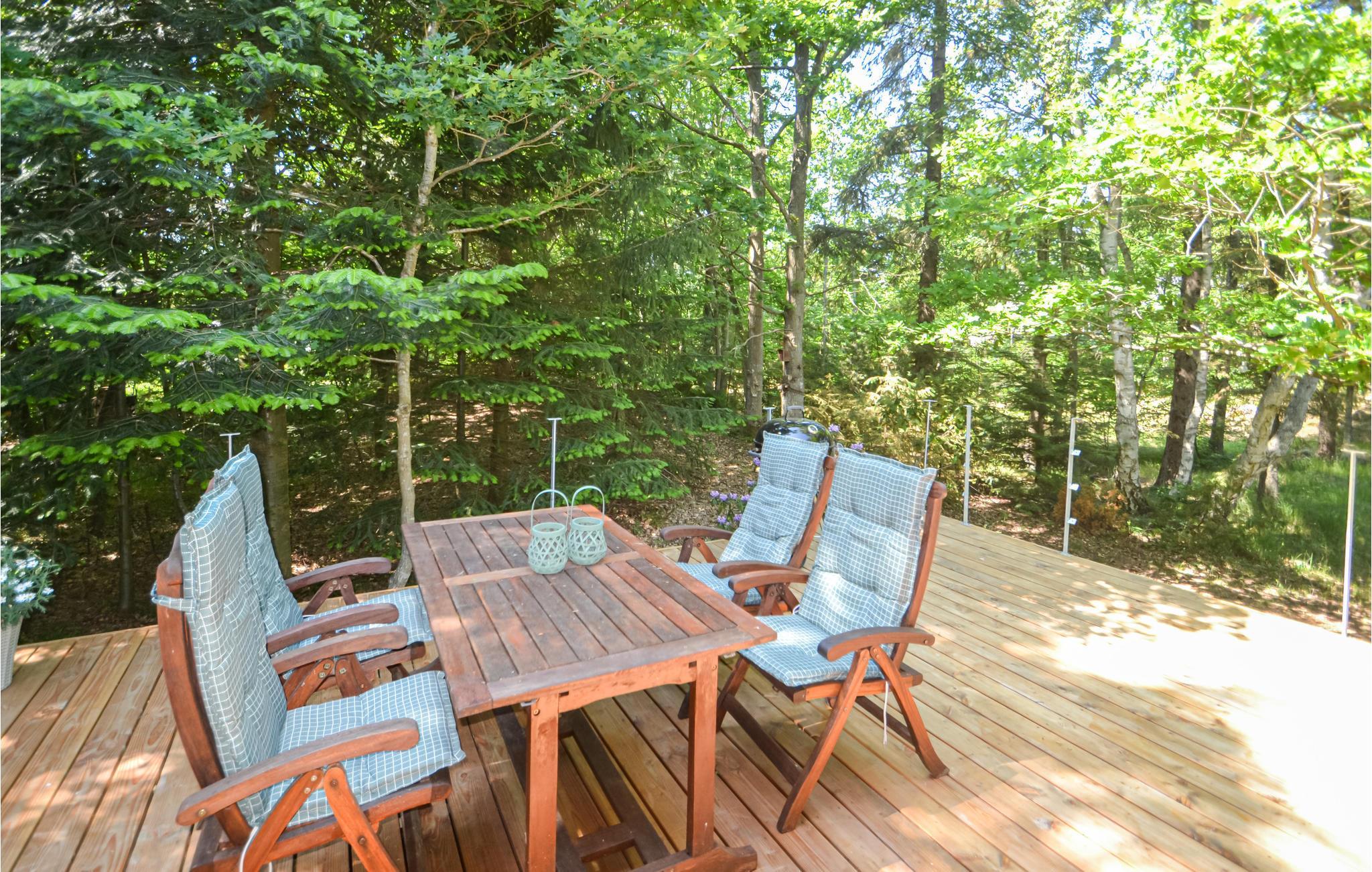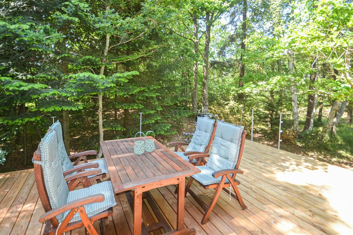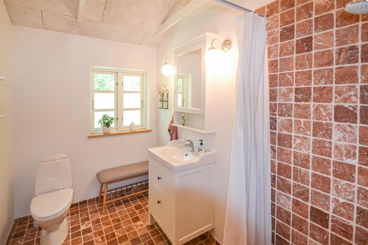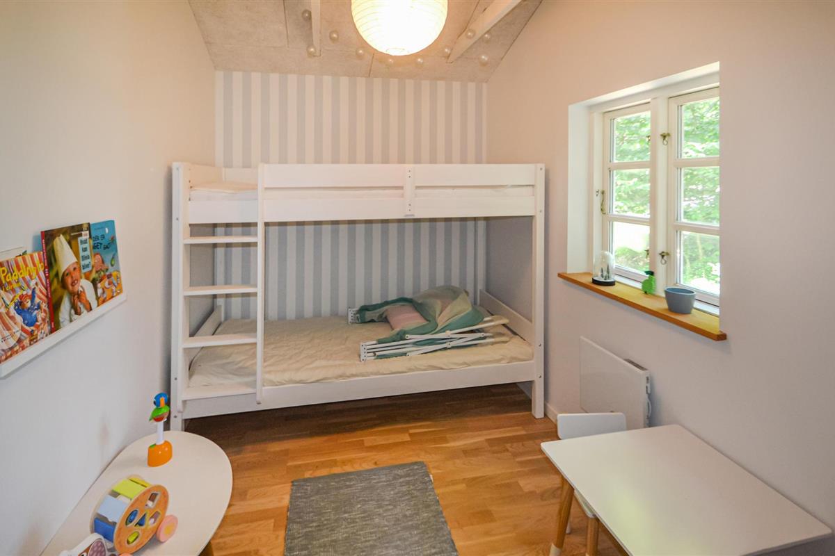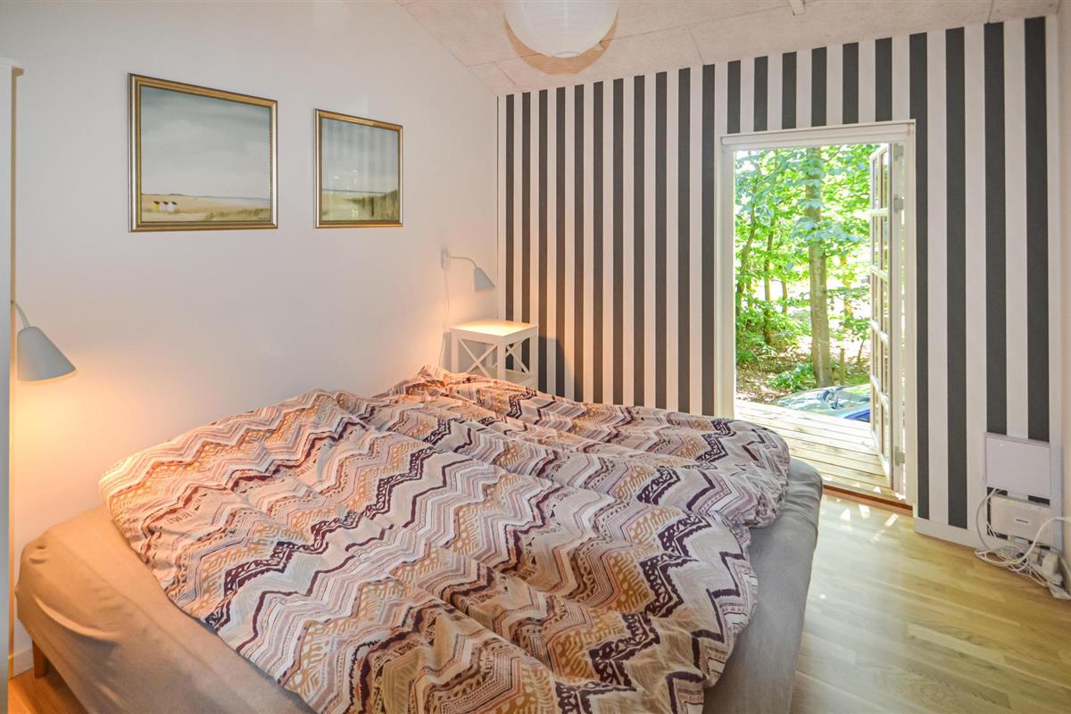 In het oude huisjesgebied in Fjellerup, op een heuvelachtig perceel, is dit huisje omgeven door hoge beukenbomen. Het huis is mooi en licht en heeft een groot terras met trappen naar de woning. Een deel van het grote raamoppervlak in de woonkamer kan worden geopend naar het terras, zodat u bijna het gevoel heeft dat u midden in de prachtige natuur zit. De woonkamer met houtkachel is ongelooflijk gezellig met comfortabele meubels en heeft zichtbare spanten met schuine plafonds die een goed gevoel van ruimte geven. In het verlengde van de woonkamer ligt de eetkamer en de goed uitgeruste keuken. Daarnaast heeft het huis 3 goede slaapkamers en een grote badkamer. Er is ruimte voor 2 auto's om te parkeren op het terrein.
