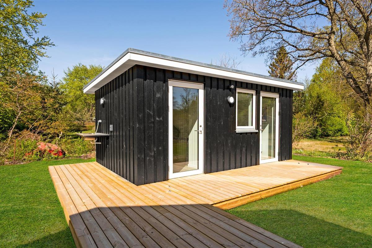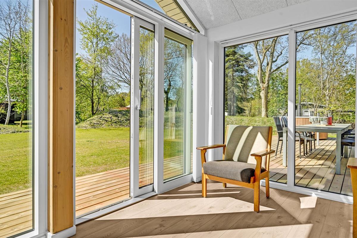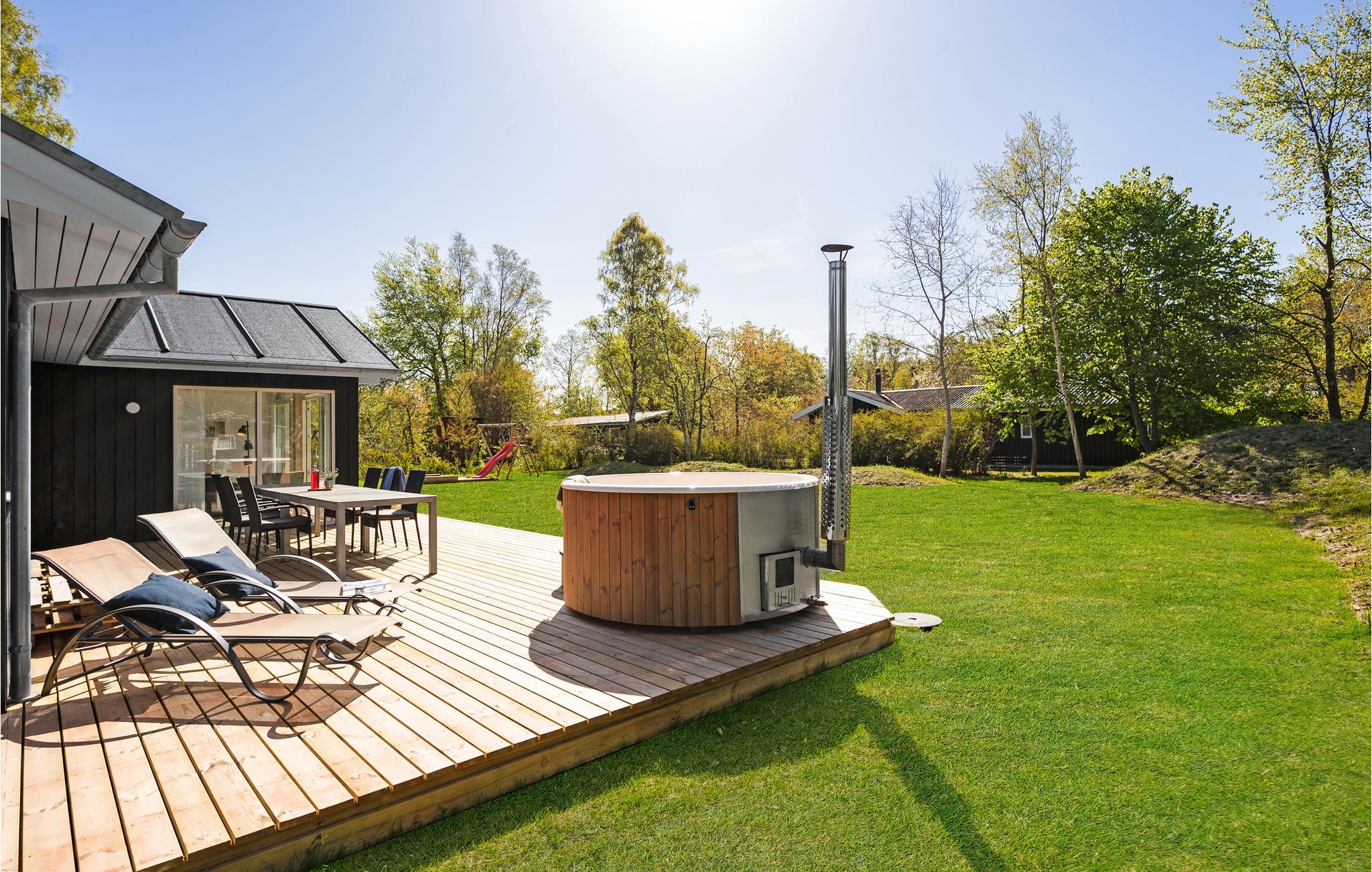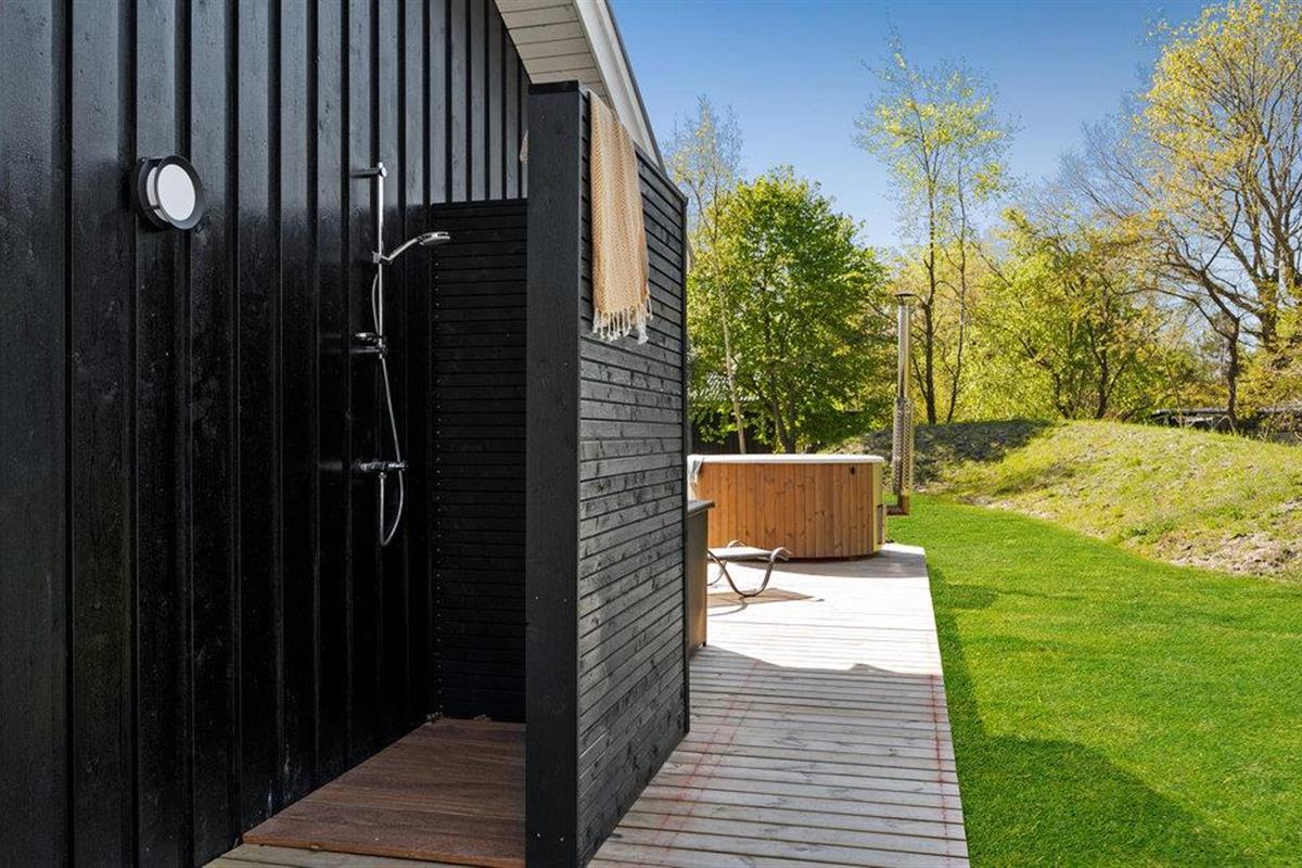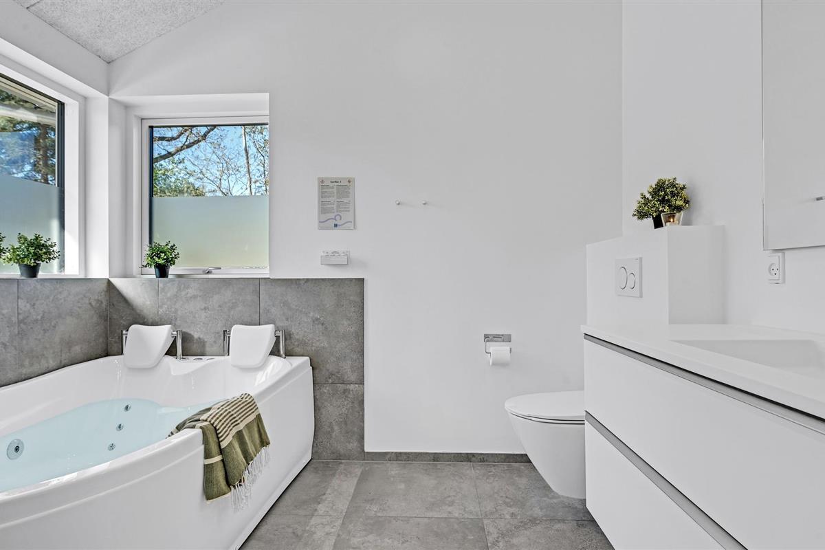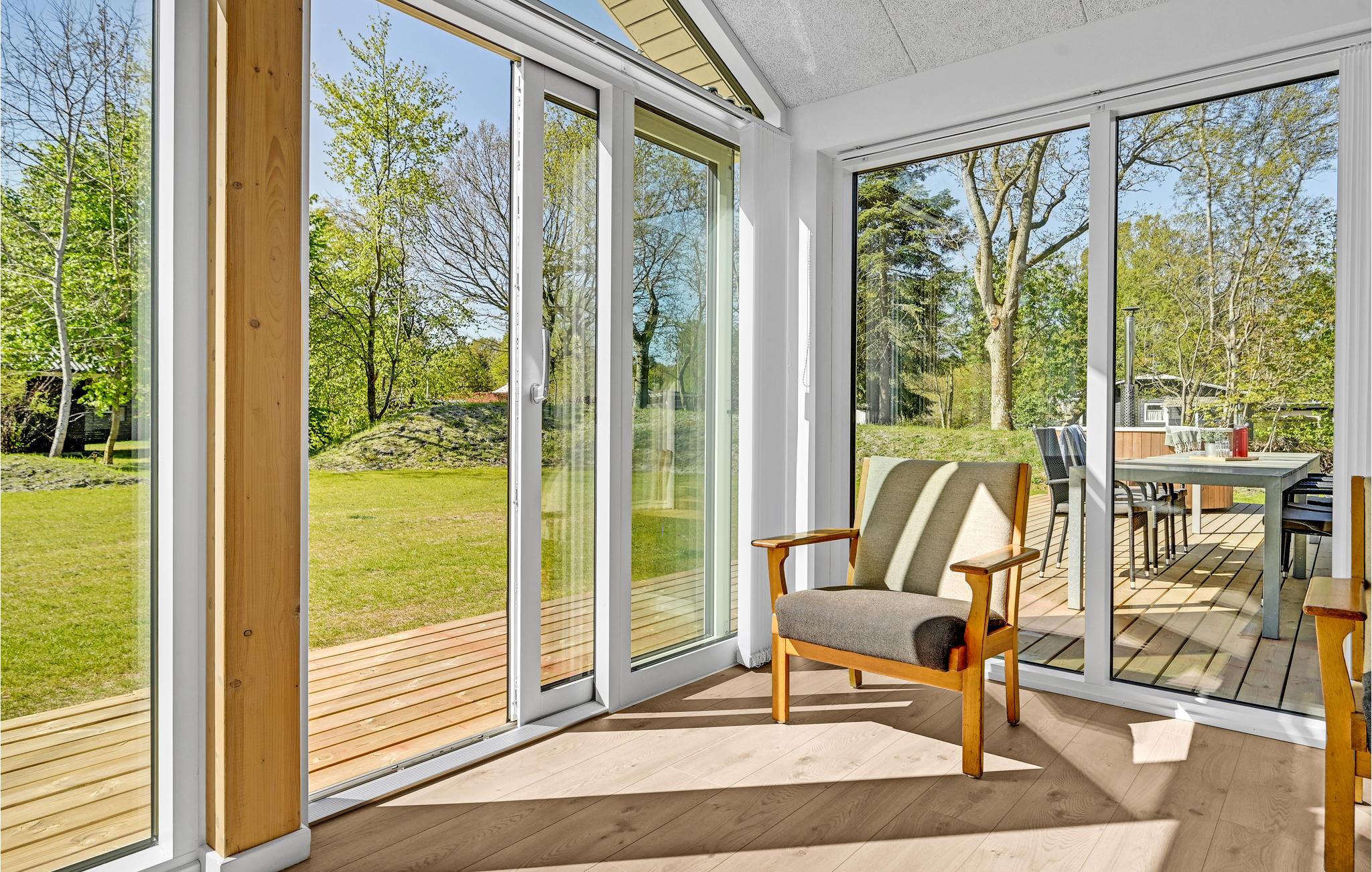 De open keuken in combinatie met de woonkamer maakt vloeiende gesprekken in de hele ruimte mogelijk, wat het geheel nog meer karakter geeft. De speelse schuine plafonds voegen een ander ongewoon tintje toe aan dit moderne vakantiehuis, waardoor de ruimte opener en groter lijkt. Als u door het huis loopt, zult u merken hoe licht het is door de glazen puien, waardoor u misschien denkt dat u helemaal geen kunstlicht nodig hebt, mocht het geen herfst of winter zijn in Denemarken. Bovendien is dit huis perfect in alle temperaturen en weersomstandigheden! U hoeft niet eens na te denken over hoe koud of warm het moet zijn, het binnen- en buitenzwembad zal u en uw metgezel helpen de juiste ontspanning te vinden op uw veranda of in de exclusieve badkamer, net als de aanwezige vloerverwarming.