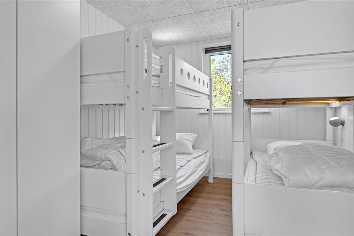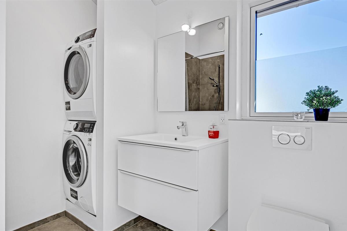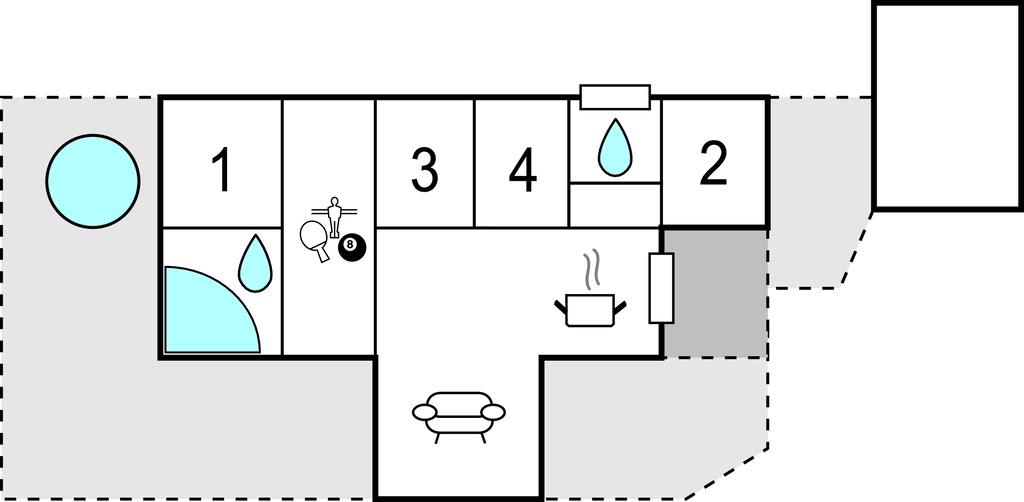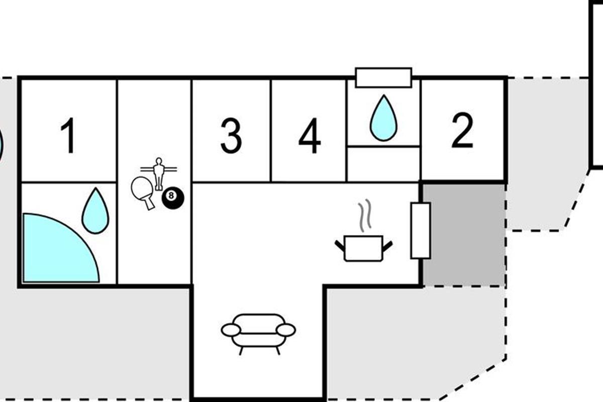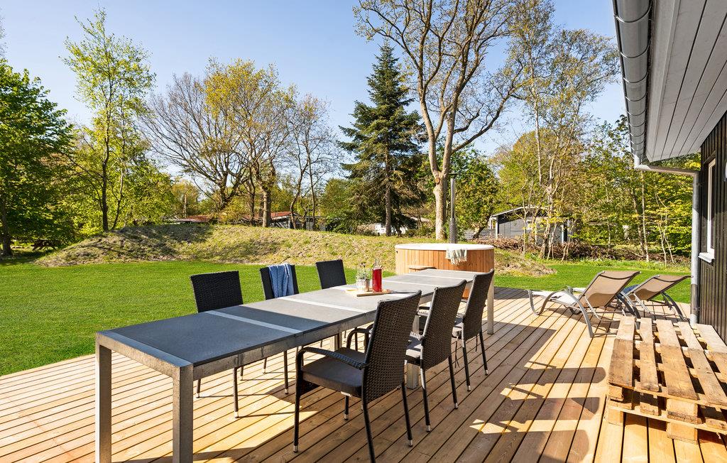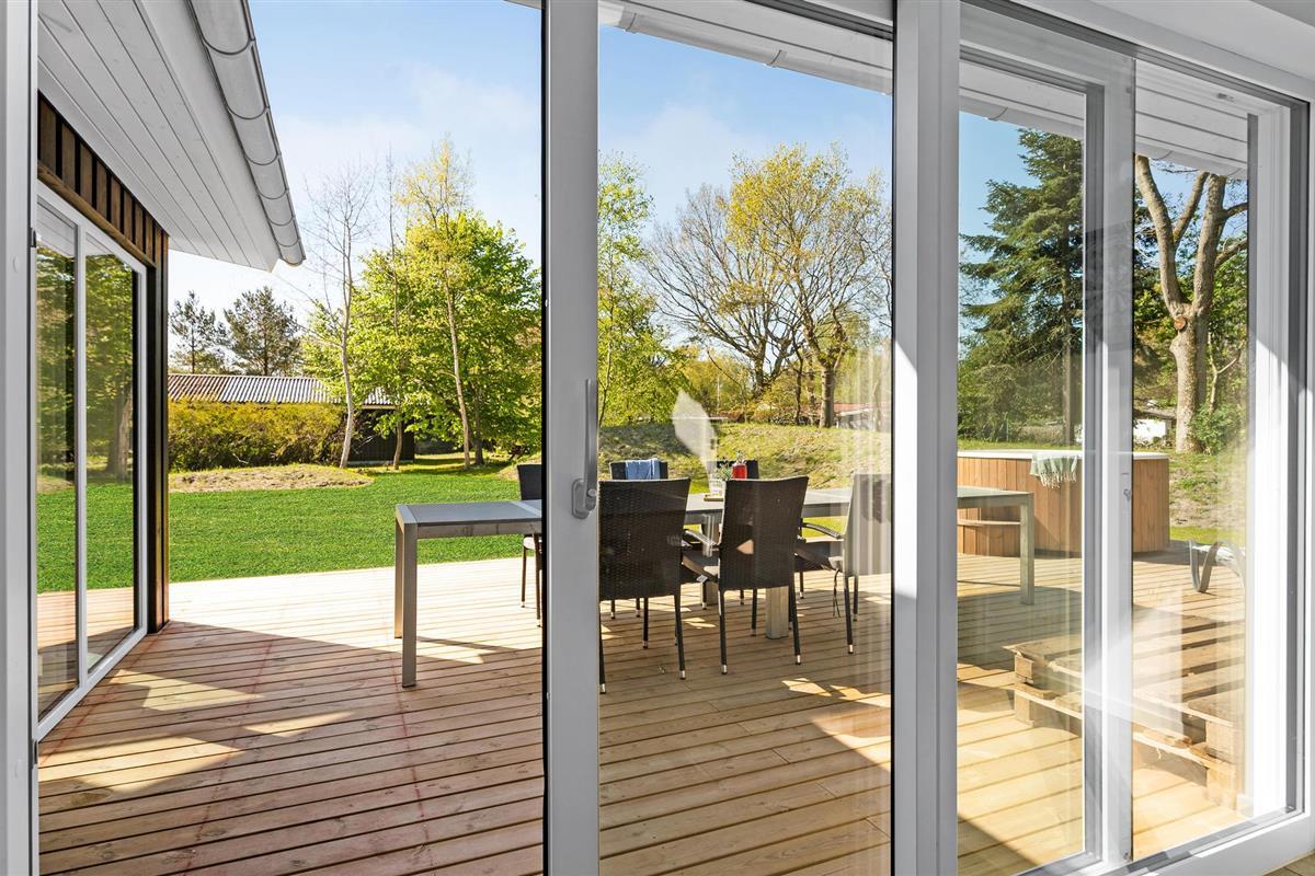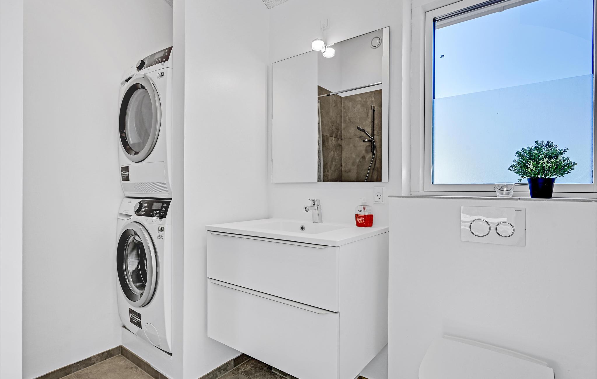De open keuken in combinatie met de woonkamer maakt vloeiende gesprekken in de hele ruimte mogelijk, wat het geheel nog meer karakter geeft. De speelse schuine plafonds voegen een ander ongewoon tintje toe aan dit moderne vakantiehuis, waardoor de ruimte opener en groter lijkt. Als u door het huis loopt, zult u merken hoe licht het is door de glazen puien, waardoor u misschien denkt dat u helemaal geen kunstlicht nodig hebt, mocht het geen herfst of winter zijn in Denemarken. Bovendien is dit huis perfect in alle temperaturen en weersomstandigheden! U hoeft niet eens na te denken over hoe koud of warm het moet zijn, het binnen- en buitenzwembad zal u en uw metgezel helpen de juiste ontspanning te vinden op uw veranda of in de exclusieve badkamer, net als de aanwezige vloerverwarming.