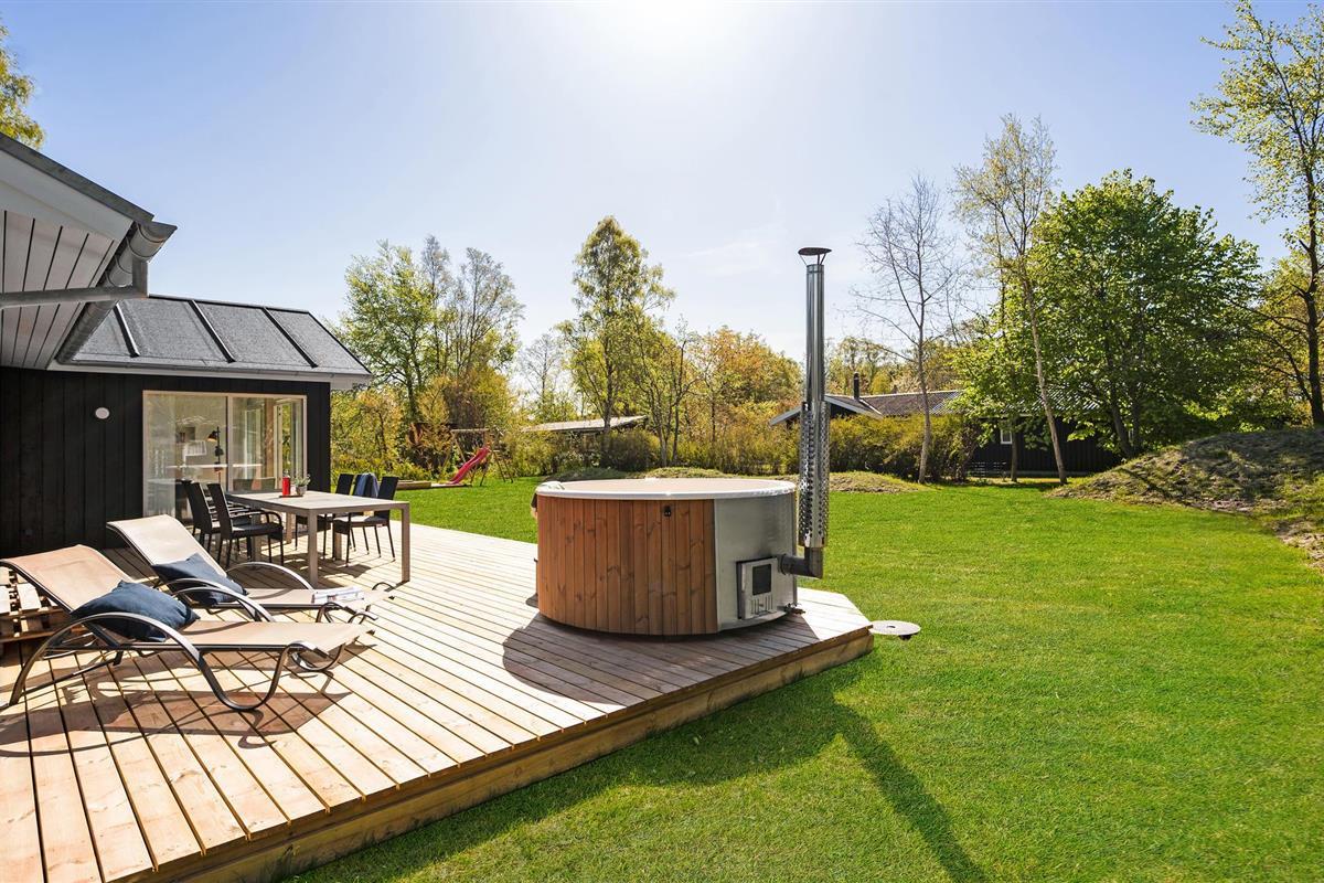 Modern vakantiehuis op Djursland met binnen- en buitenzwembad, vlakbij strand en attracties, ideaal voor families en groepen.