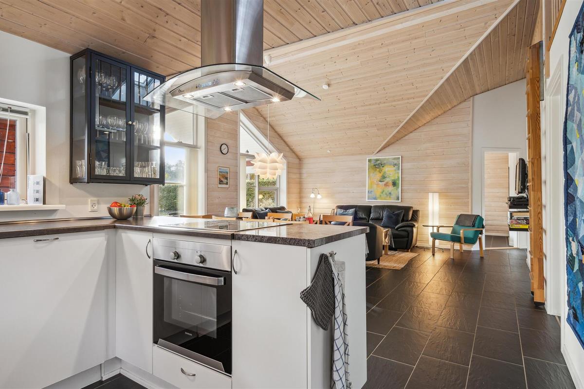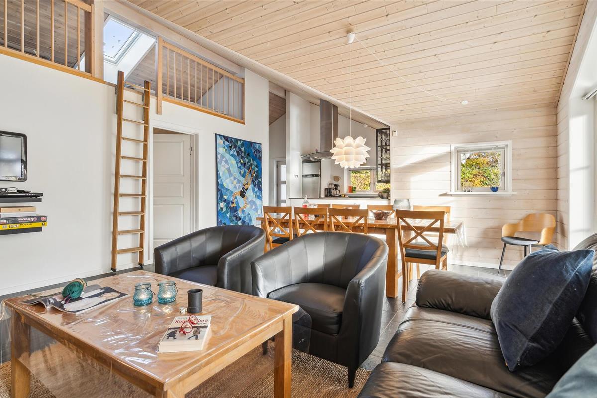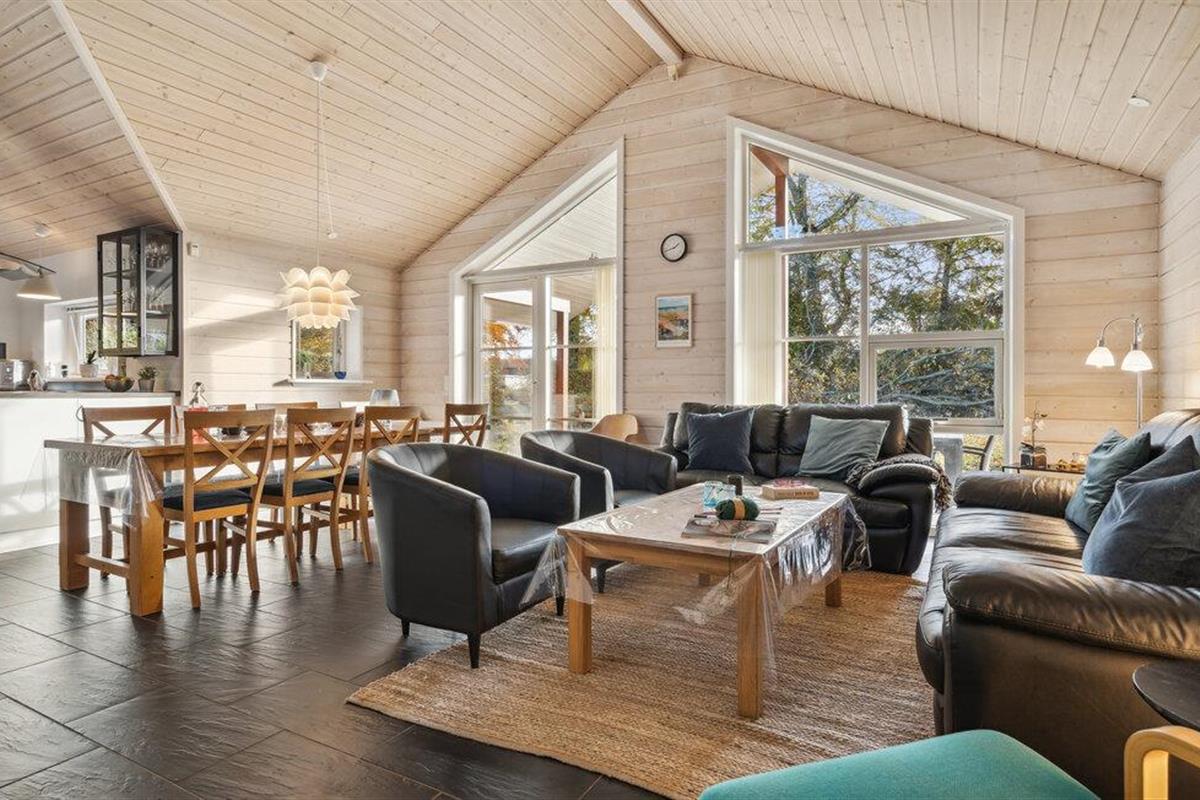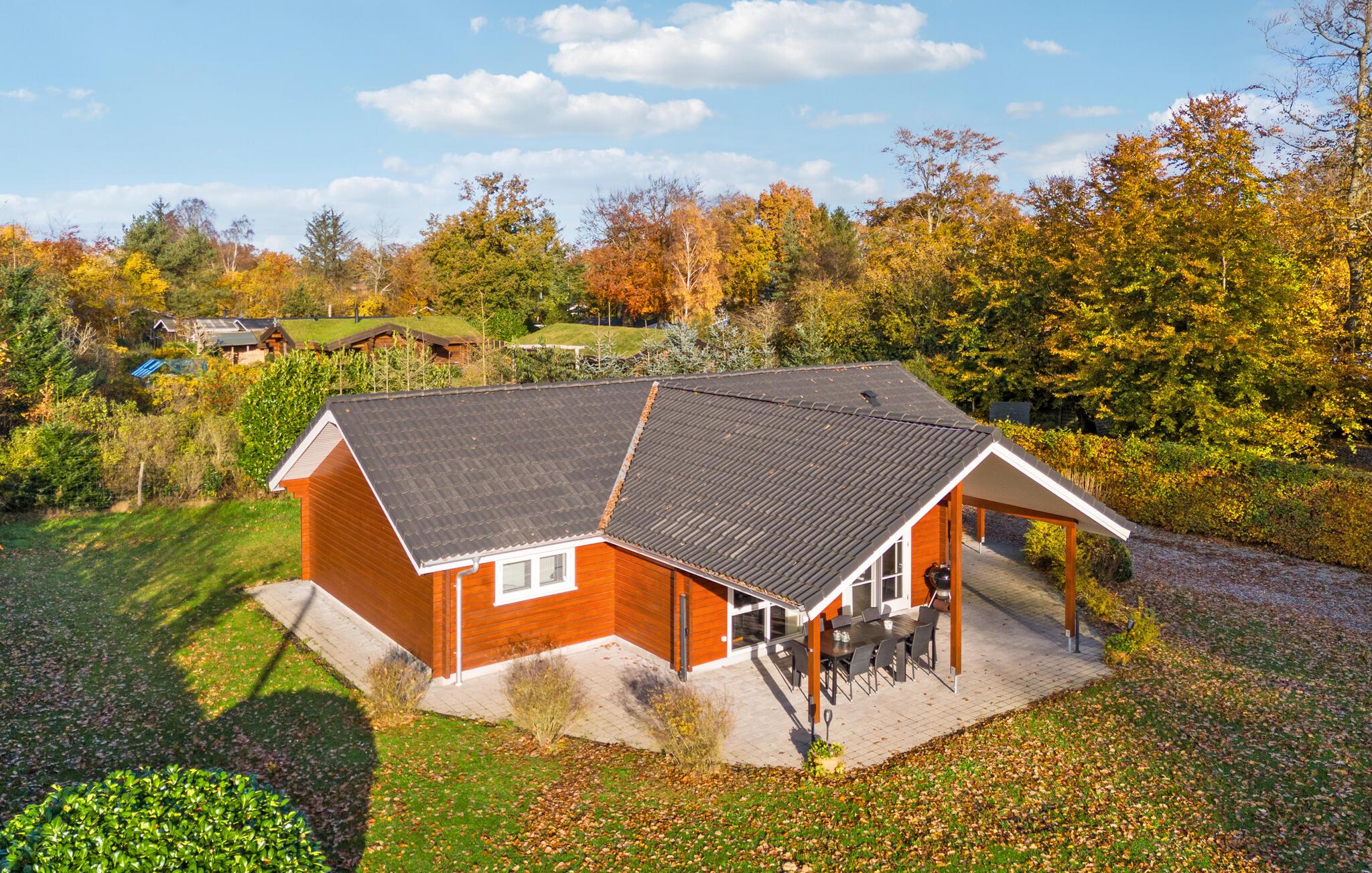 Mooie houten vakantiewoning met tuin en overdekt terras nabij Fjellerup Strand.