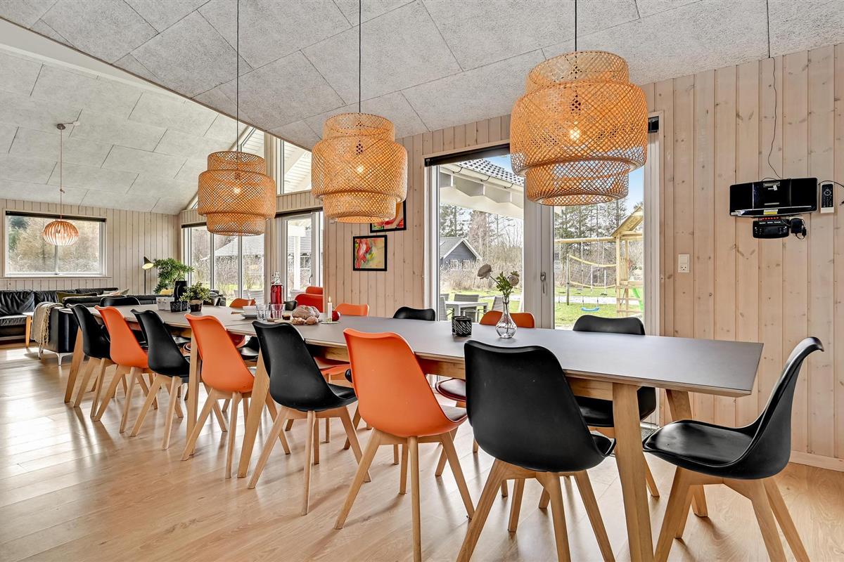 Dit uiterst comfortabele vakantiehuis wacht op u op een prachtige locatie niet ver van de zee. De gezellige inrichting met moderne meubels, veel hout en aansprekende kleuraccenten zorgen voor een comfortabele feel-good sfeer in de kamers. Geniet samen van uw maaltijden met uitzicht op de tuin en breng daarna uw bloedsomloop weer op gang met een potje tafelvoetbal. Ontspan in de whirlpool met uitzicht op de boomtoppen. Het zwembad met glijbaan zal zowel jong als oud in vervoering brengen. Een sauna is de beste manier om te ontspannen na een lange dag in de natuur of in het zwembad. Maak het uzelf gemakkelijk en praat tot laat in de avond bij terwijl de vlammen knetteren in de open haard.