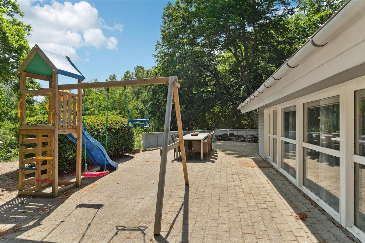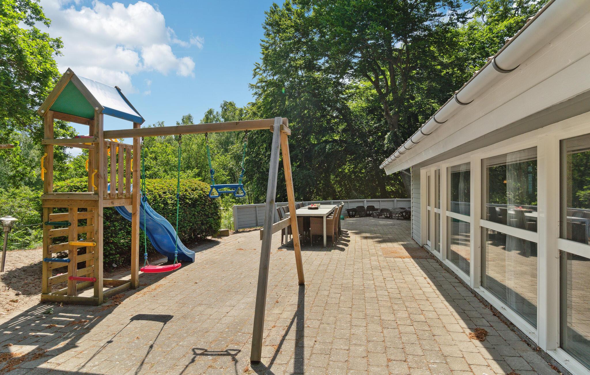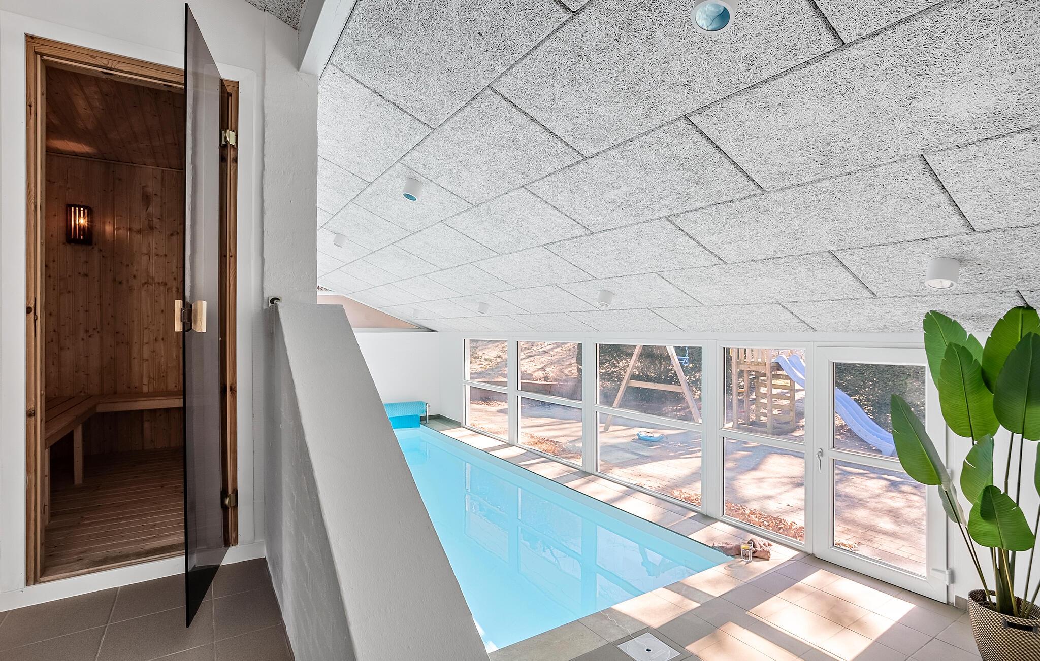 Gezellig familiehuis in Fjellerup met binnenzwembad, sauna en speeltuin voor een ontspannen vakantie aan zee.