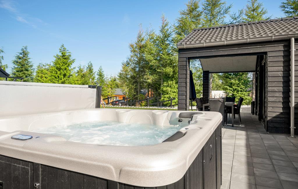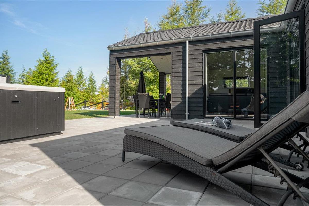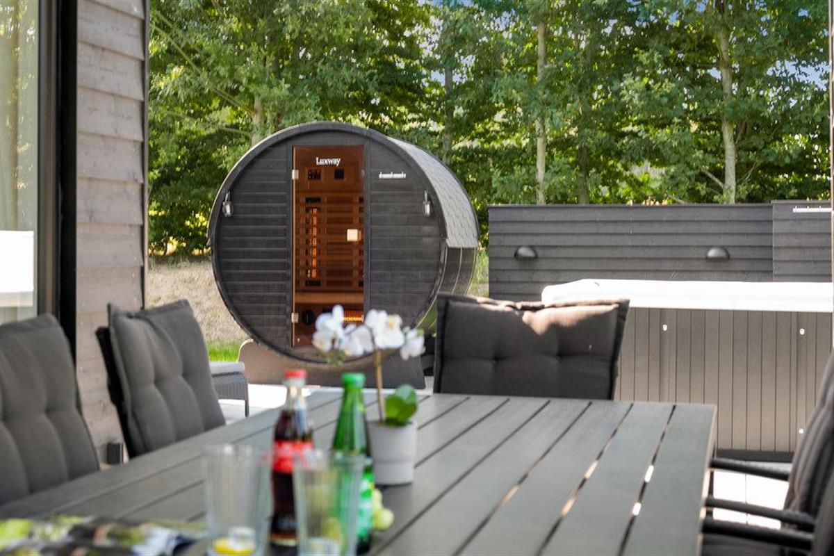 Vanuit de woonkamer heb je toegang tot het terras, waar je 's ochtends kunt genieten van je koffie op het overdekte gedeelte terwijl de kinderen spelen op het water en in de privé-speeltuin. Ontspanning wordt geboden door een whirlpool en een barrelsauna. Met een druk op de knop vult de whirlpool zich en is dan klaar voor de hele duur van je verblijf.