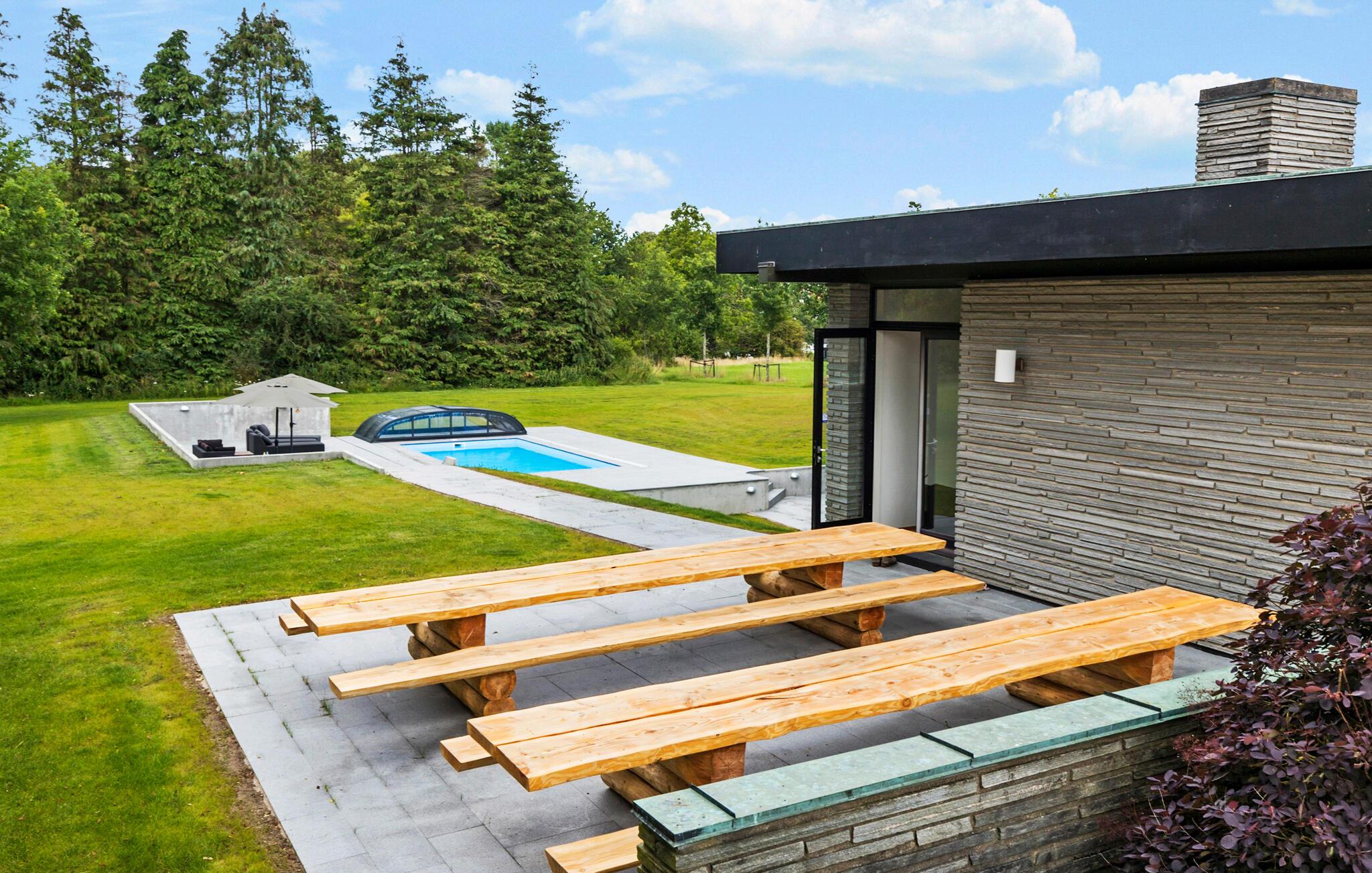 Ruim vakantiehuis in Fjellerup met zwembad, grote tuin en activiteitenruimte voor groepen en families.