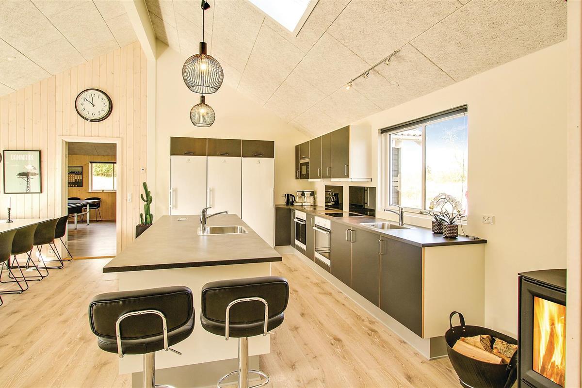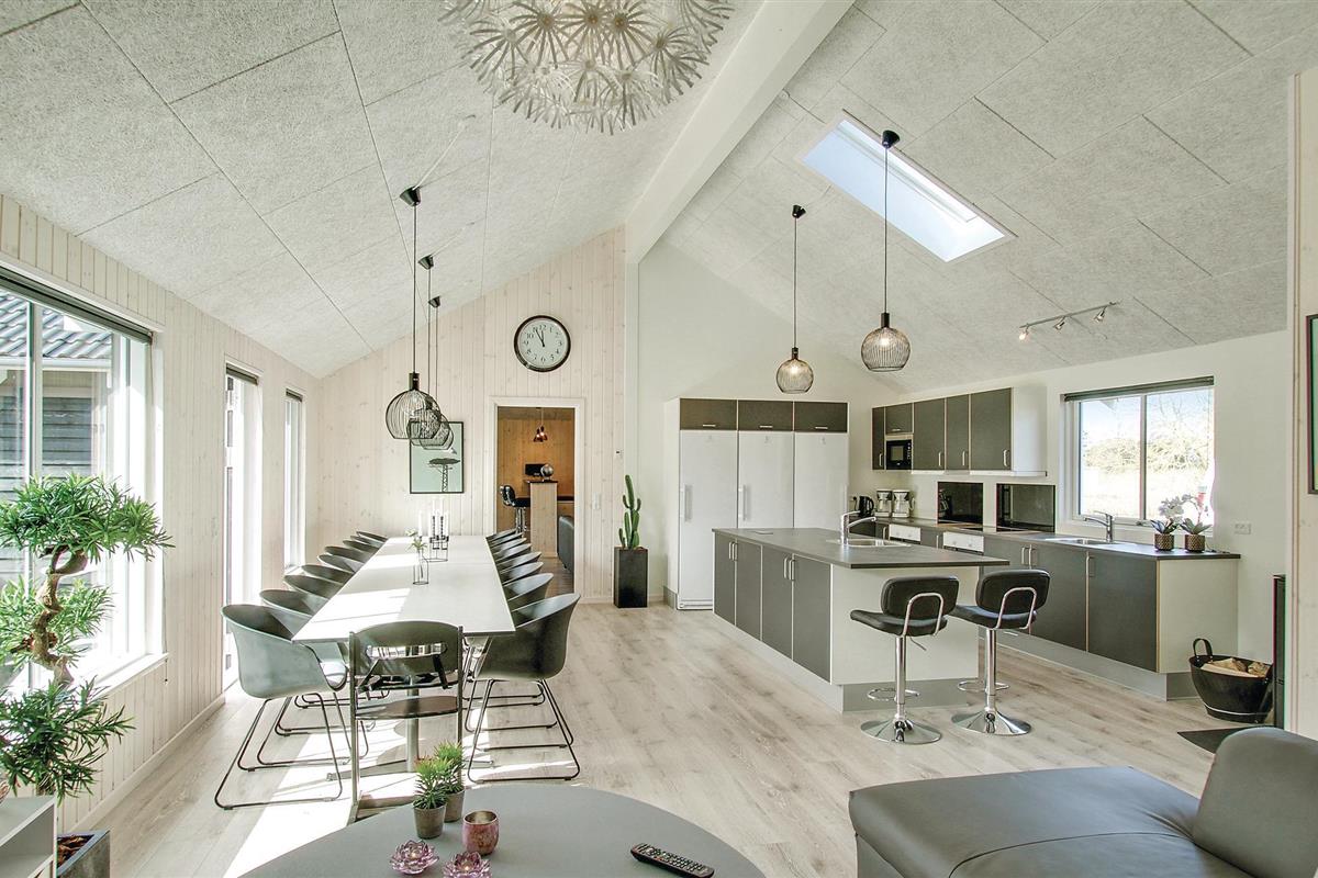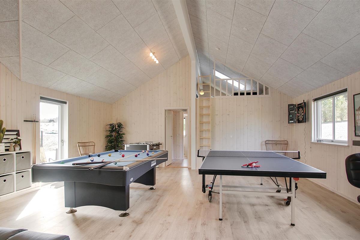 Aan de noordkust van Djursland, in Fjellerup, in een heerlijk ongestoord, afgesloten vakantiegebied, wacht dit grote vakantiehuis met zwembad en whirlpool op u. Hier kunt u een onvergetelijke vakantie doorbrengen waar niemand zich hoeft te vervelen. Geniet van het leven in de grote woonkamer, die praktisch open is en verbonden met de keuken. Er zijn aangename slaapkamers en moderne badkamers. Ontspan op de terrassen, waar u kunt kiezen tussen zon, schaduw en windbescherming, of ga naar het strand, waar voldoende ruimte is om de hele dag in de zon te liggen. De trawlers komen hier dagelijks langs met hun verse vangst. In de omgeving zijn veel bossen, kastelen en kleine kraampjes langs de weg waar u vers geoogst fruit en groenten kunt kopen. Maak ook een uitstapje naar Djurs Sommerland met veel activiteiten voor het hele gezin. In het gezellige handelsstadje Grenå kunt u een wandeling maken over het plein voor de kerk of langs de haven, en de haaien bekijken in het Kattegat Centrum.
