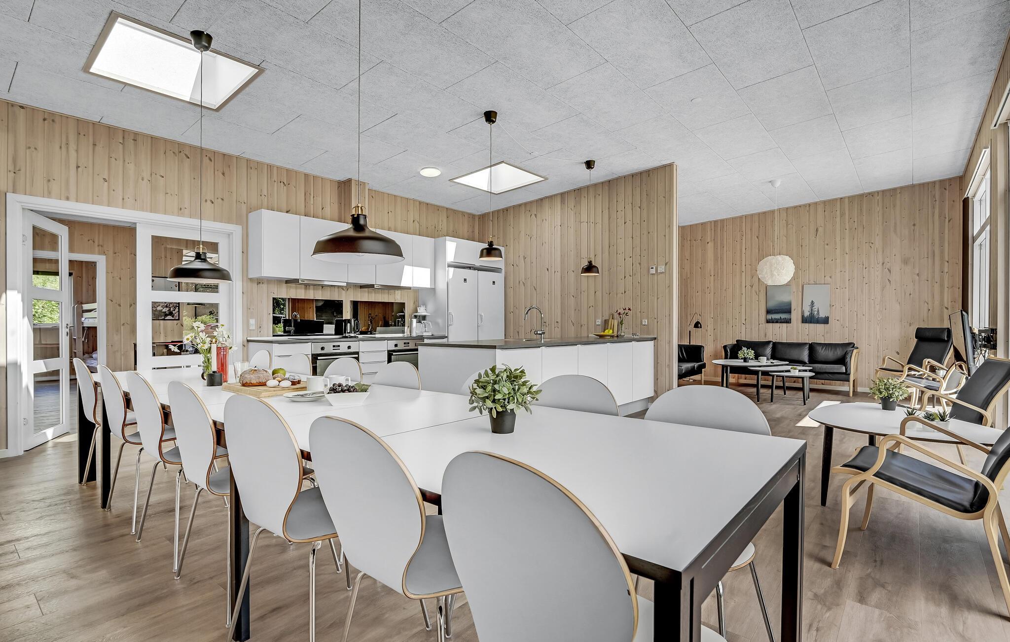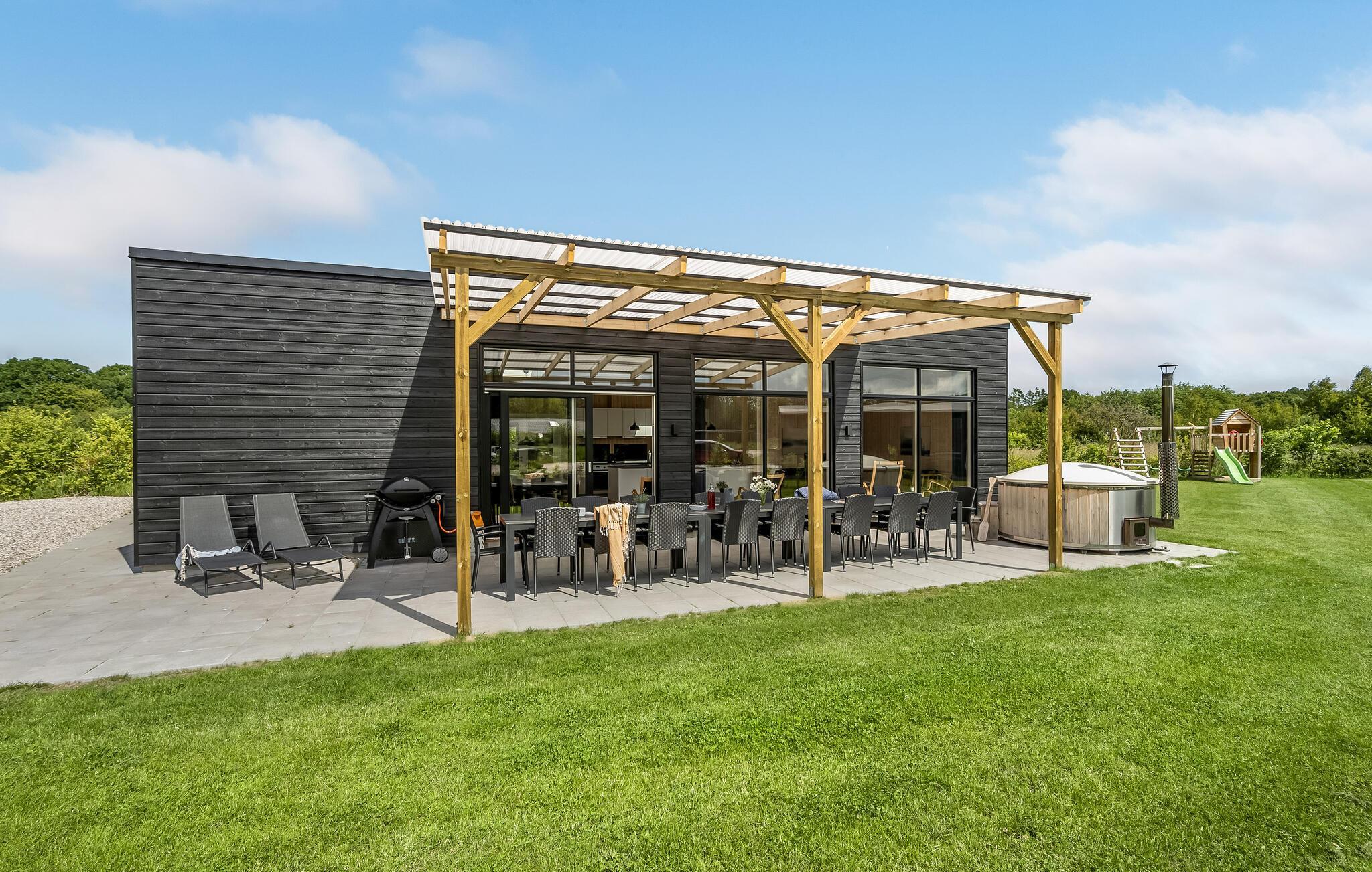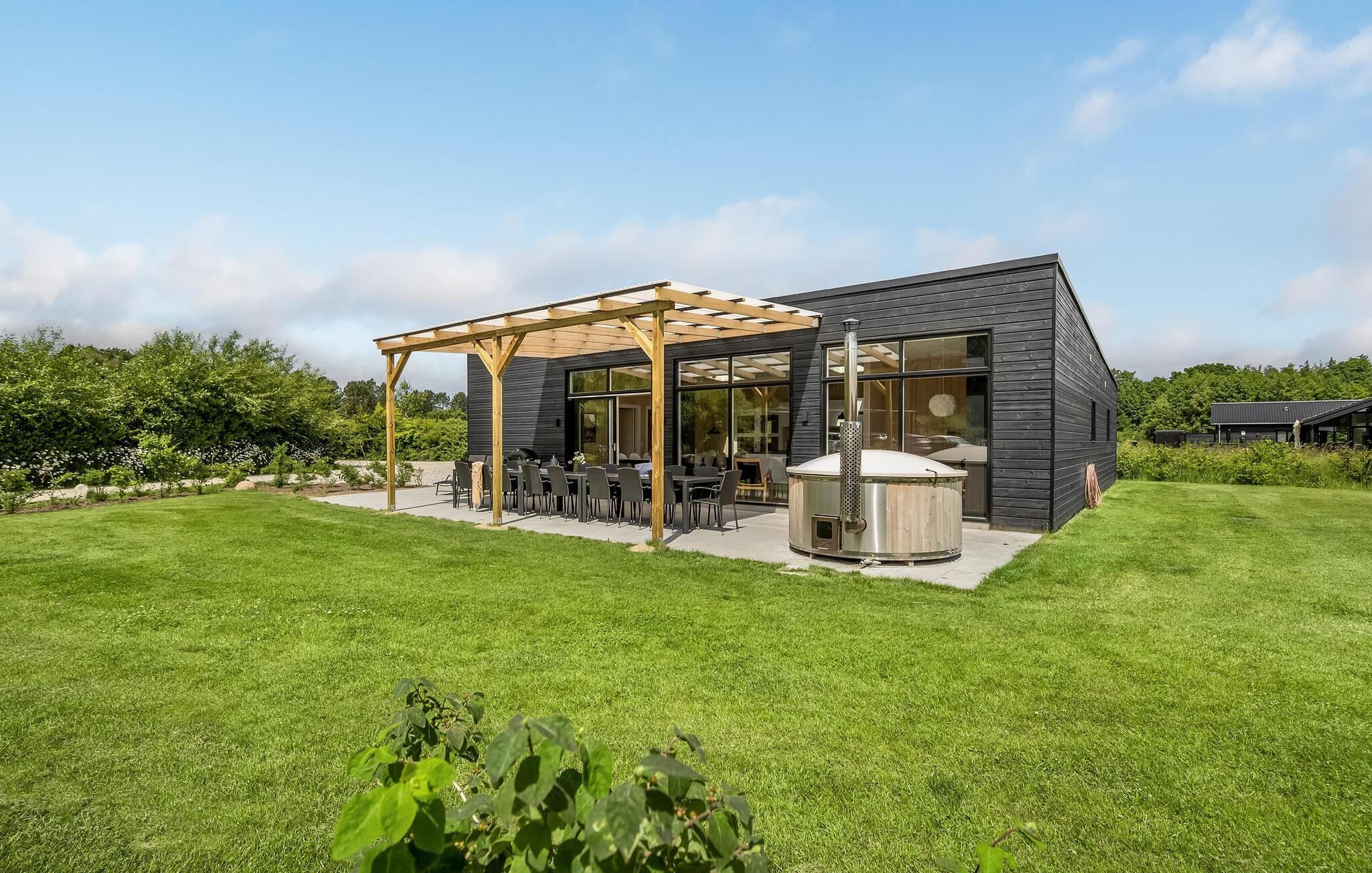 Ruim en luxe vakantiehuis in Fjellerup met sauna, whirlpools en activiteitenruimte, vlakbij het strand.