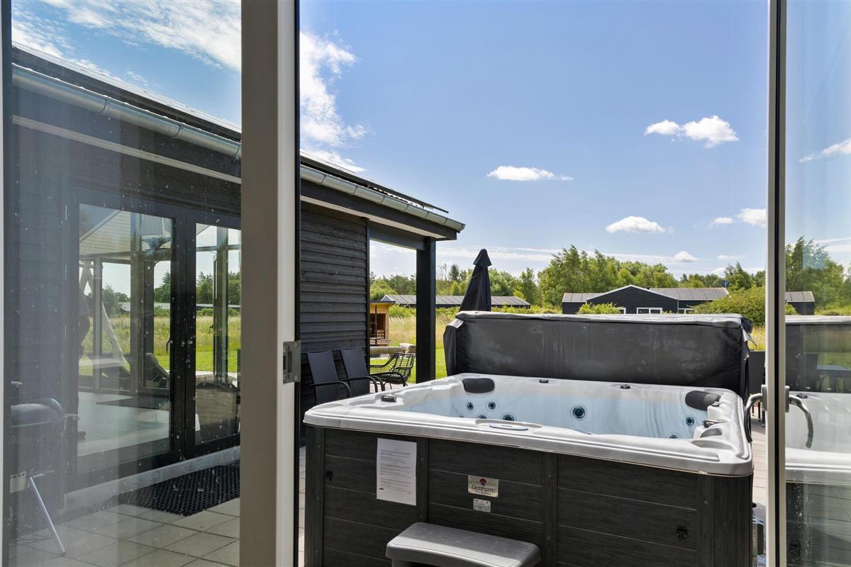 Ervaar luxe en comfort in dit ruime vakantiehuis met sauna, bubbelbad en speelvoorzieningen nabij het strand in Djursland.