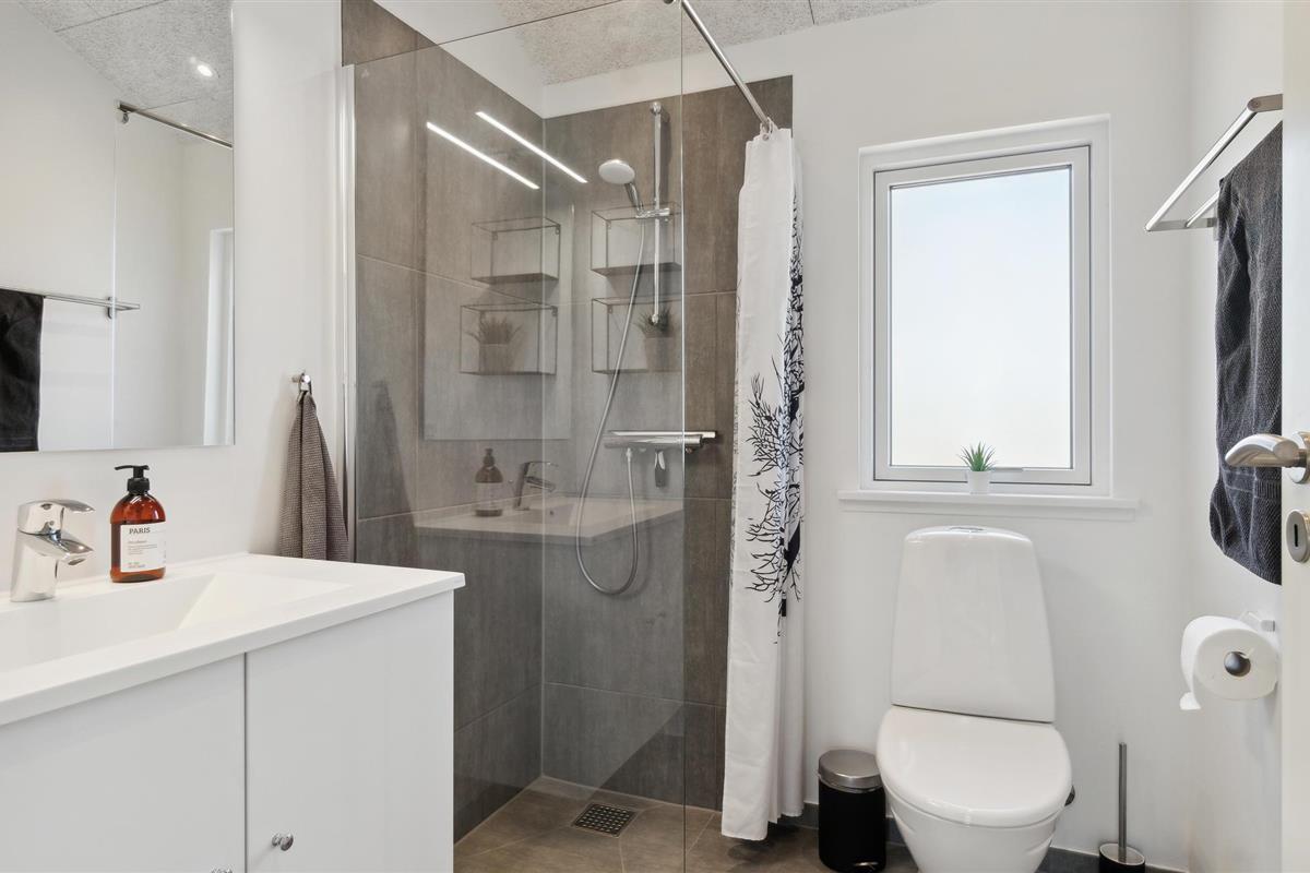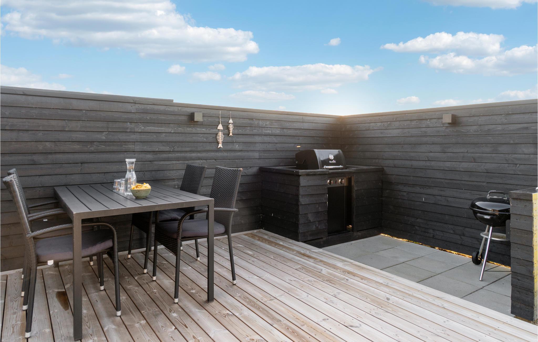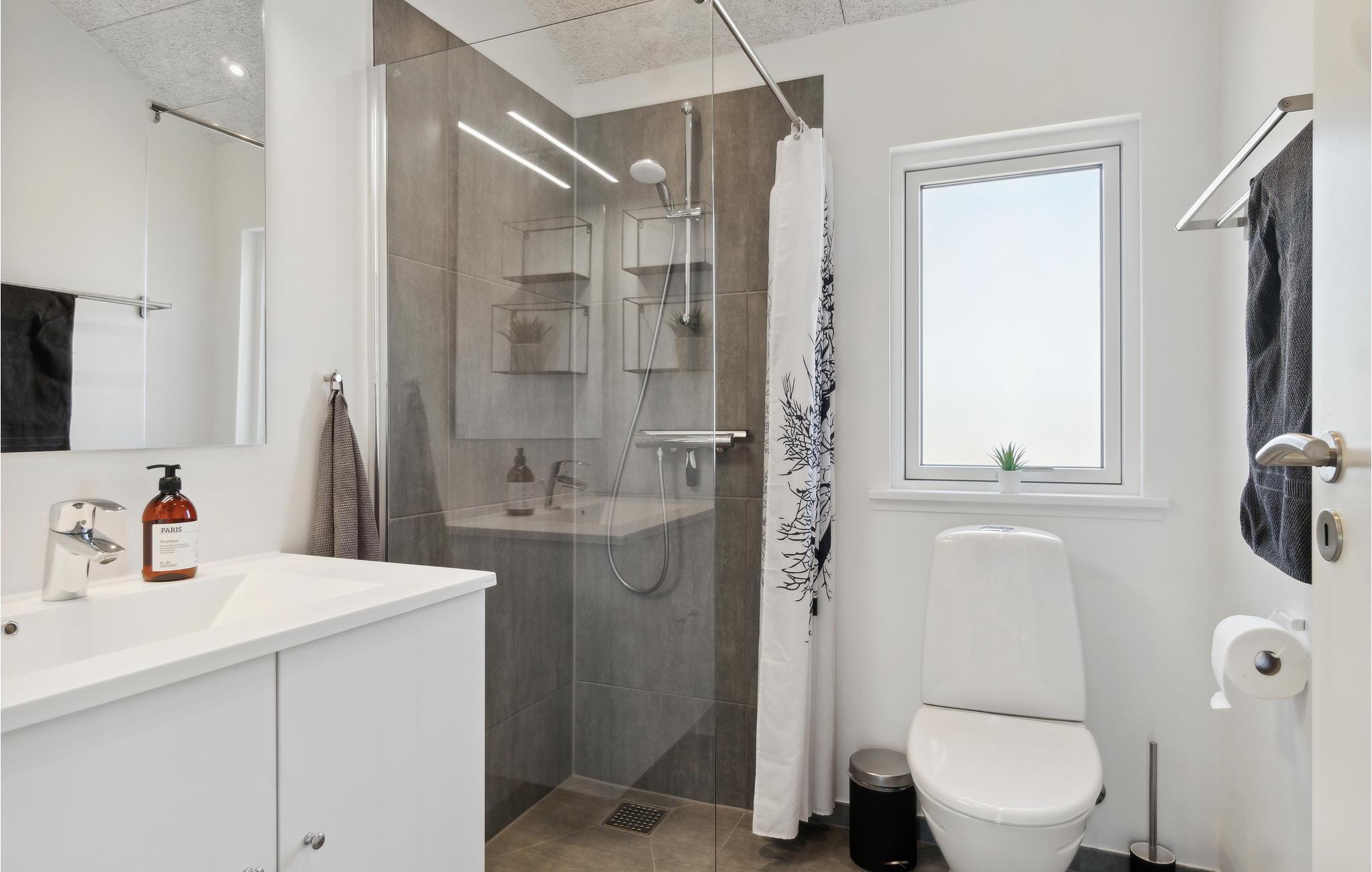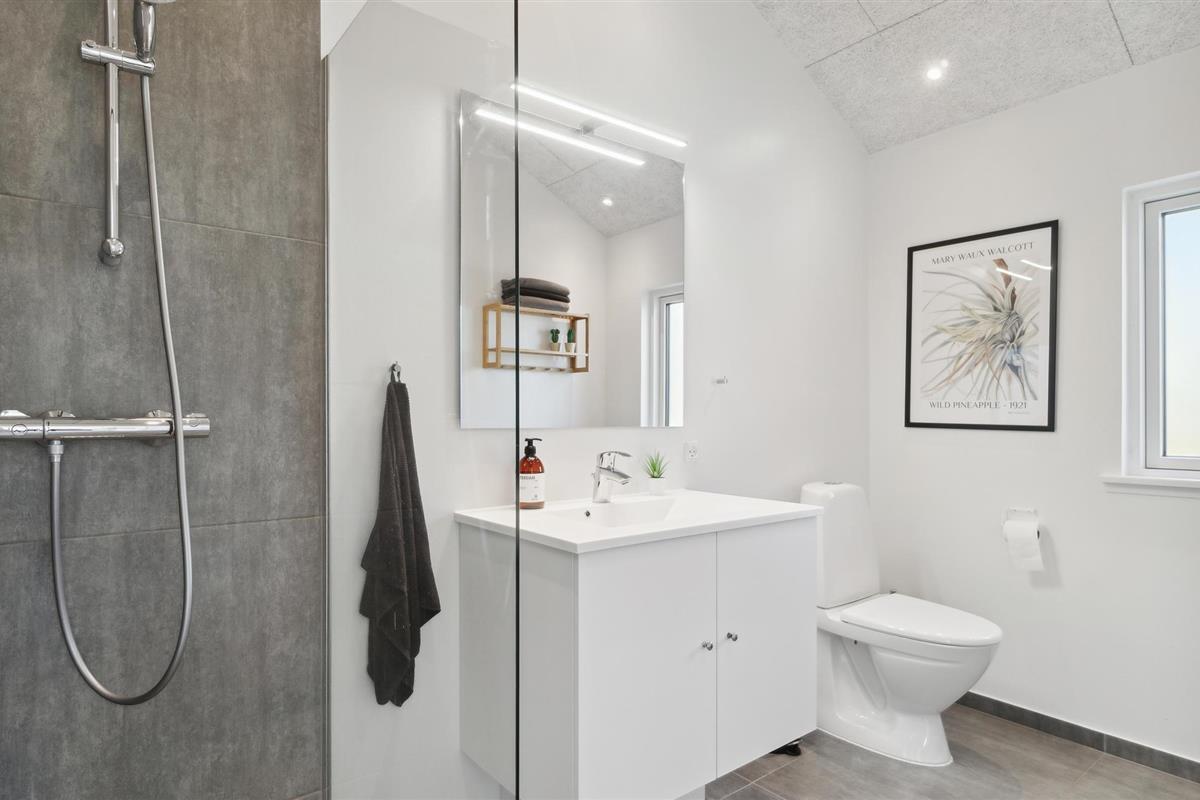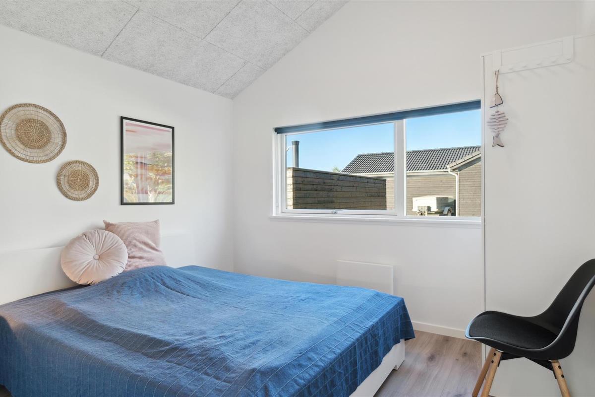 Het raam aan de voorkant overlaadt de kamer met licht, wat de natuurlijke sfeer van het hele huis versterkt. Bovendien nodigt deze natuurlijke inrichting je uit om je helemaal thuis te voelen in dit vakantiehuis aan Fjellerup Strand. Het is een open woonruimte, dus elke kamer is functioneel met elkaar verbonden. Stel je voor dat je een heerlijk ontbijt met verse koffie bereidt in deze moderne keuken en dan binnen aan tafel gaat of buiten op je veranda om de dag samen te beginnen terwijl je uitkijkt over het landschap.