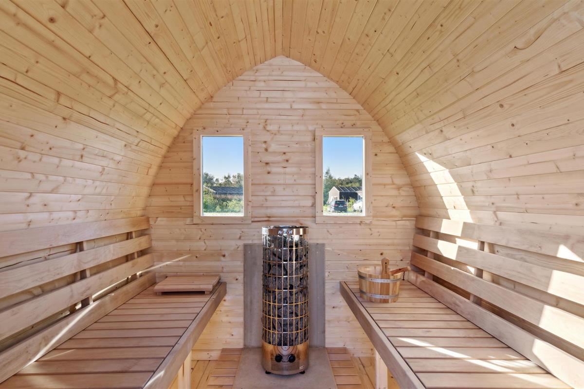 In je privétuin kun je een van de tuinmeubels pakken en gaan zitten lezen terwijl je kinderen genieten van de omringende natuur. Om nog wat meer te ontspannen, kun je genieten van de luxe van het houten Finse bad en de buitensauna op het terras.