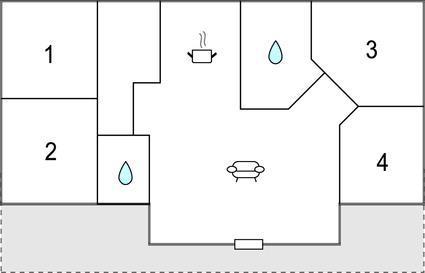 Slaapkamer (nr. 2) - 1 Slaapplaatsen. (1-persoonsbed(den)). 2 Slaapplaatsen. (Stapelbed).