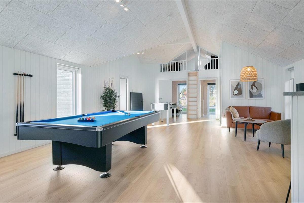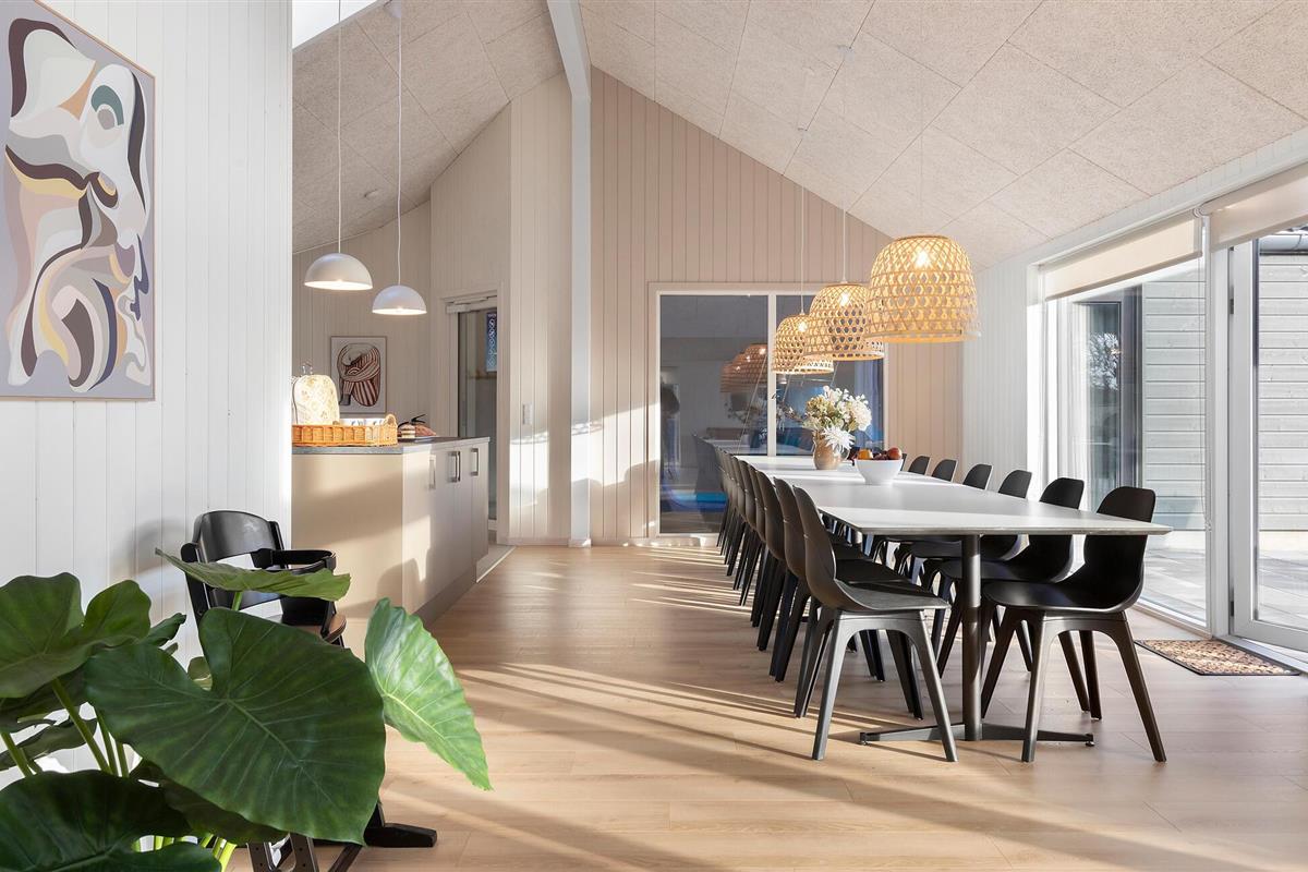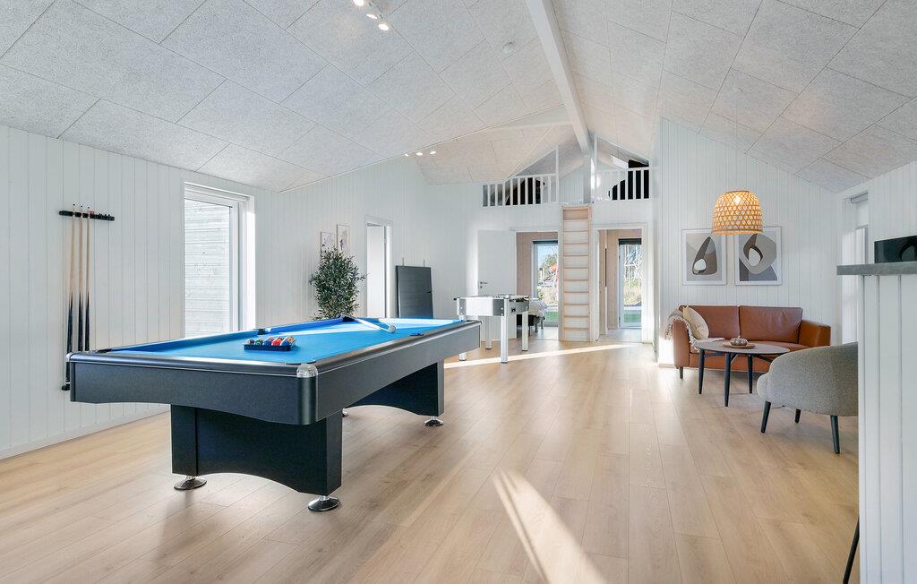 Licht en aantrekkelijk, dit uitnodigende huis verwelkomt je en biedt alles wat je nodig hebt voor een ontspannen vakantie met het hele gezin, waar grote en kleine gezinsleden aan hun trekken komen. Breng uren vol plezier door in het zwembad en ontspan in de sauna. Verheug je op gezellige avonden als je terugkomt van je avonturen, maak het jezelf gemakkelijk aan de eettafel, laat het diner naadloos overgaan in een spelletjesavond en praat nog lang na in gezellig gezelschap.