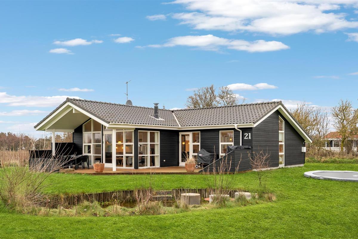Gezellig en licht vakantiehuis met sauna, bubbelbad en grote tuin dichtbij het kindvriendelijke strand in Fjellerup.